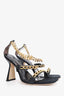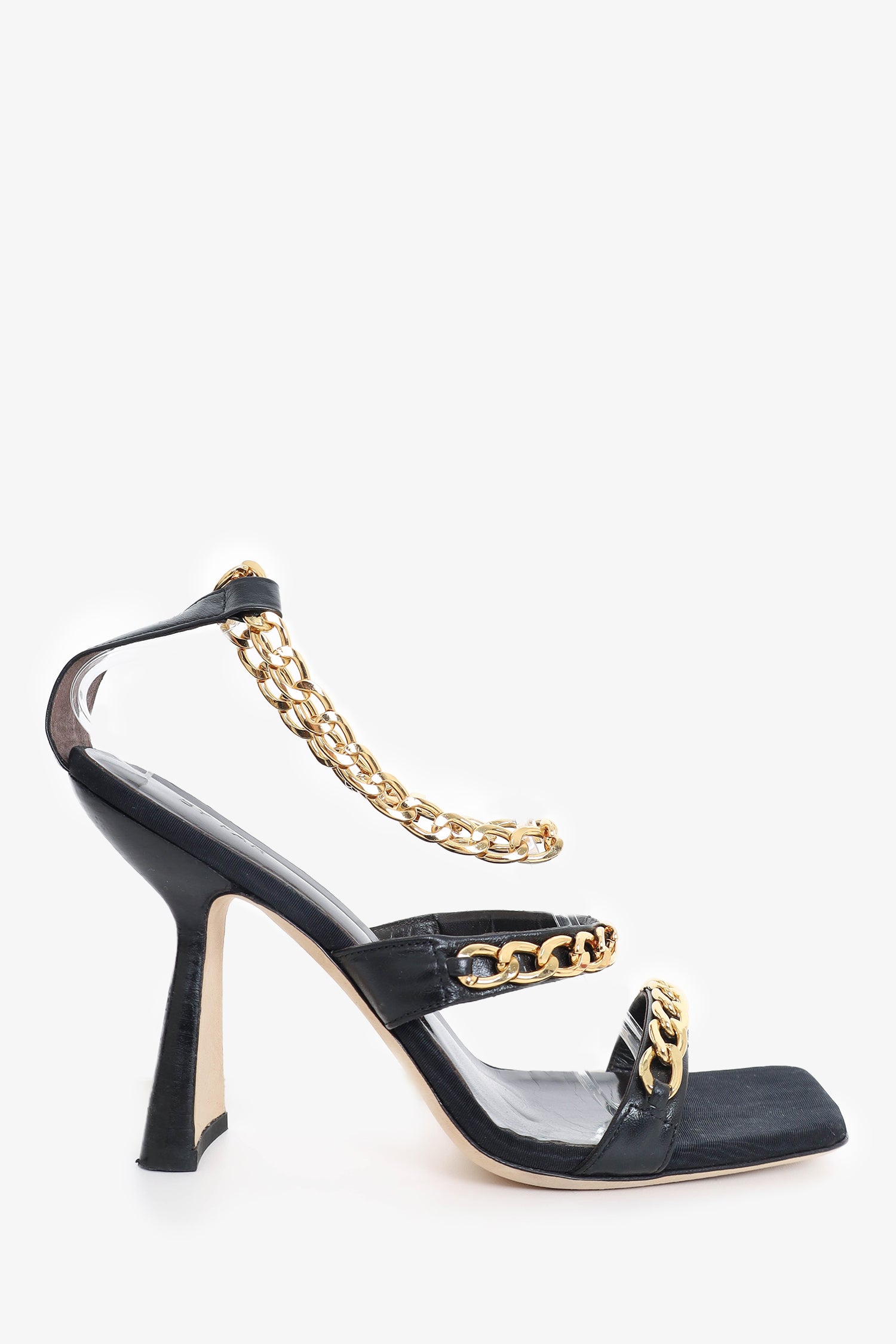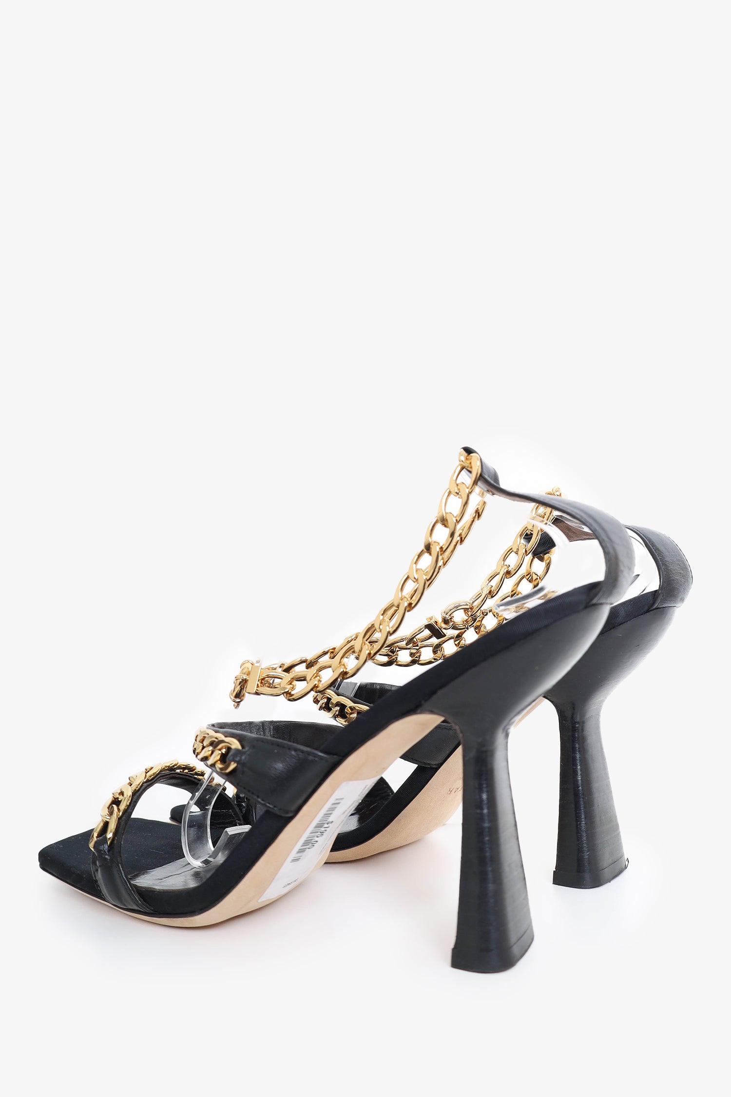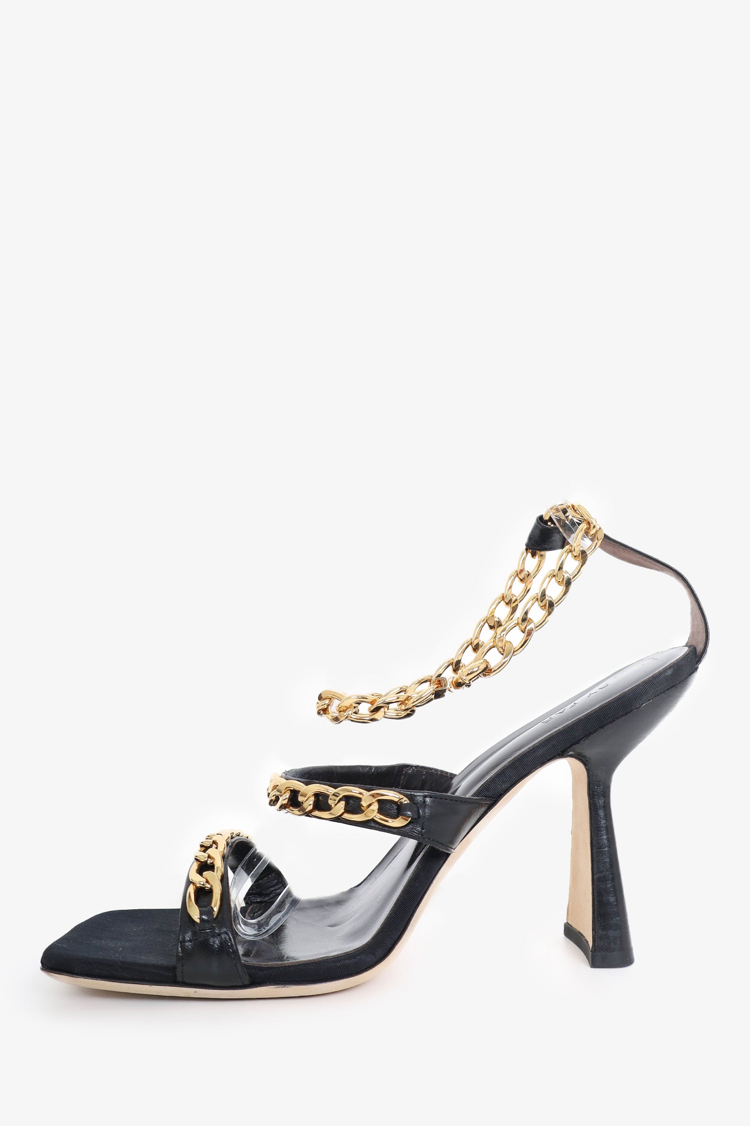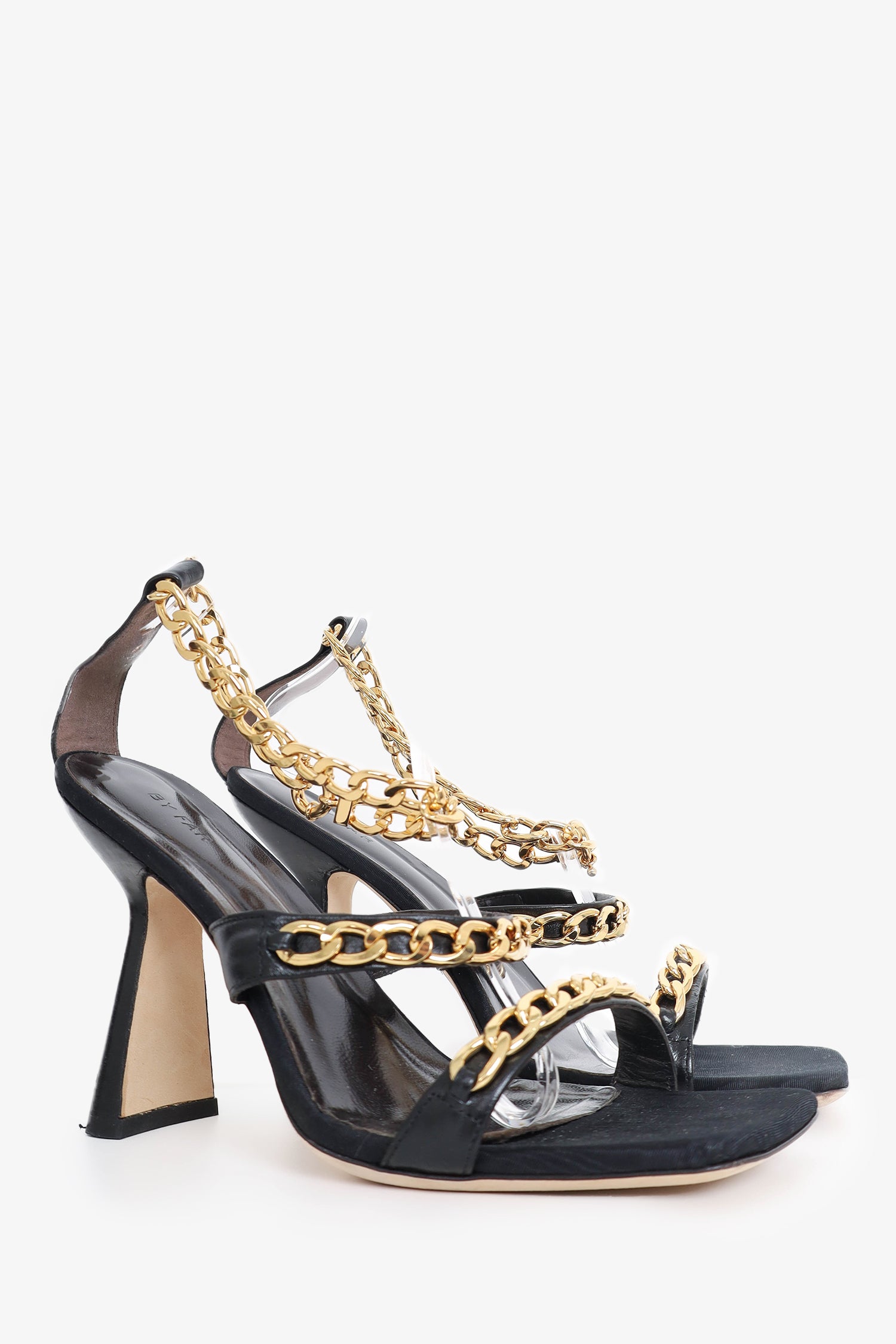 By Far Black Leather Gold Chain Detail Heels Size 40
