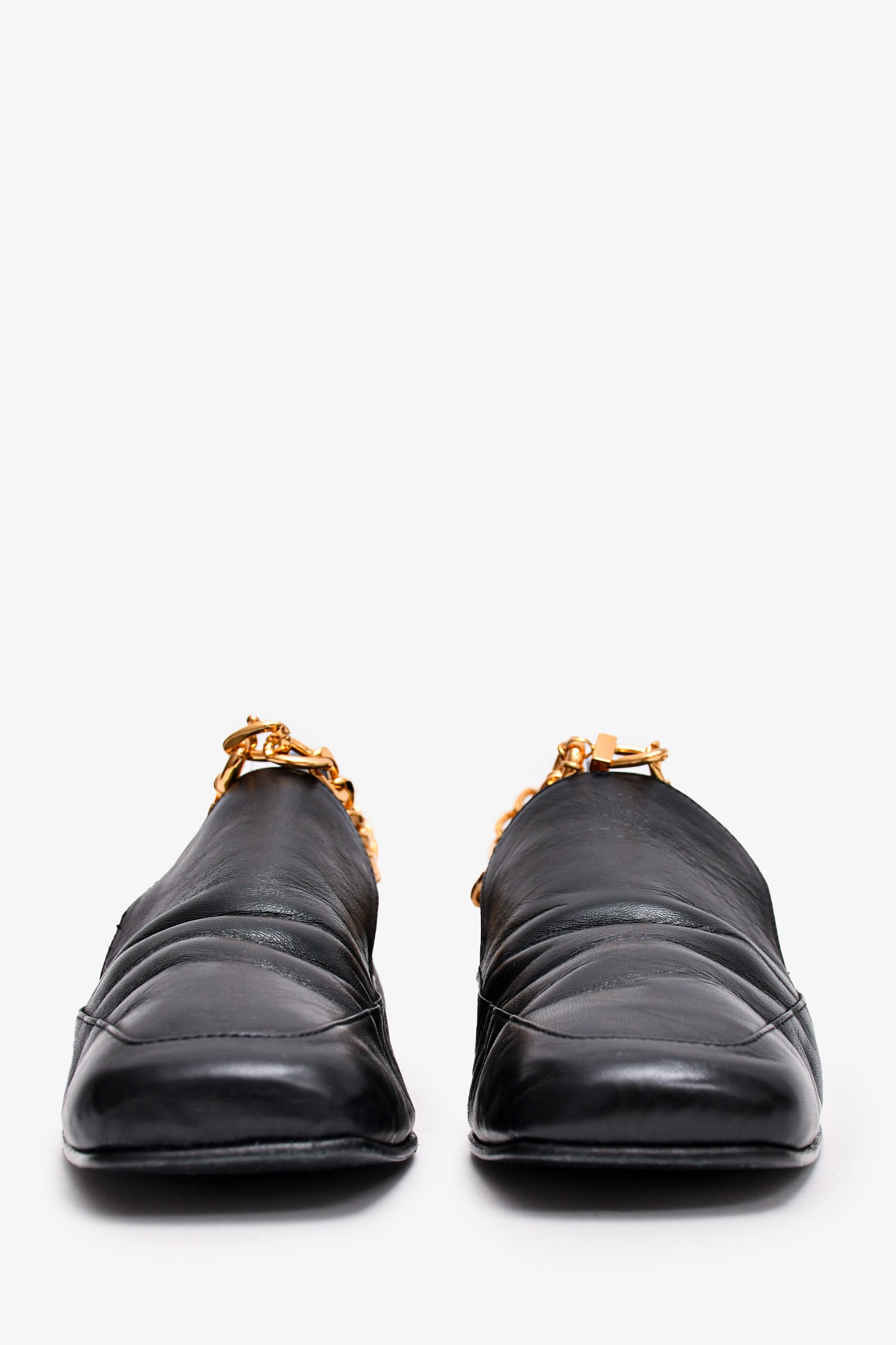 By Far Black Leather Gold Chain Loafers Size 37