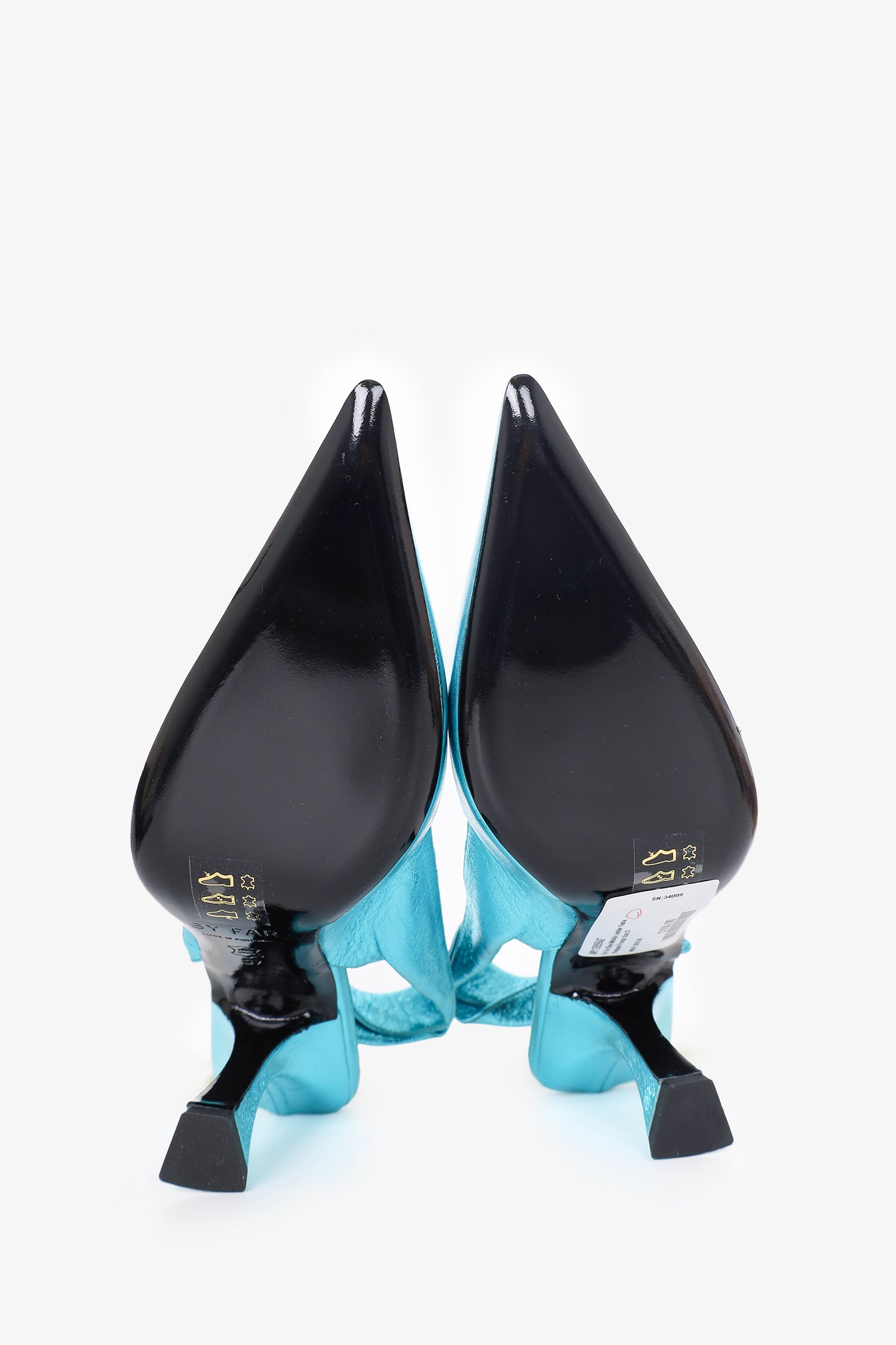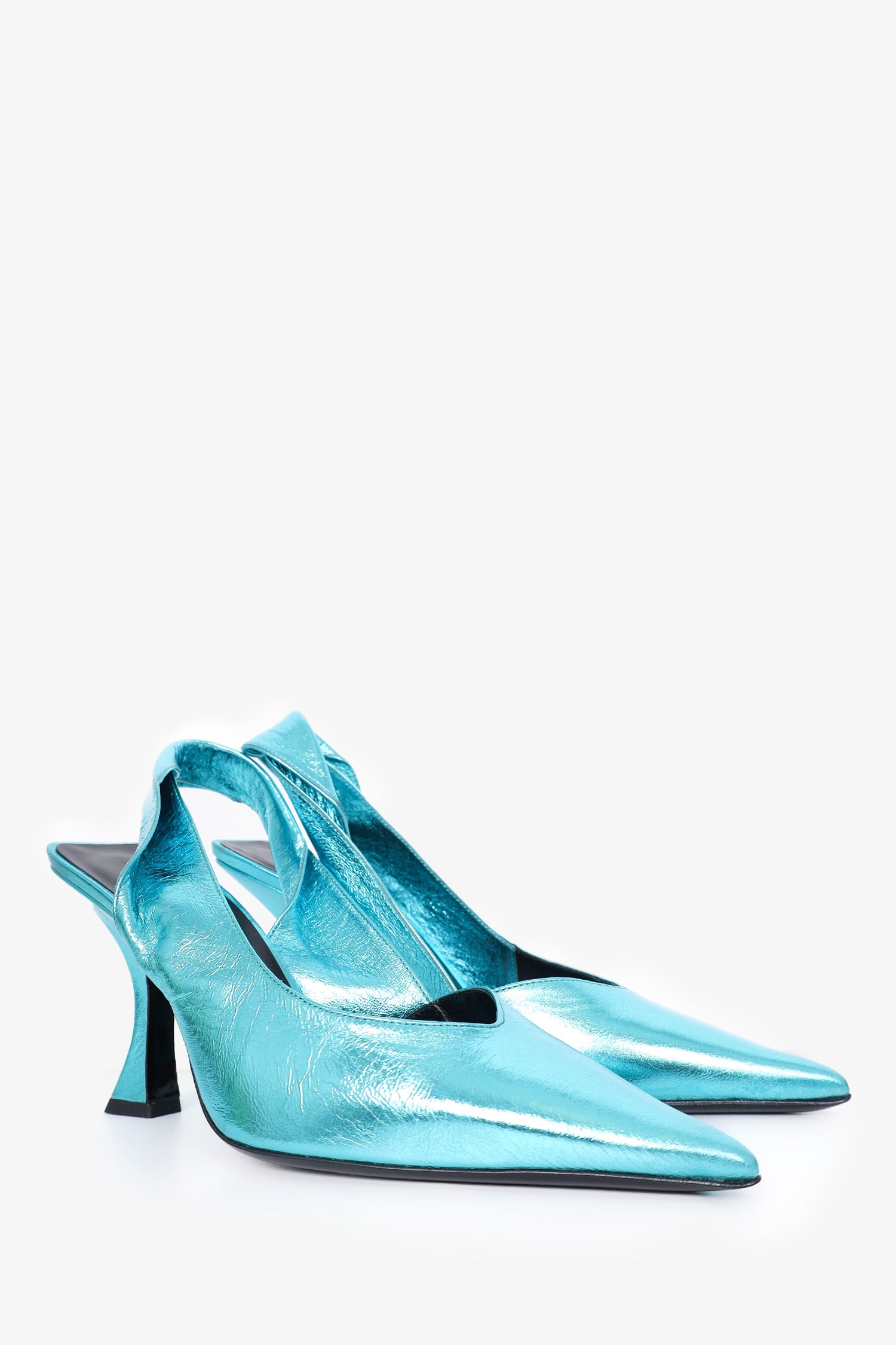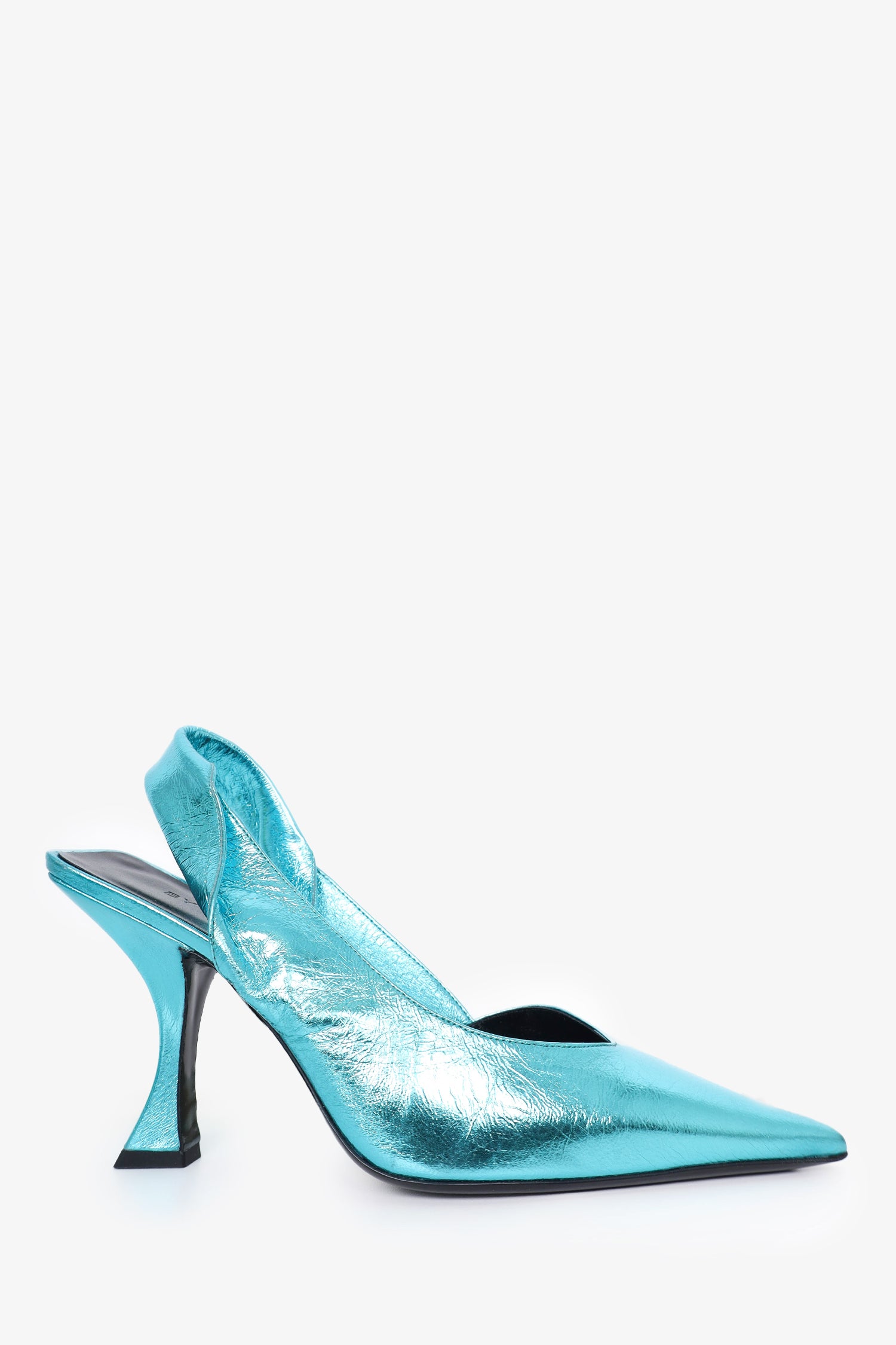 Refresh availabilityBy Far Blue Metallic Leather Yasha Slingback Pumps. Slip-on. Pointed toe. Tonal stitching.