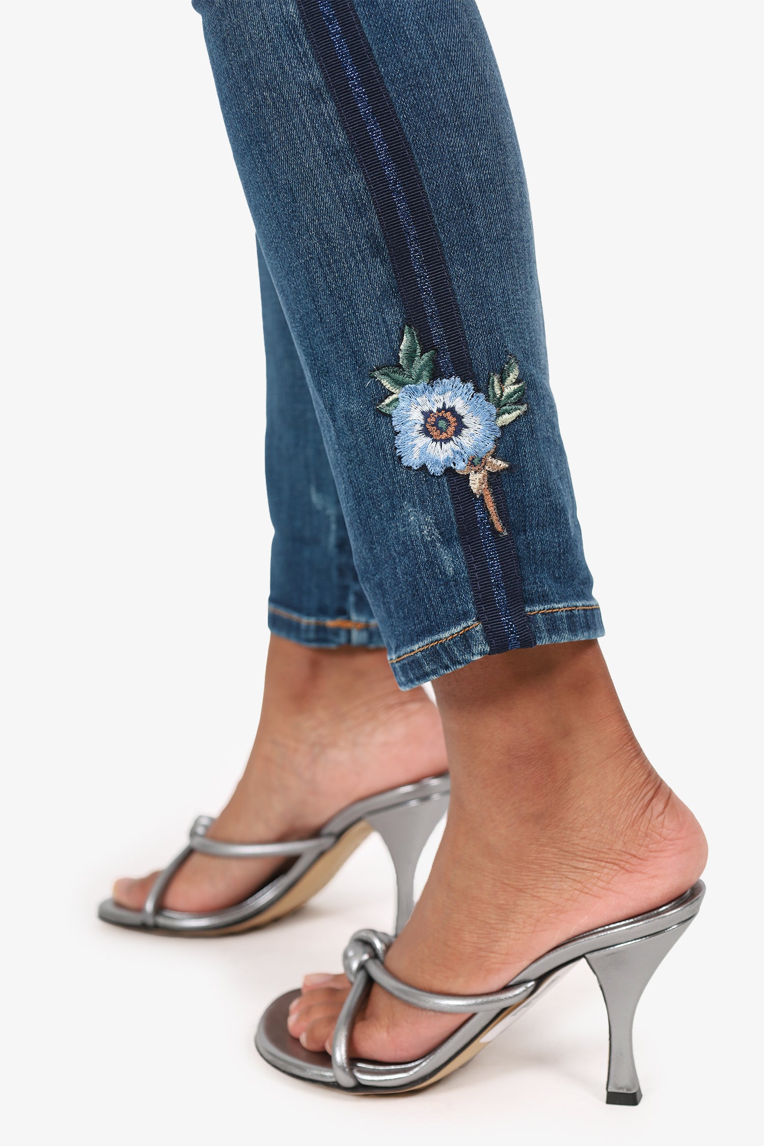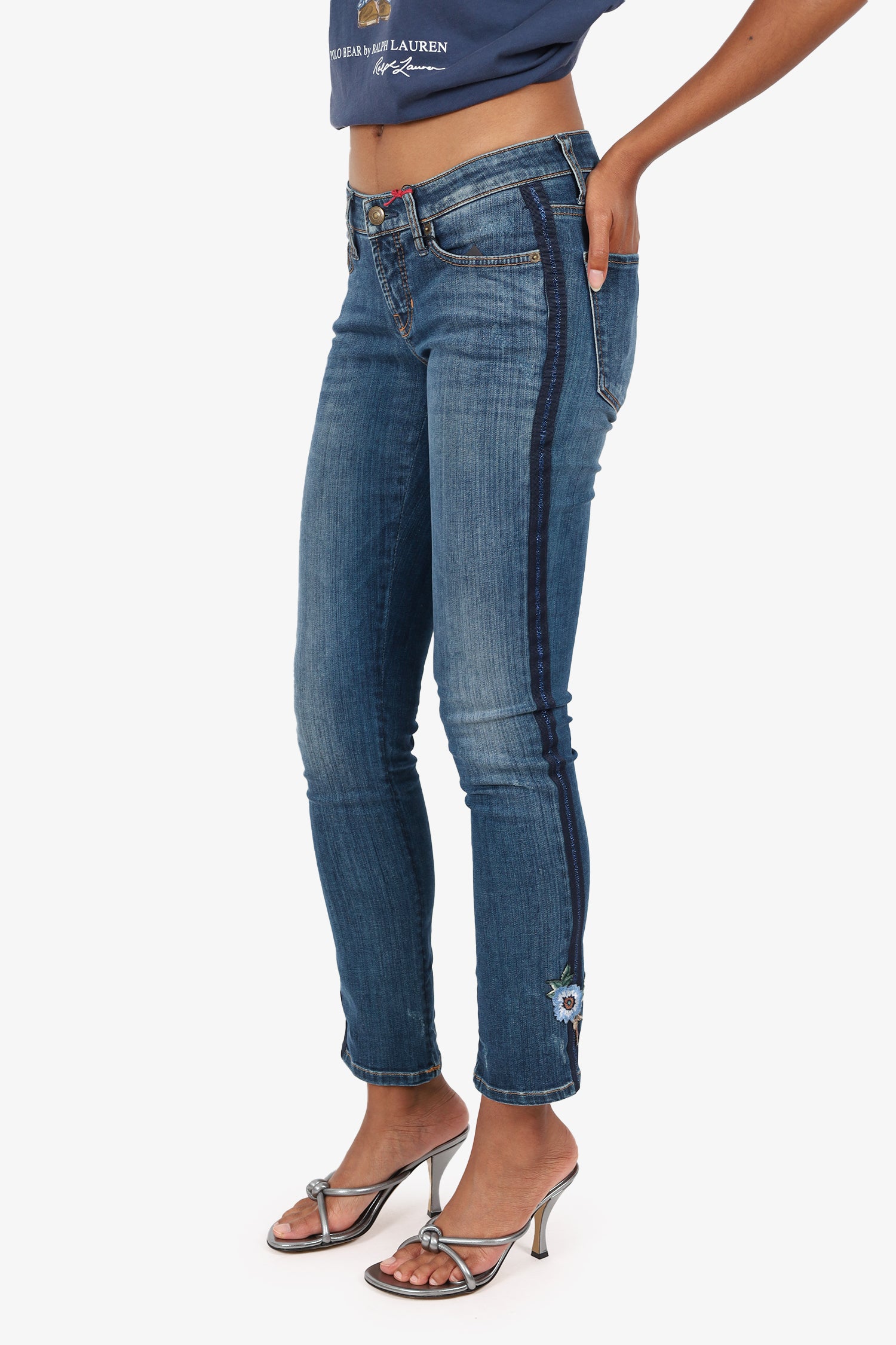 Cambio Blue Flower Embroidered Skinny Jeans Size 32