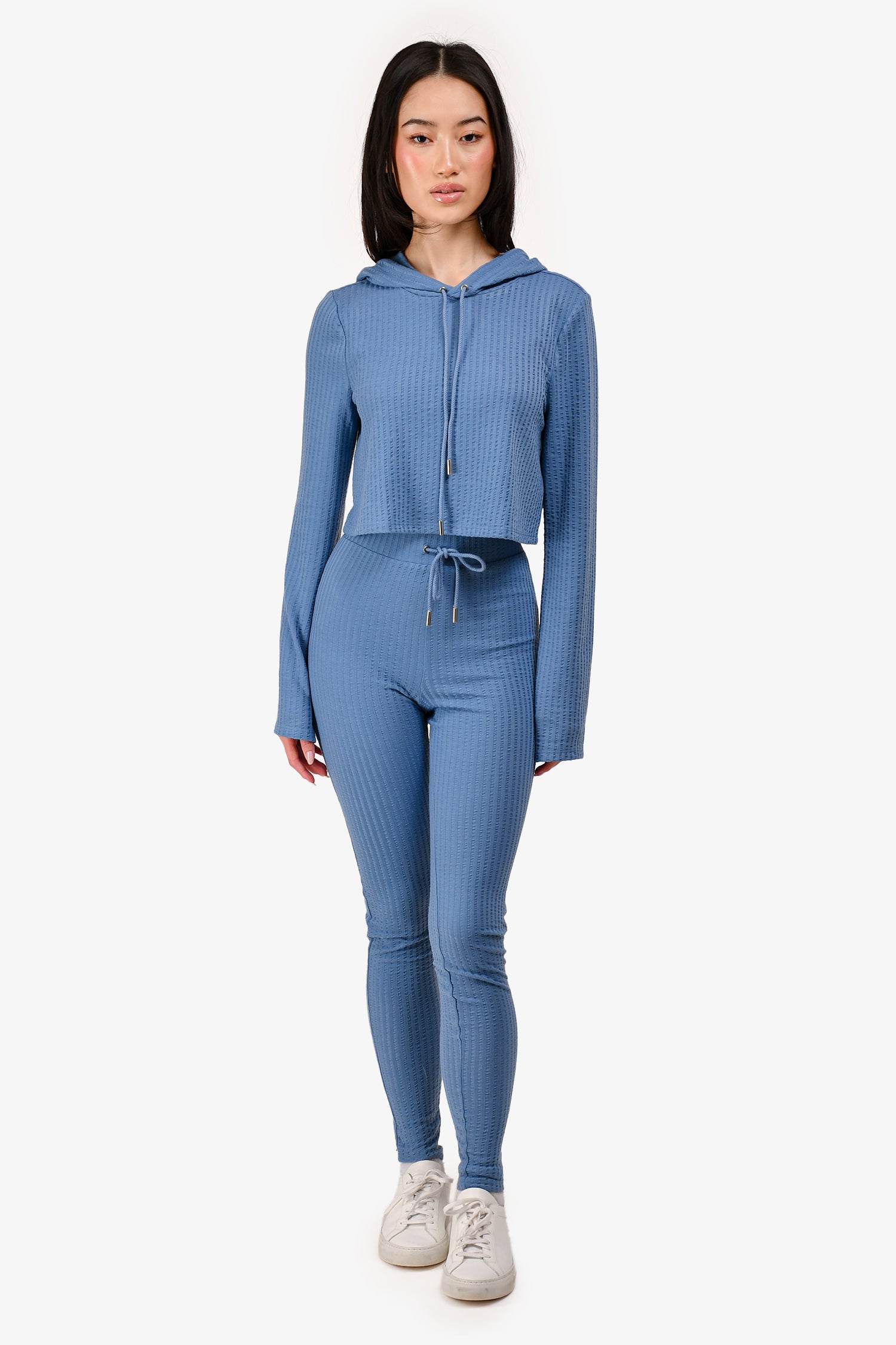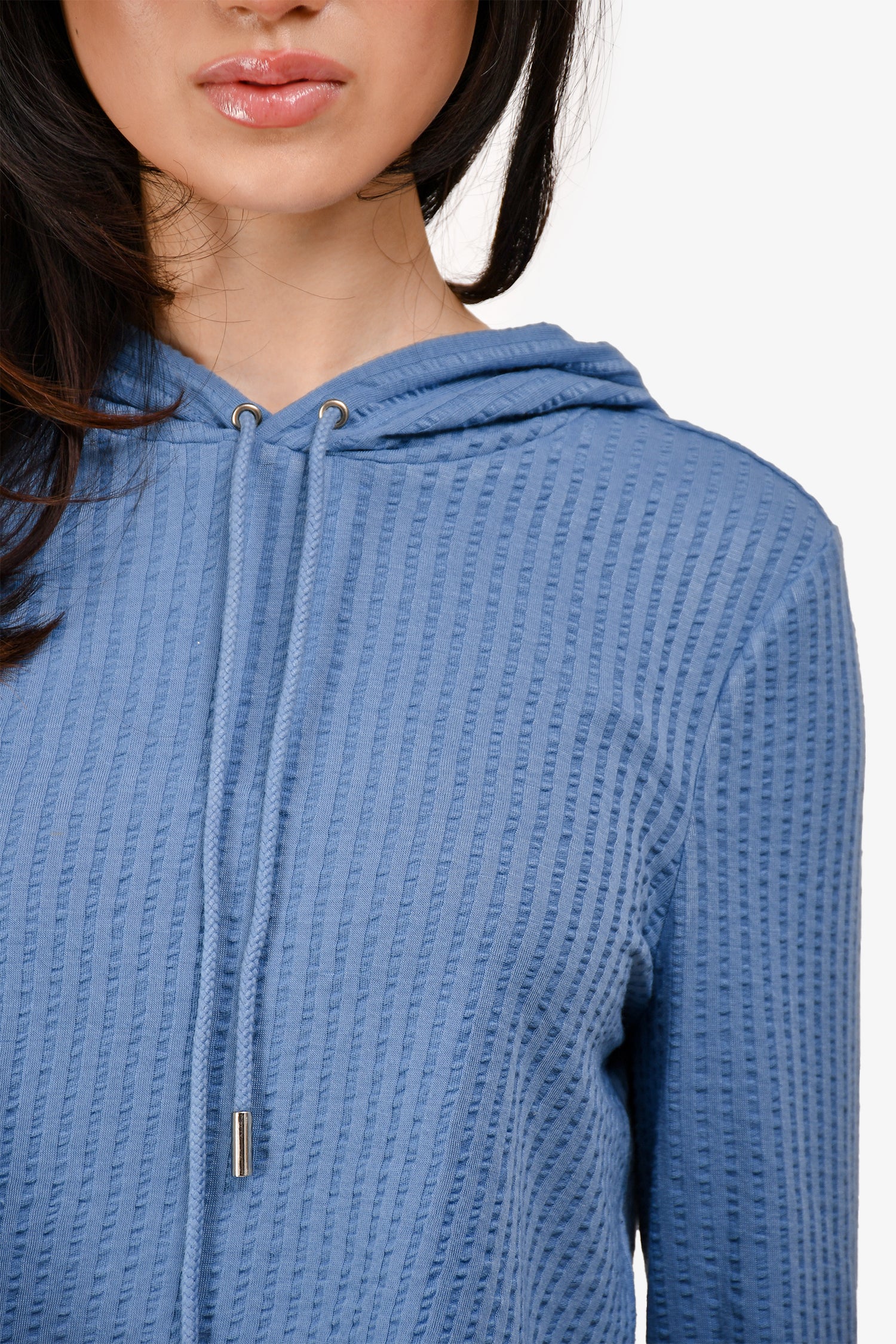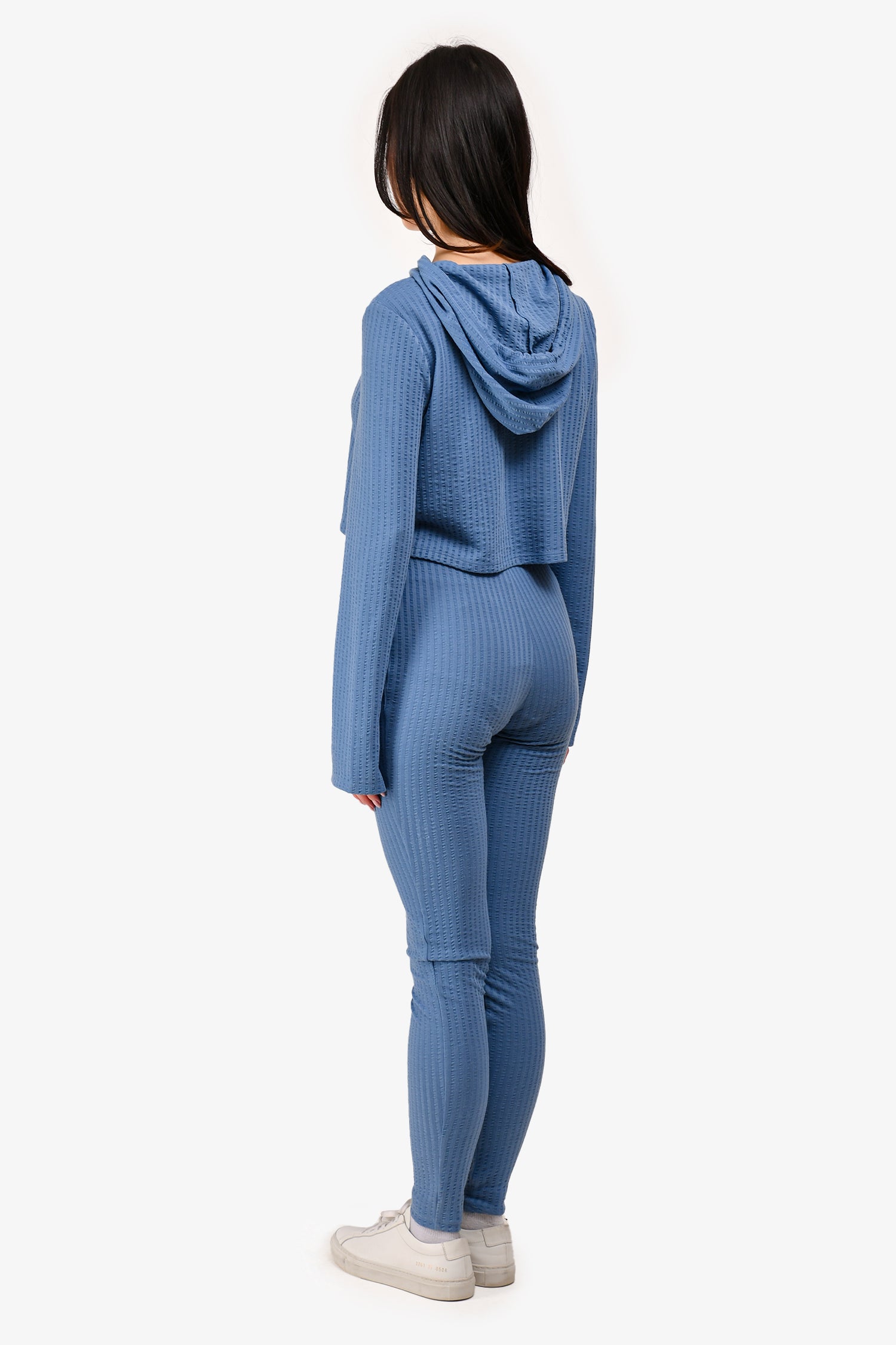 Refresh availabilityCamila Coehlo Blue Ribbed Lightweight Hoodie + Joggers Set. Drawstrings on pants and top. Silver-tone hardware. Tonal stitching.