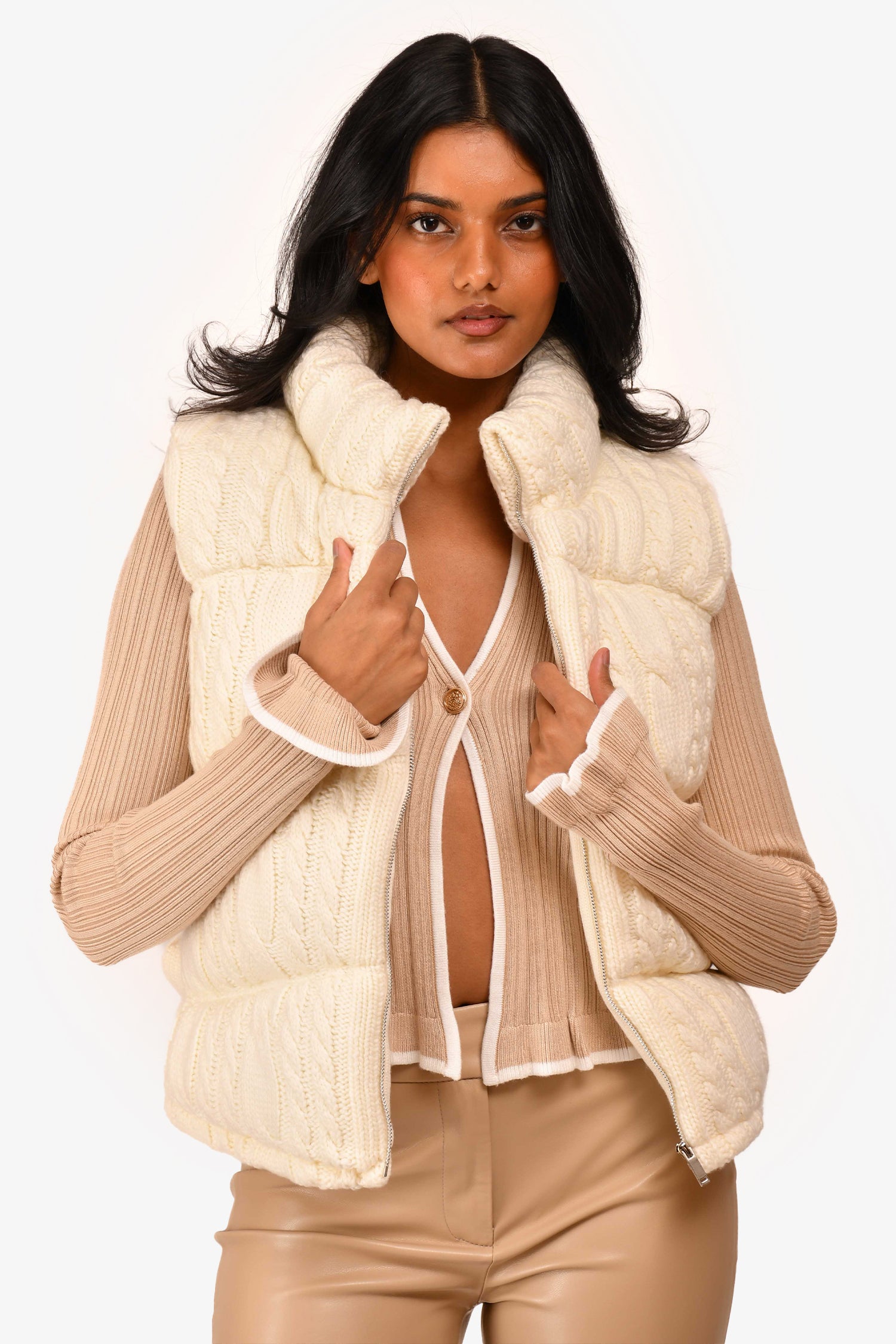 Camila Coelho Cream Eissa Knit Puffer Vest with Belt Size S