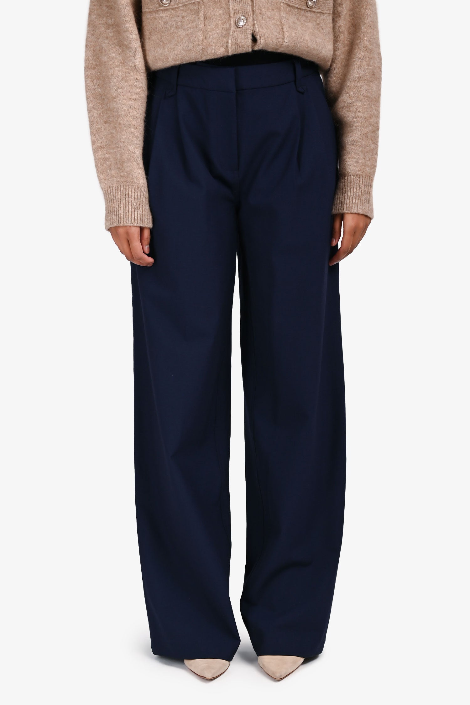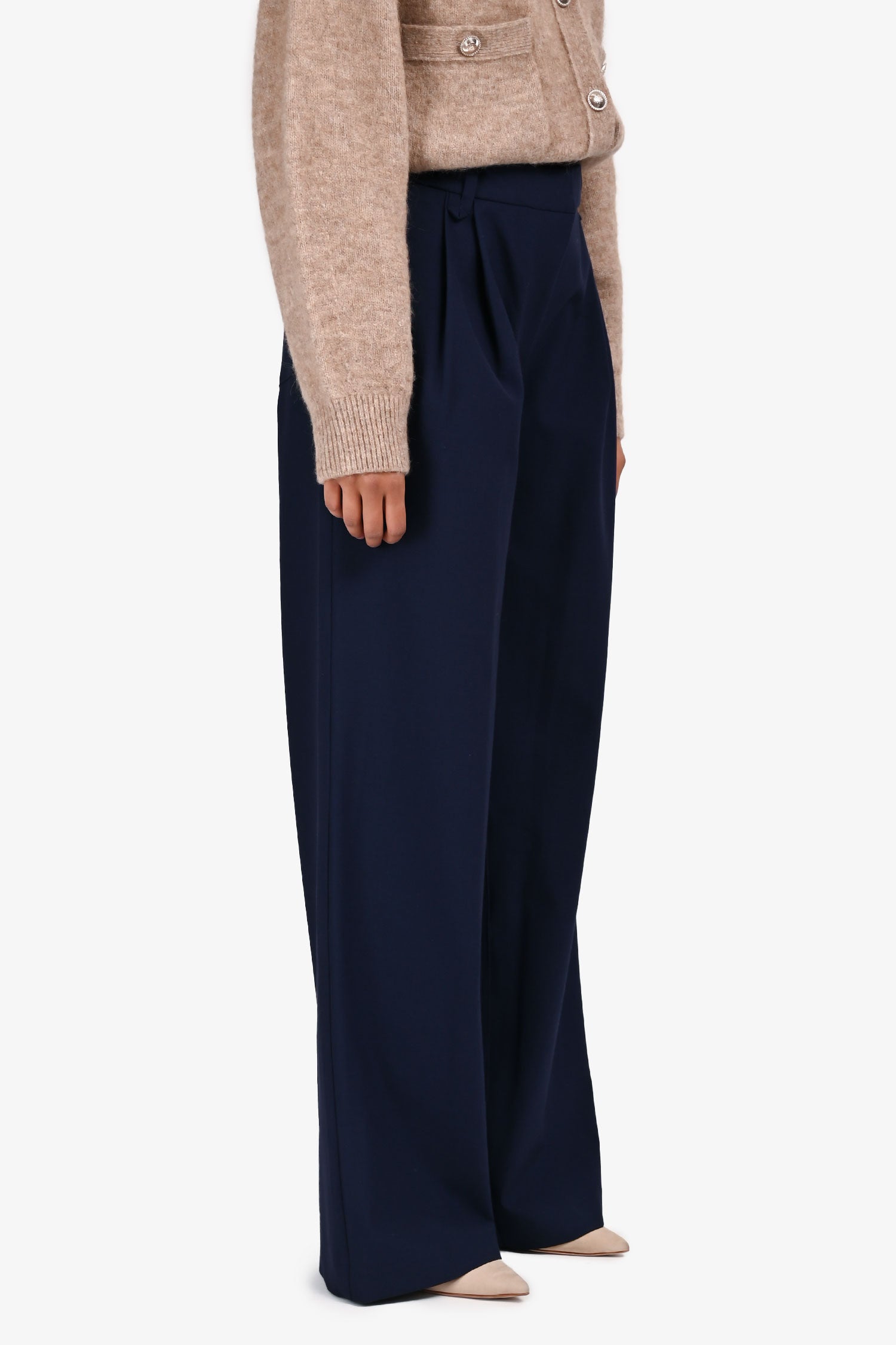Refresh availabilityCamila Coelho Navy Wide Leg Trousers. Pull-on. Front zip and hook closure. Waist belt loops. Front pockets. Tonal stitching.