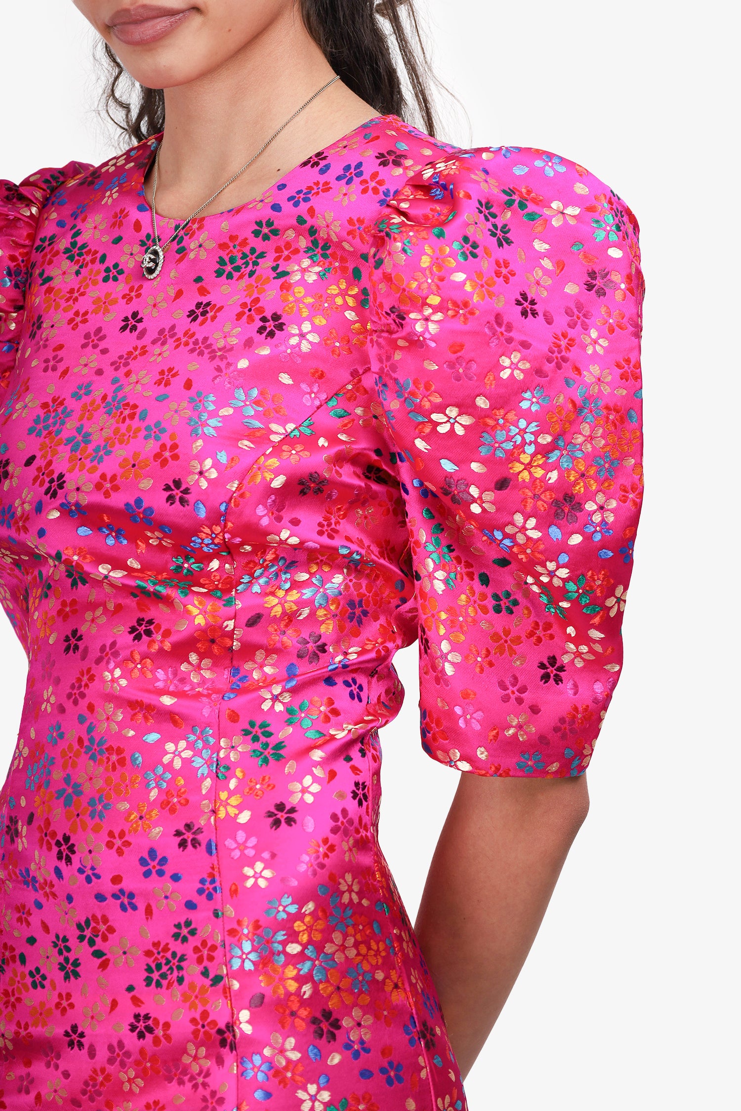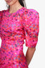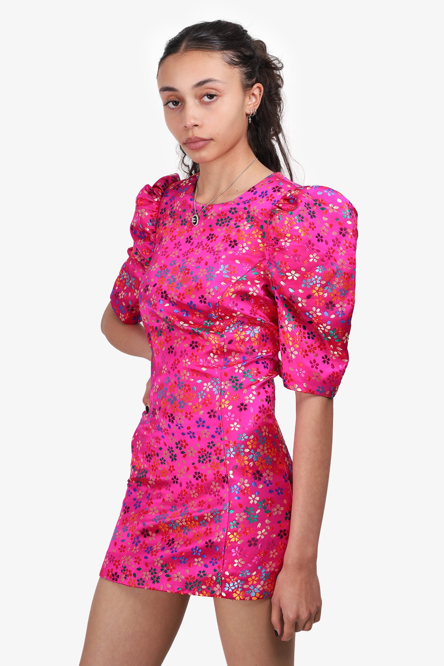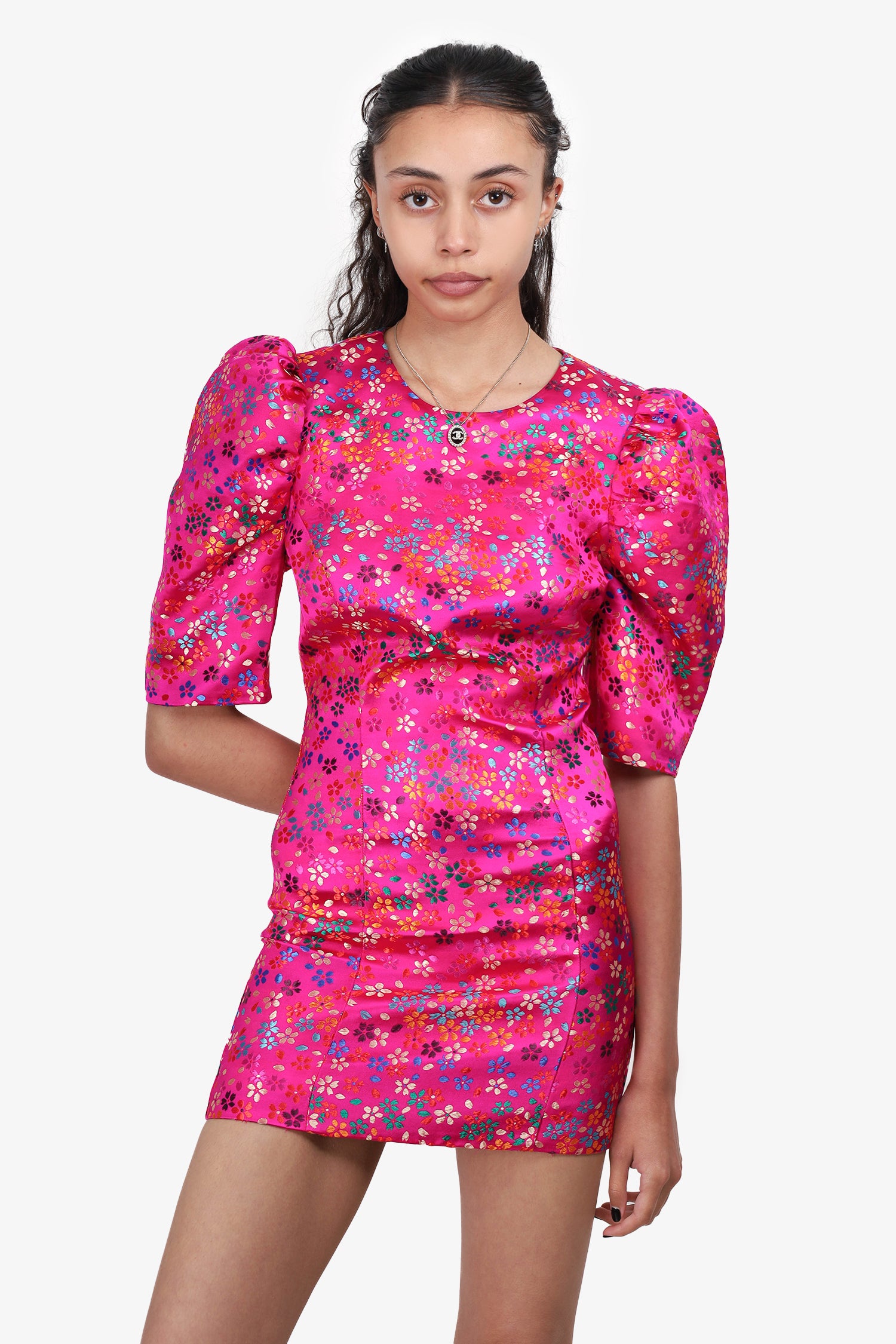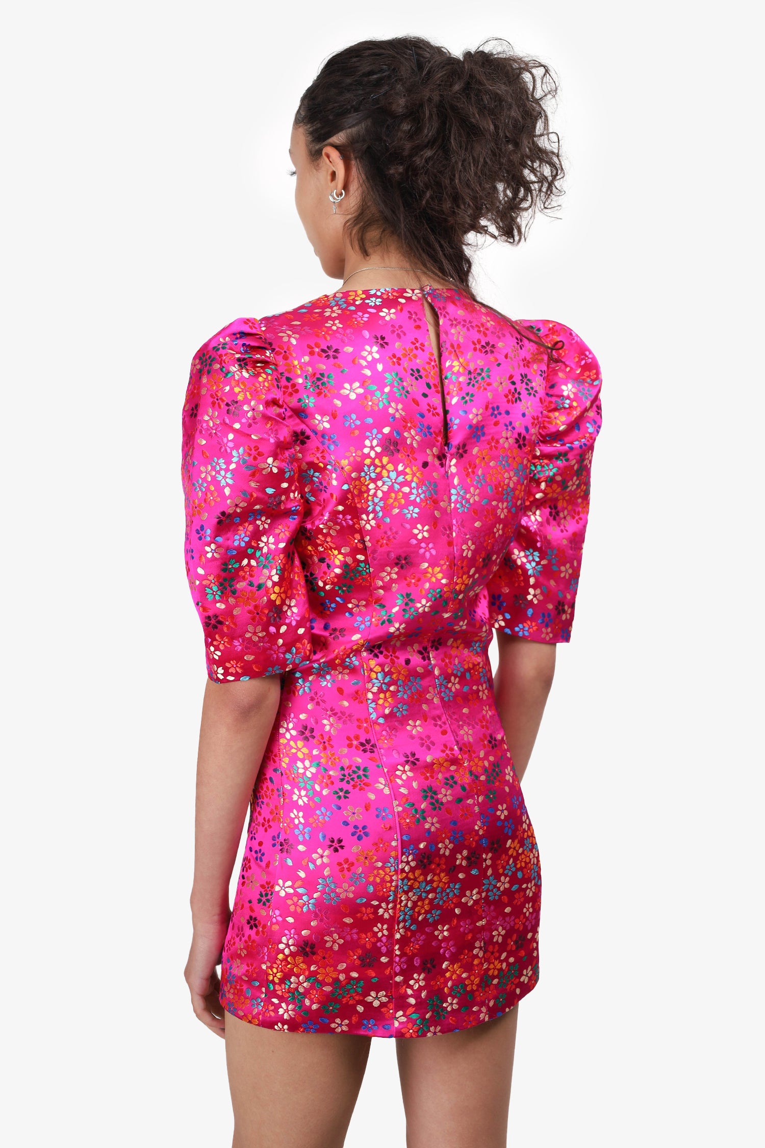 Refresh availabilityCamila Coelho Pink Embroidered Dress. Round neckline. Rear zip and button closure. 3/4 puff sleeves. Tonal stitching.