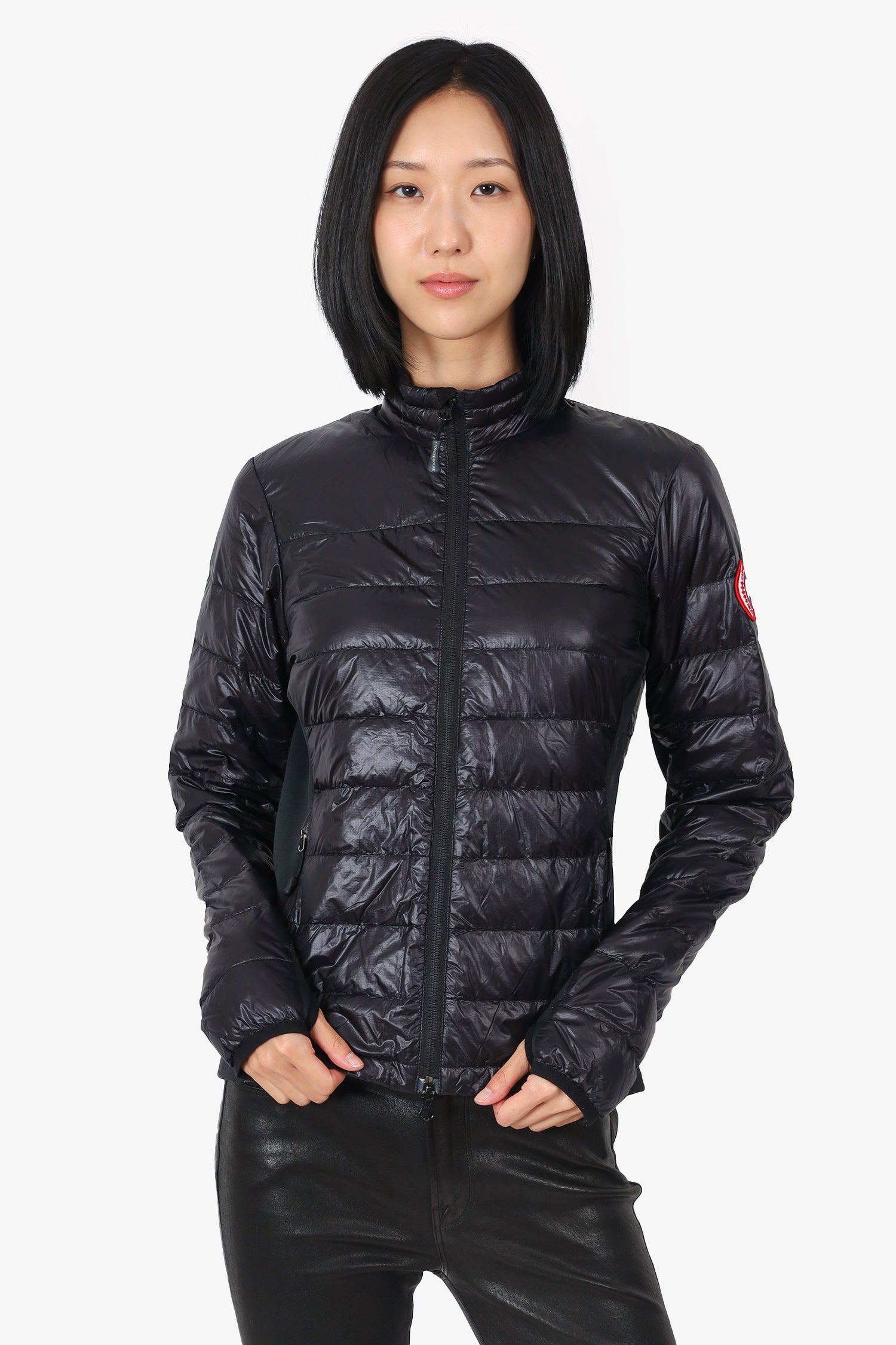 Refresh availabilityCanada Goose Black HyBridge Lite Jacket. Pull-on. Front zip-up closure. Elasticated fabric to side. Thumb holes. 2 exterior side zip pockets. Tonal stitching.