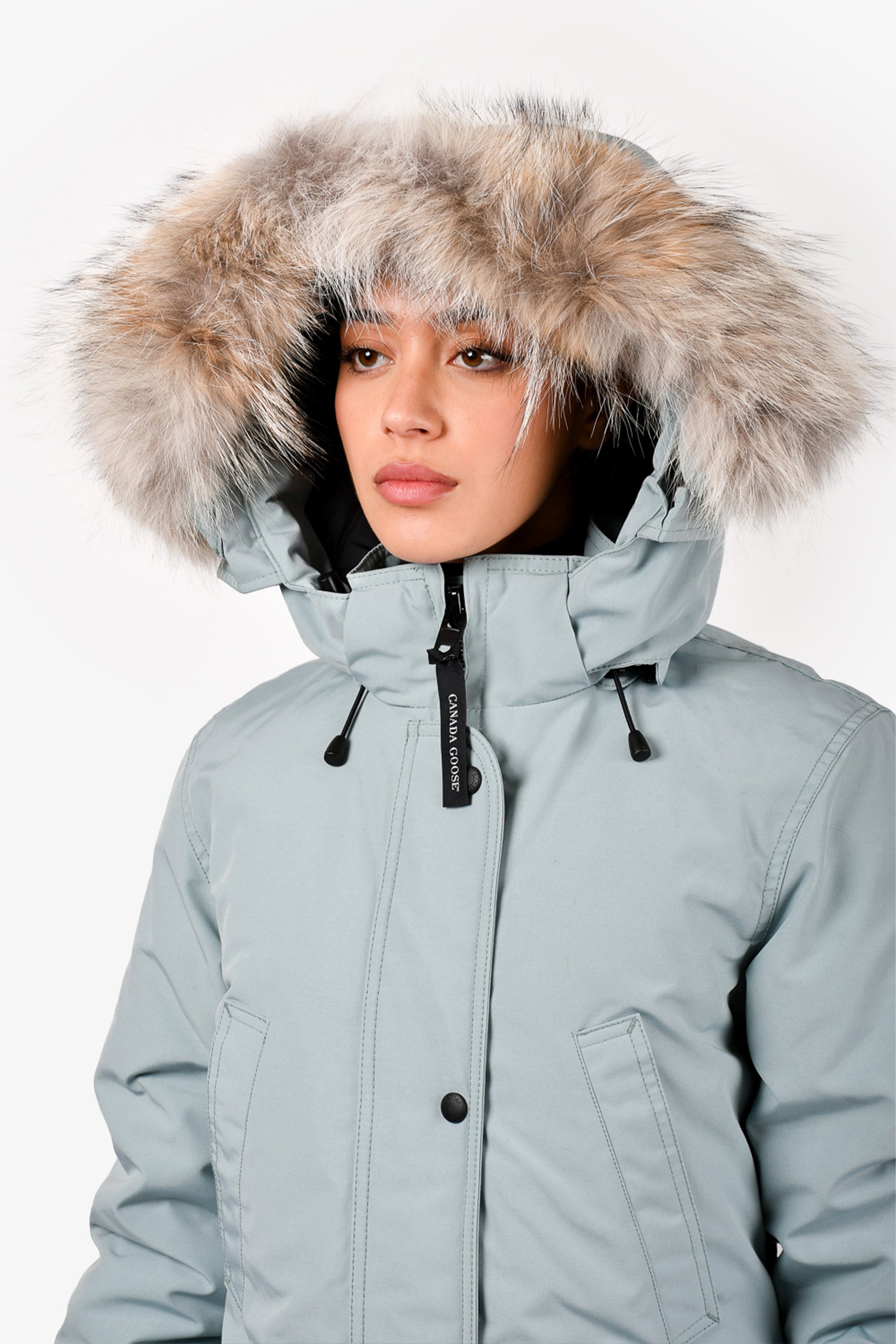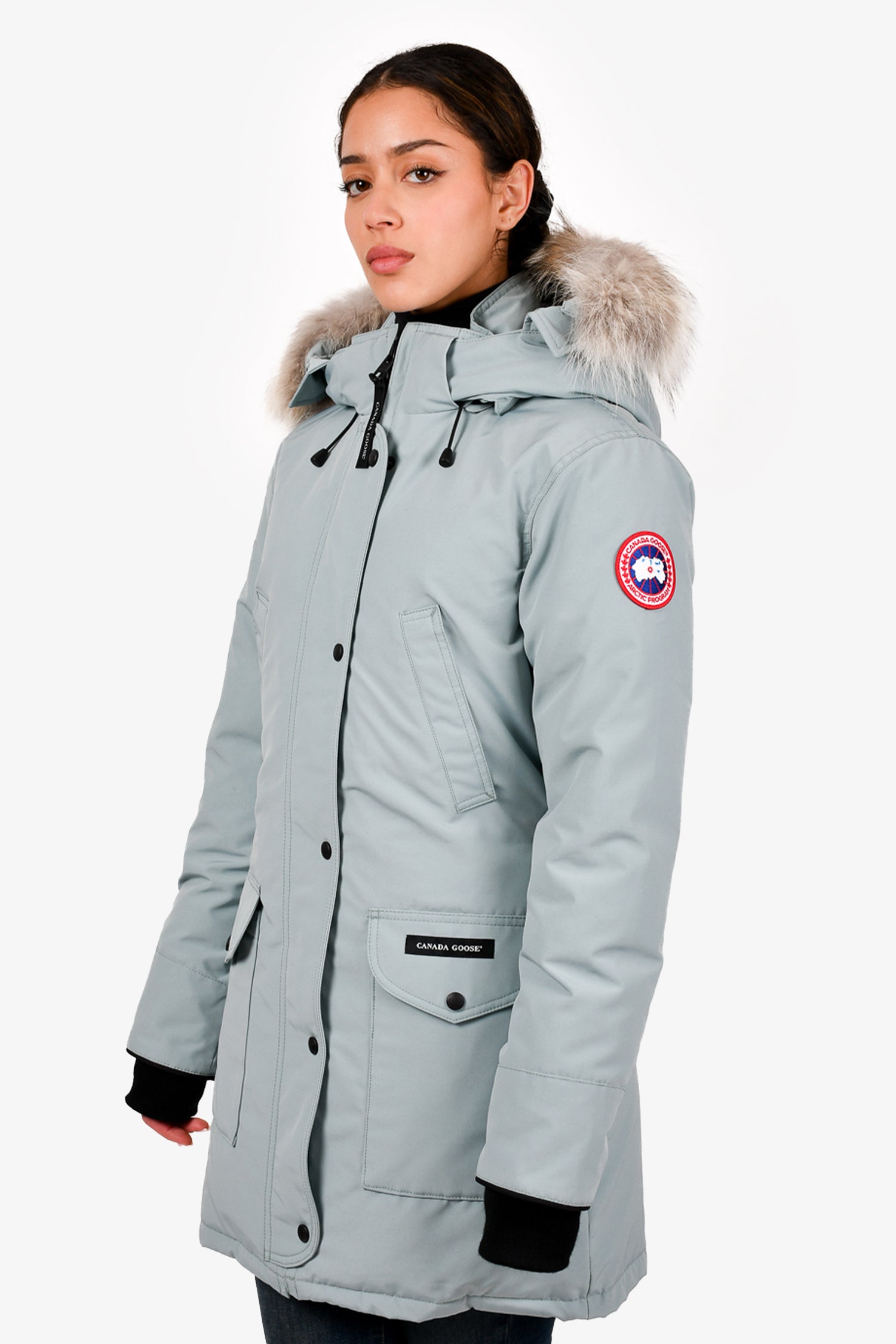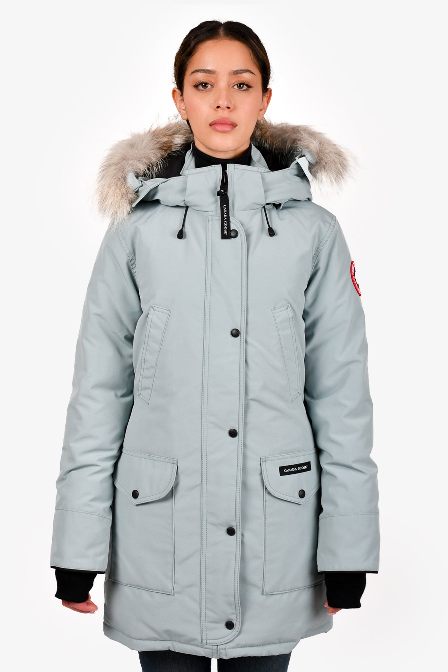 Refresh availabilityCanada Goose Blue Down Trillium Fur Hood Parka. Front two-way zip and snap button-up closure. Front pockets with snap-button closure. Brand logo patch on the left sleeve. Removable zip fur hood trim. Tonal stitching.