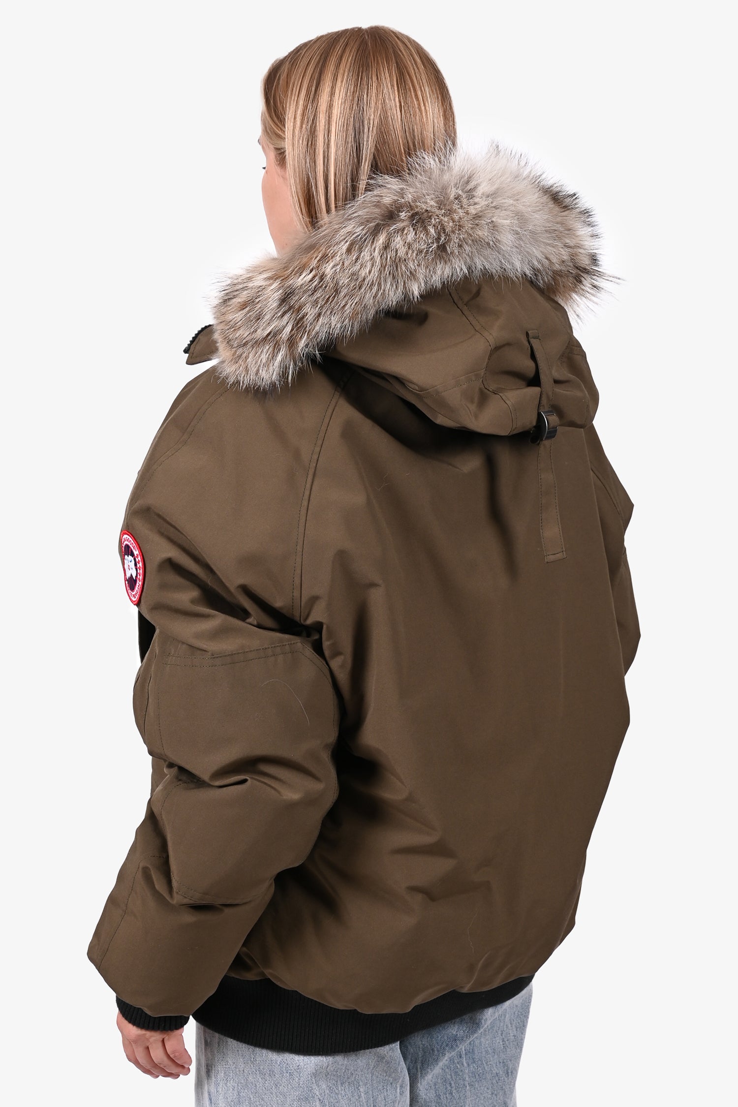 Refresh availabilityCanada Goose Green Chilliwack Bomber. Front two-way zip closure. Front pockets. Ribbed cuffs and hem. Tonal stitching.
