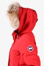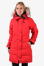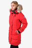 Canada Goose Red Down Long Puffer Jacket with Removable Fur Hood Size S