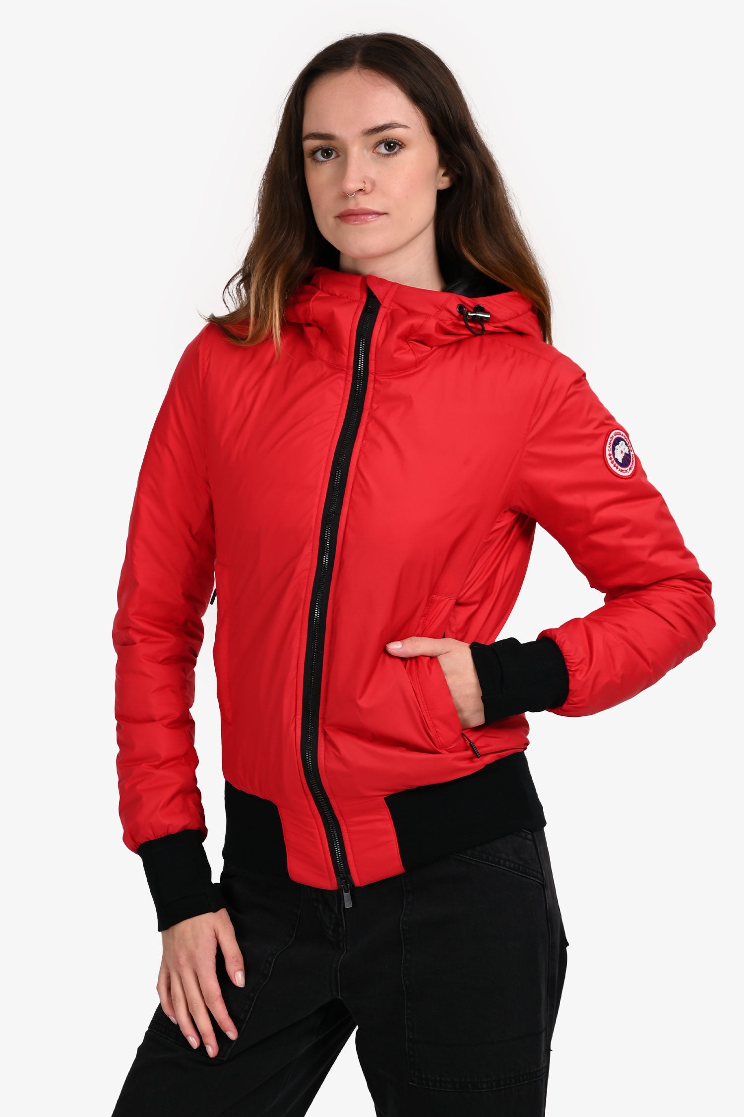 Refresh availabilityCanada Goose Red Lightweight Hooded Jacket. Pull-on. Front two-way zip closure. Adjustable drawstring hood. Elasticized cuffs. 2 exterior zip pockets; 1 interior zip pocket. Tonal stitching.