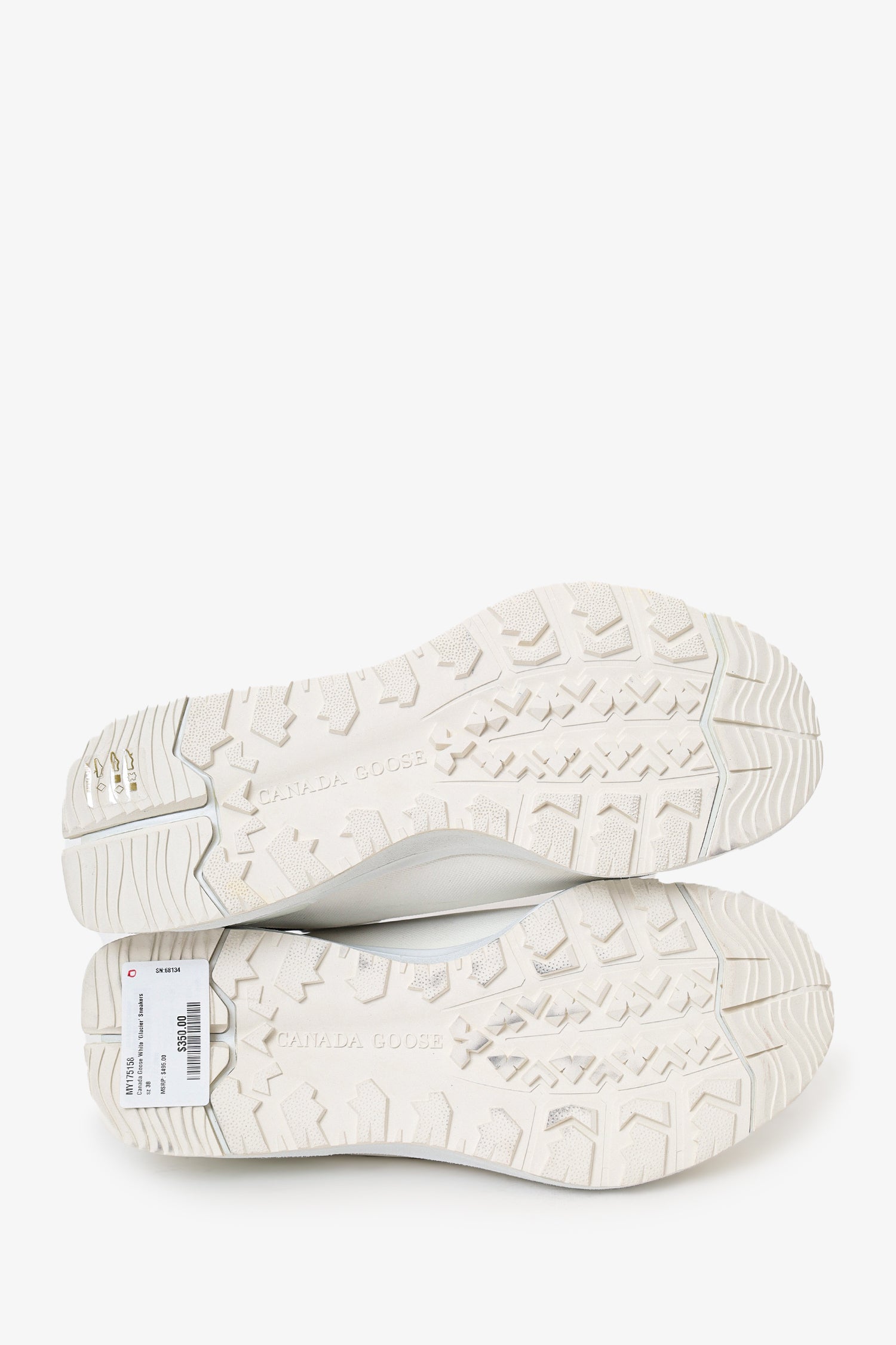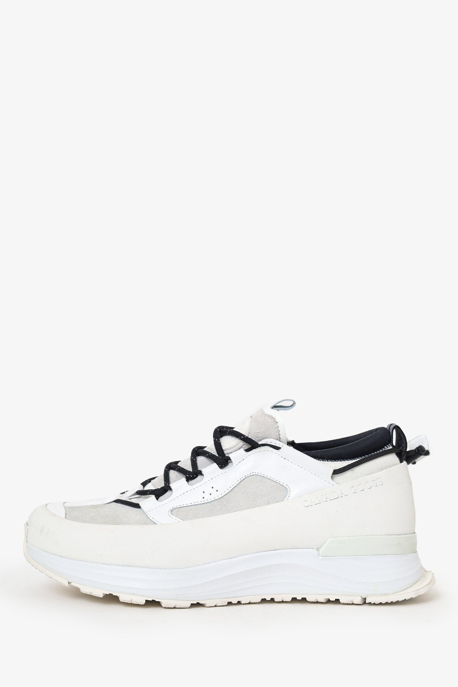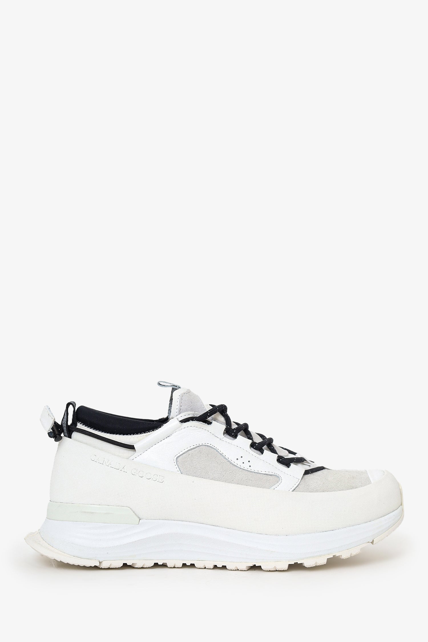 Refresh availabilityCanada Goose White 'Glacier' Sneakers. Slip-on. Front lace-up closure. Rounded toe. Rear pull tab. Tonal stitching.