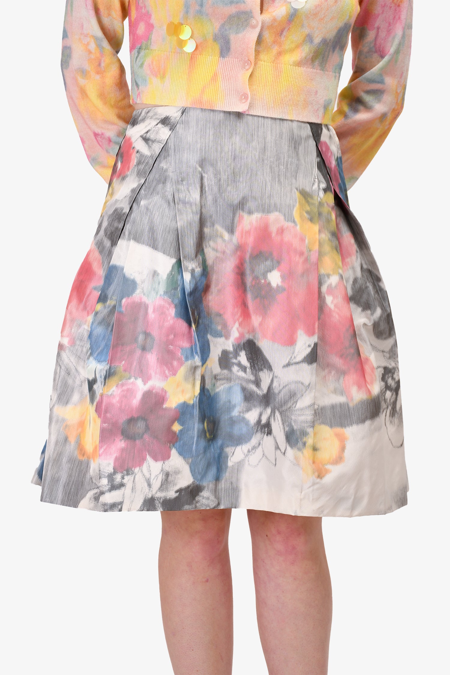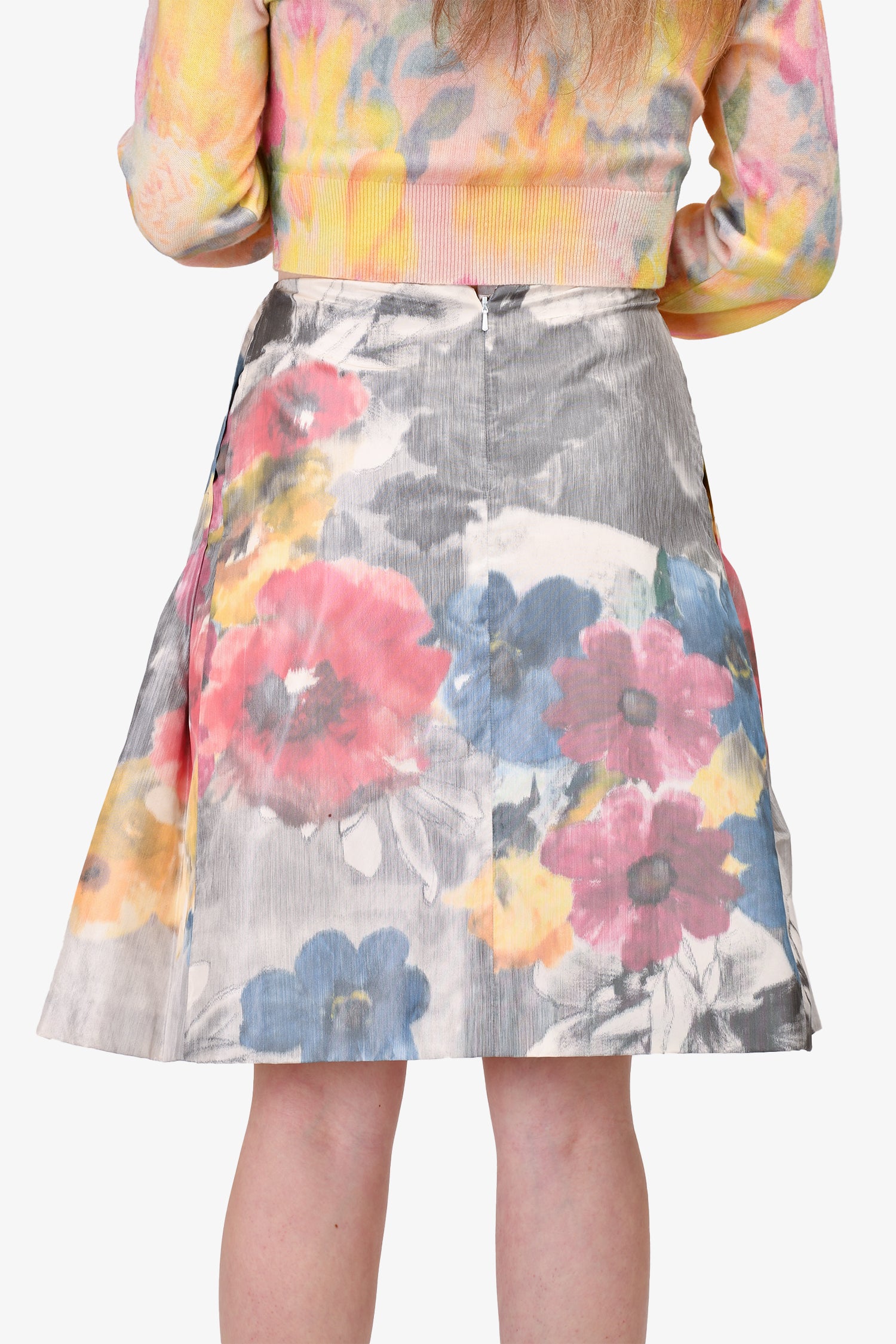 Carolina Herrera 2011 Grey/Pink Watercolour Flower Skirt Size 6
