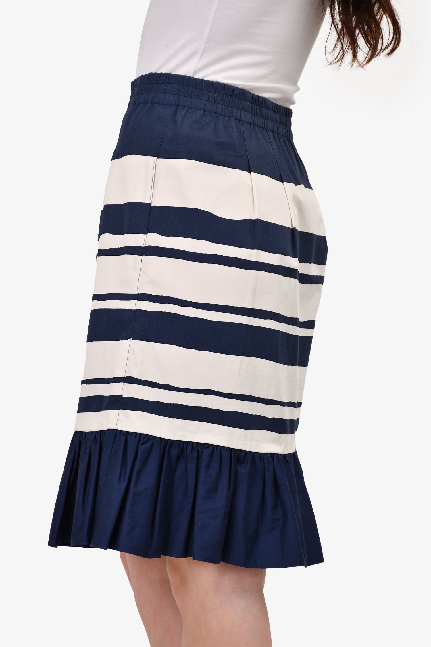 Carolina Herrera Blue/White Striped Ruffle Midi Skirt Size M