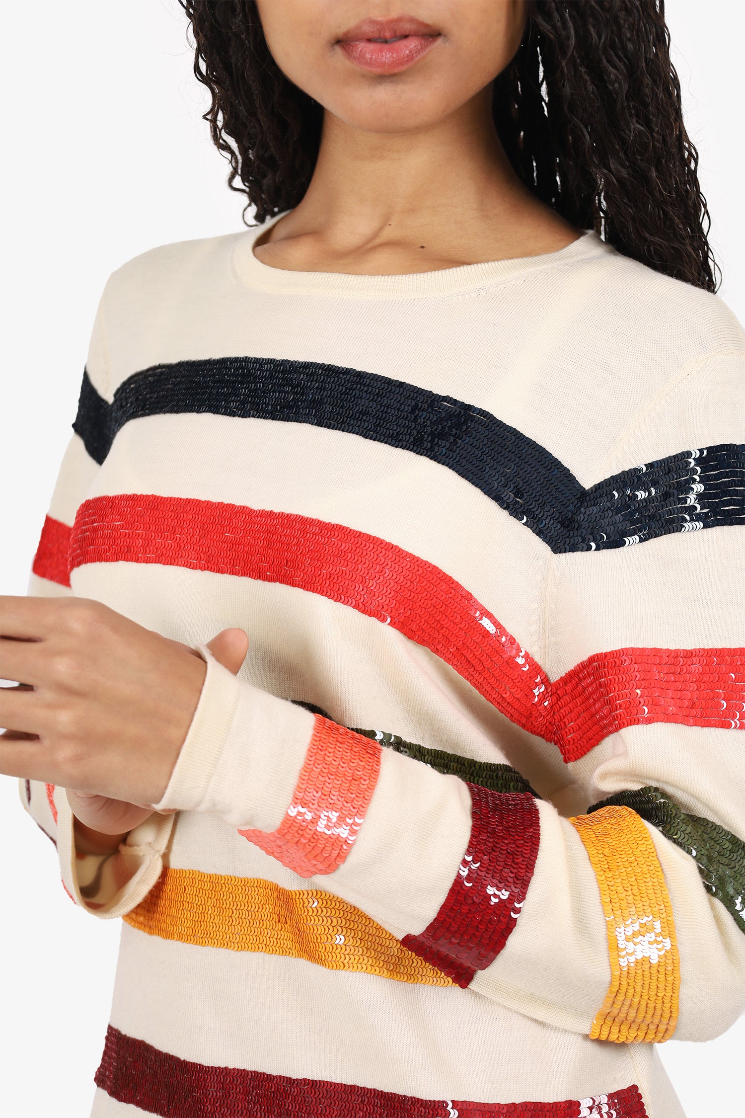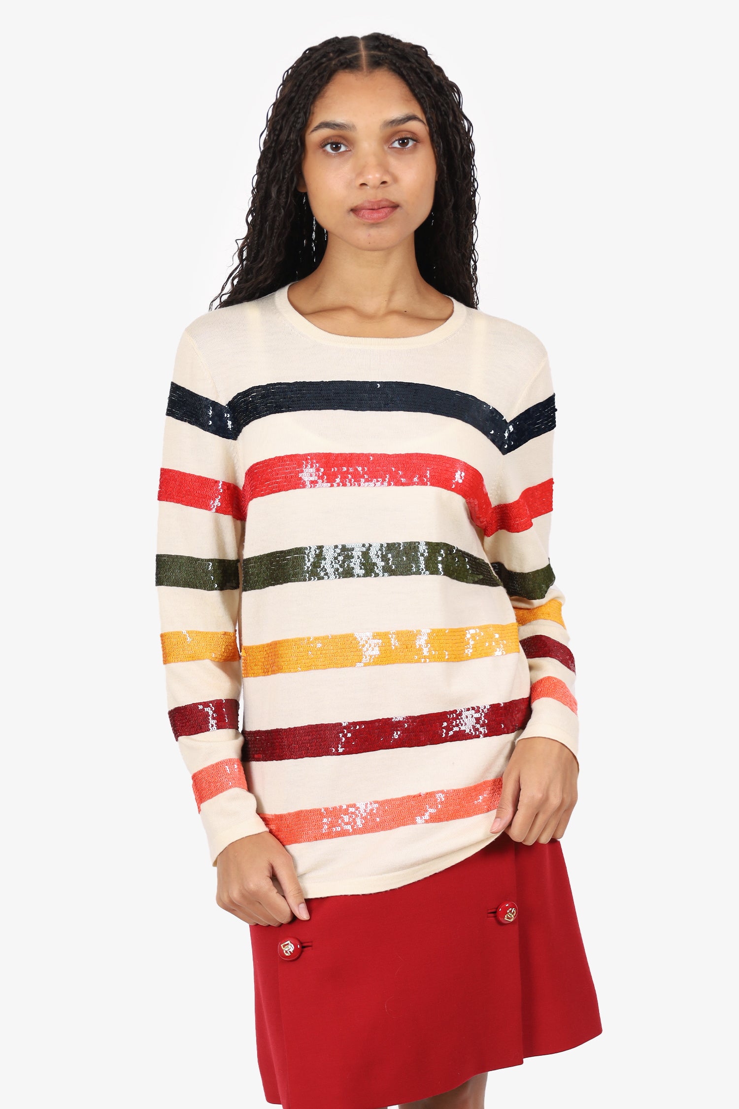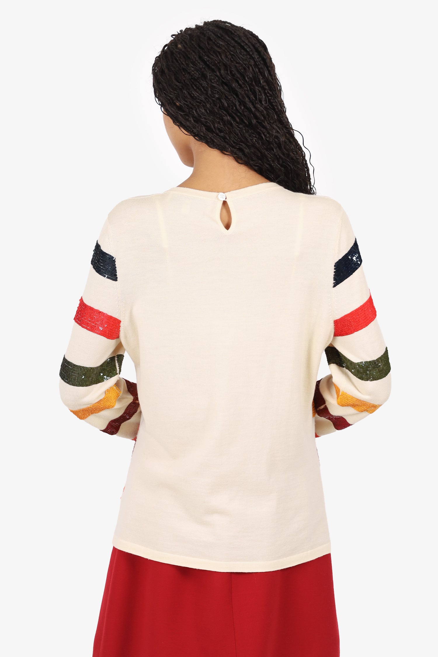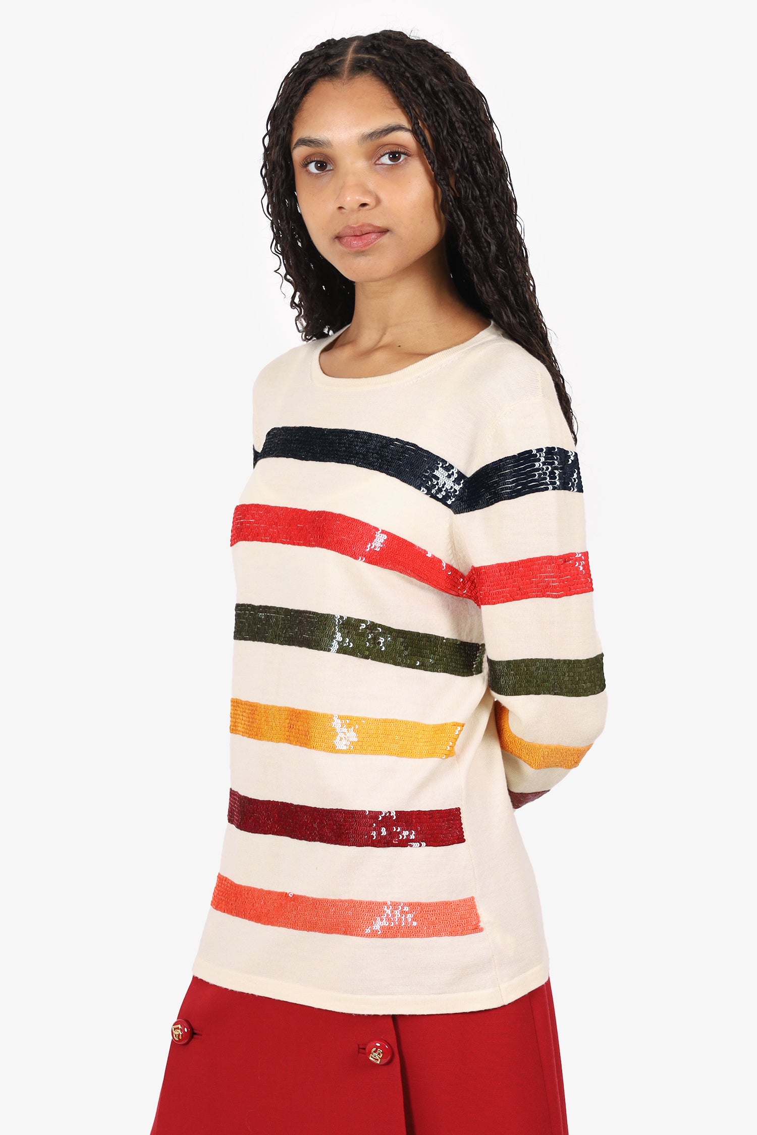 Carolina Herrera Cream/Multicolour Sequin/Wool Sweater Size L