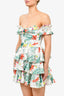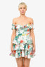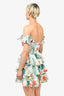 Caroline Constas White/Green Floral Print Tiered Lace Dress Est. Size S