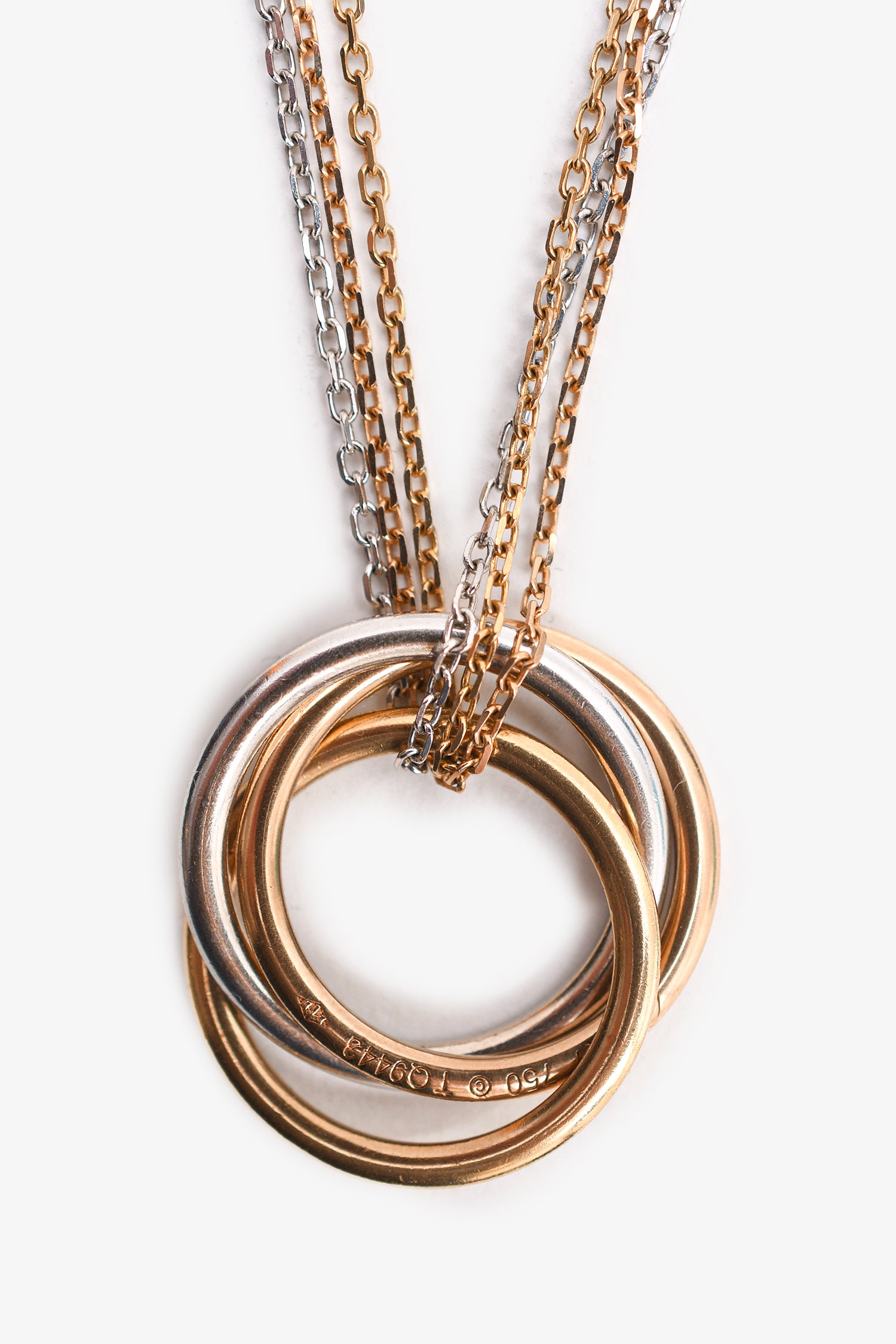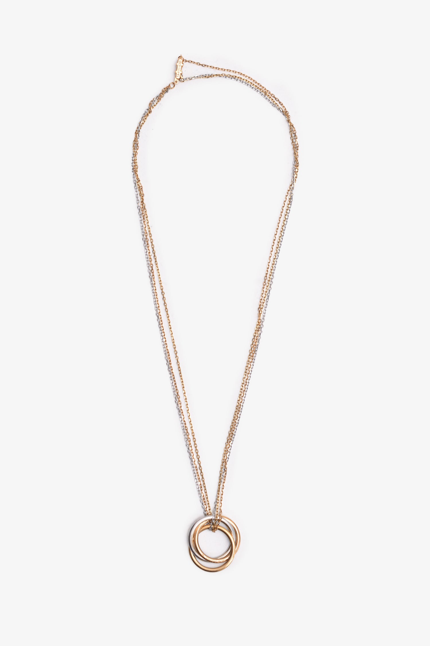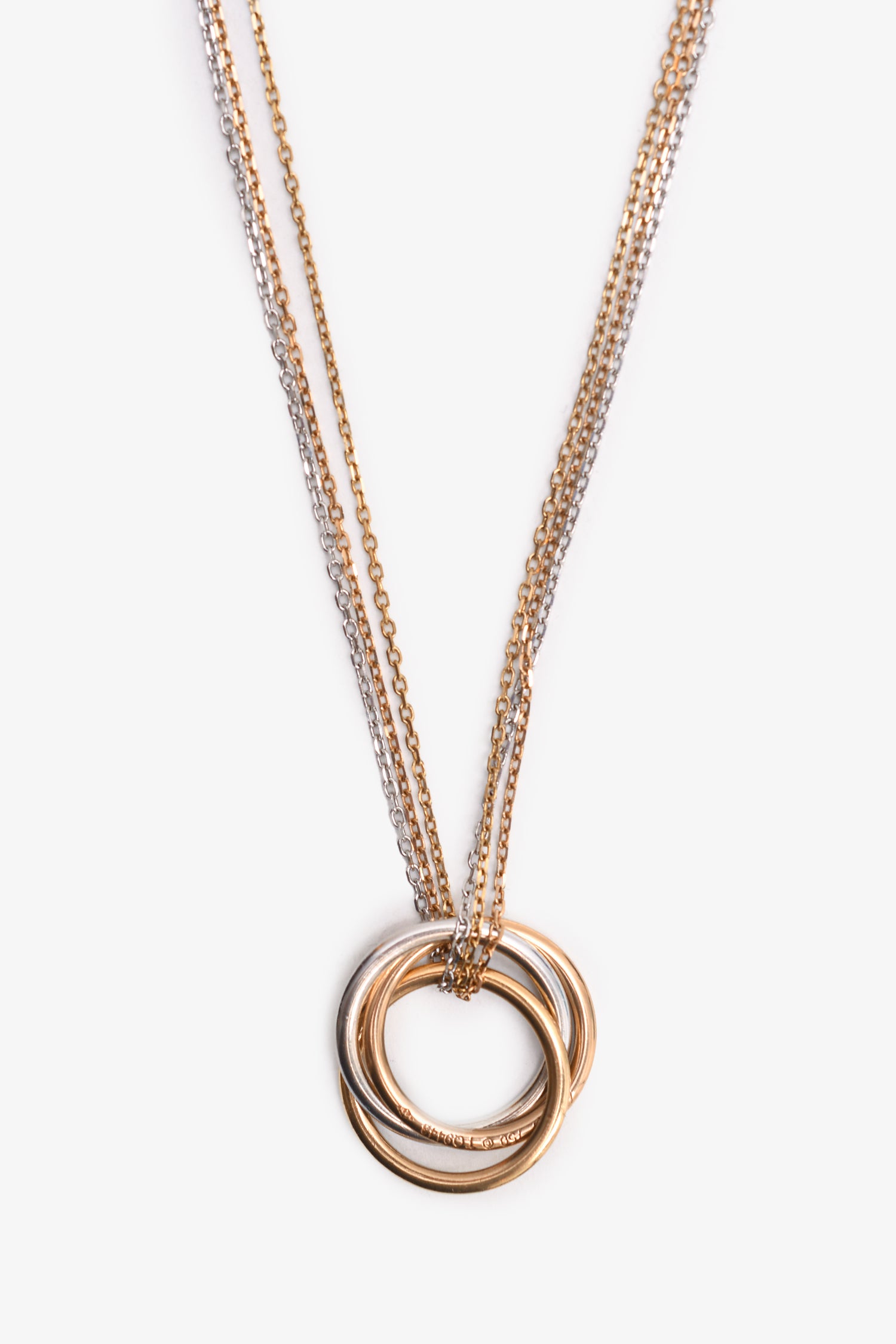 Refresh availabilityCartier 18K Tri-Coloured Gold Diamond Set Trinity Necklace. Push tab clasp closure.