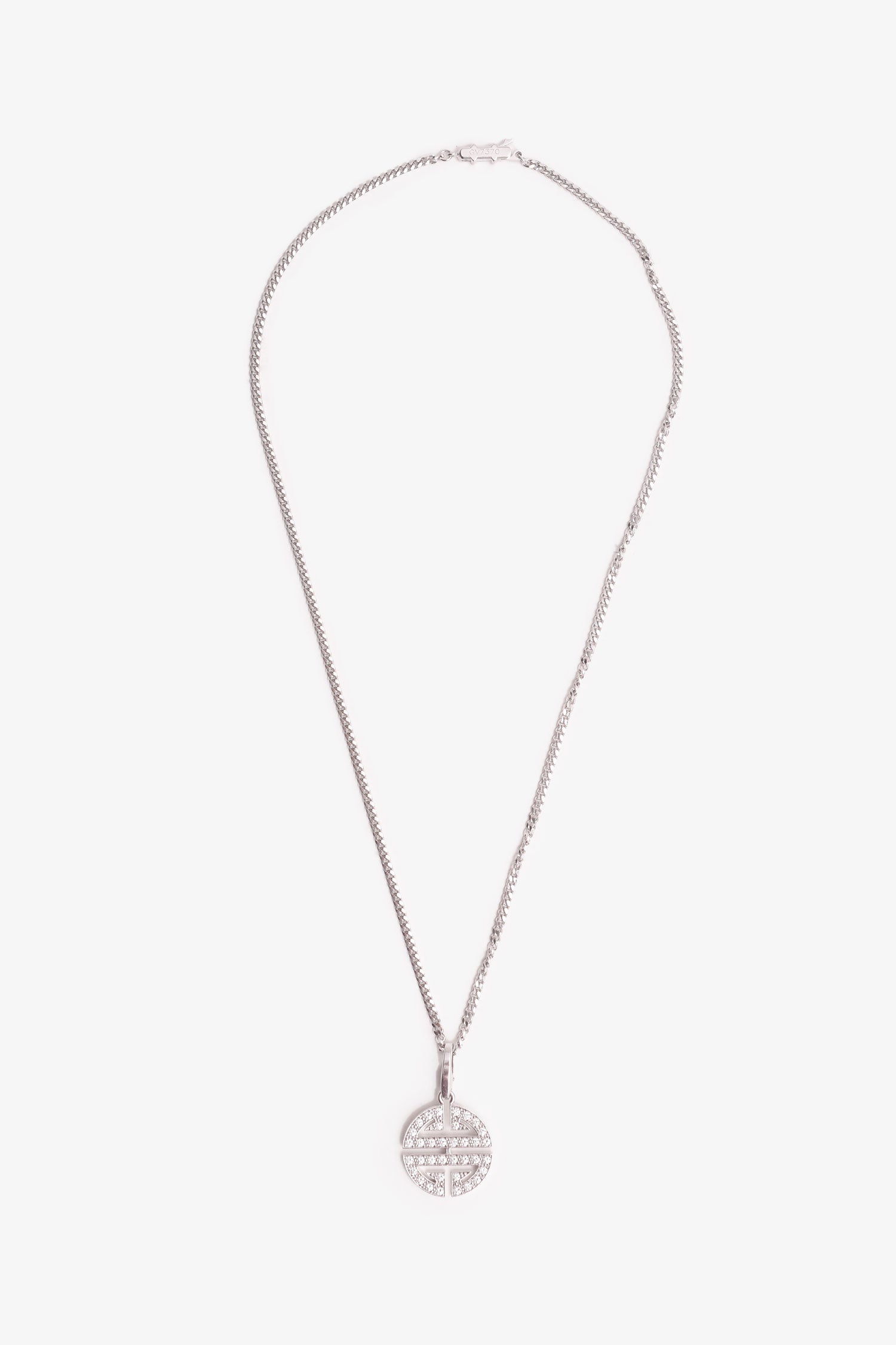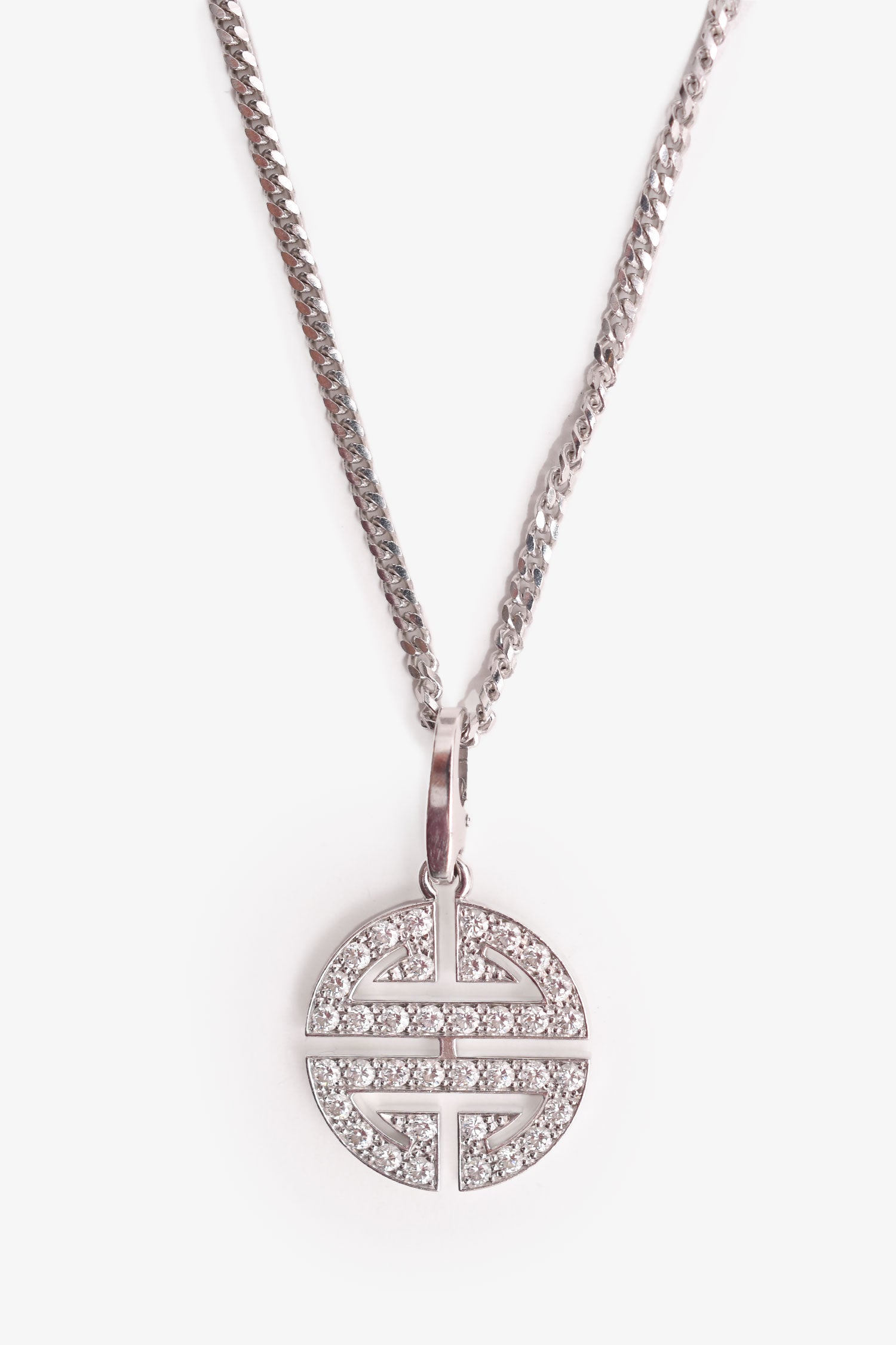 Refresh availabilityCartier 18K White Gold Diamond Set Logo Pendant Necklace. Lobster clasp closure.
