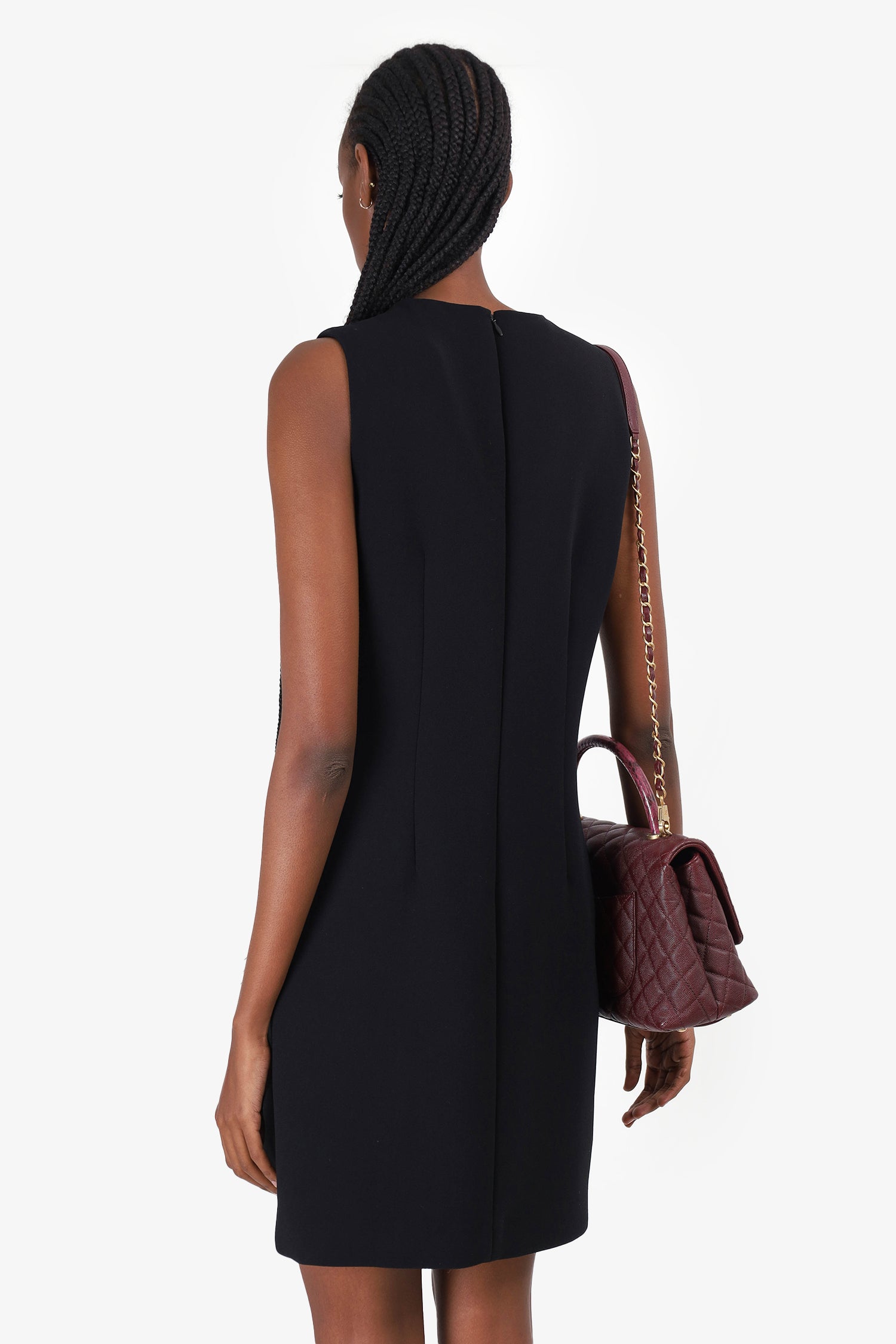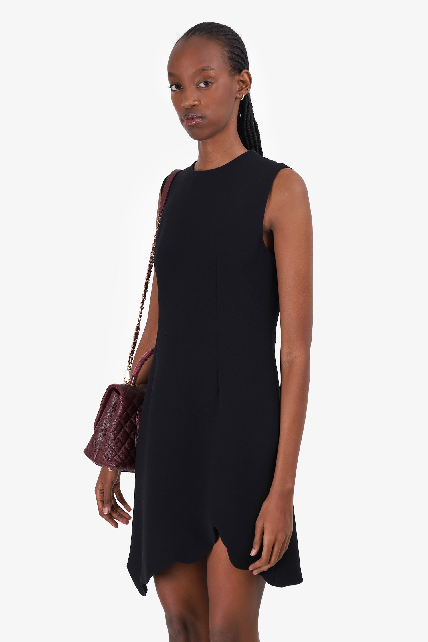 Refresh availabilityCarven Black Asymmetrical Hem Sleeveless Dress. Hidden rear zip closure. Curved hem. Lined. Tonal stitching.