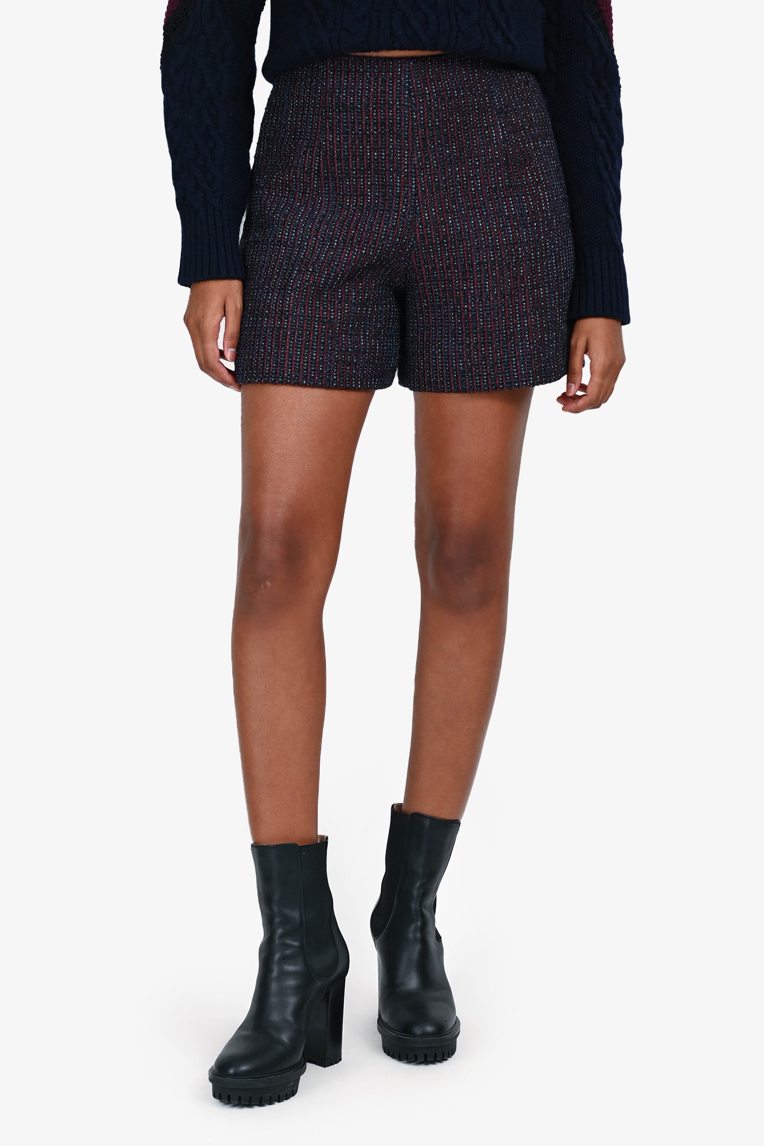 Carven Burgundy/Navy Tweed Mini Shorts Size 34