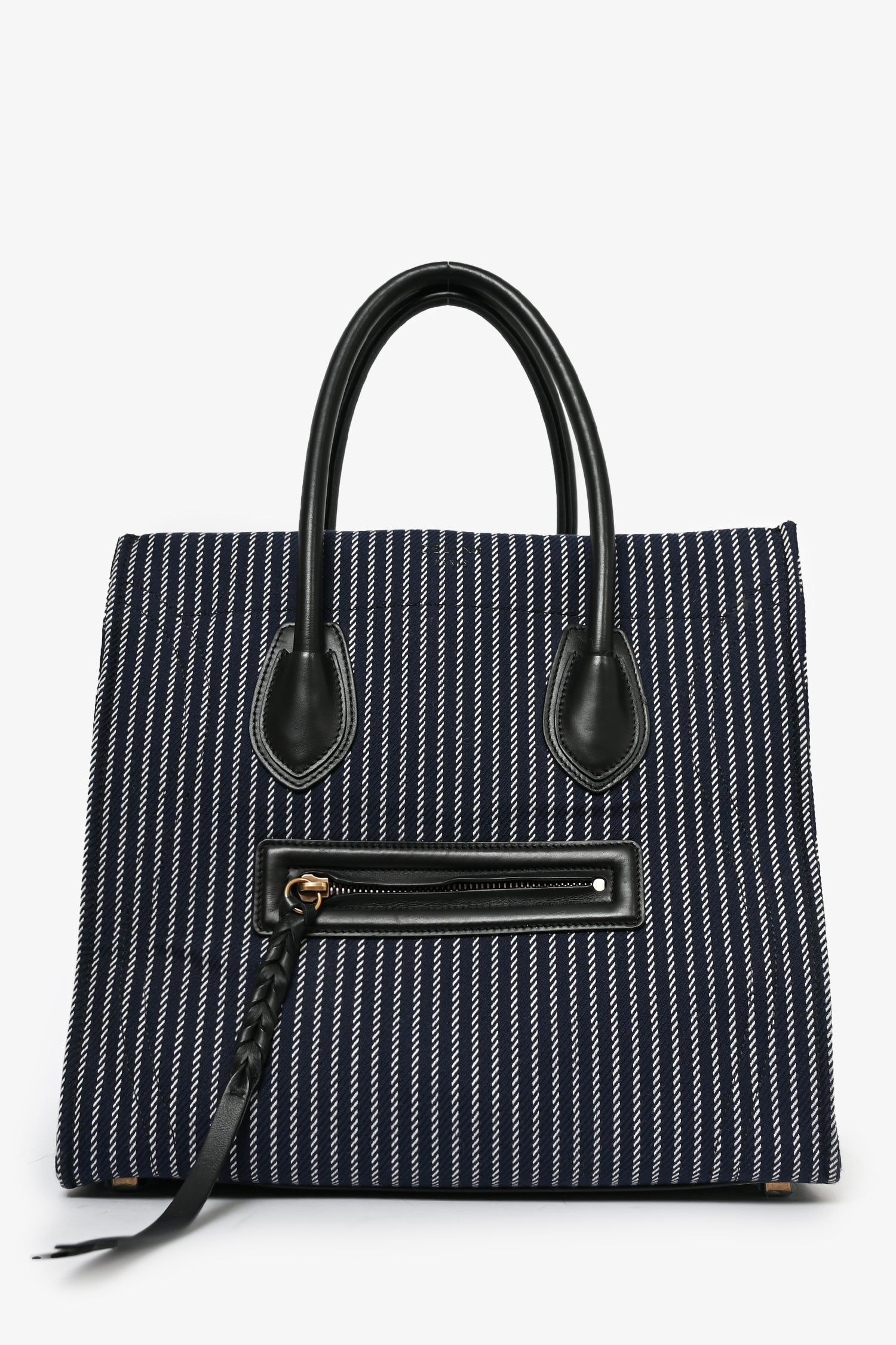 Celine 2015 Navy Blue Striped Canvas Phantom Cabas Tote