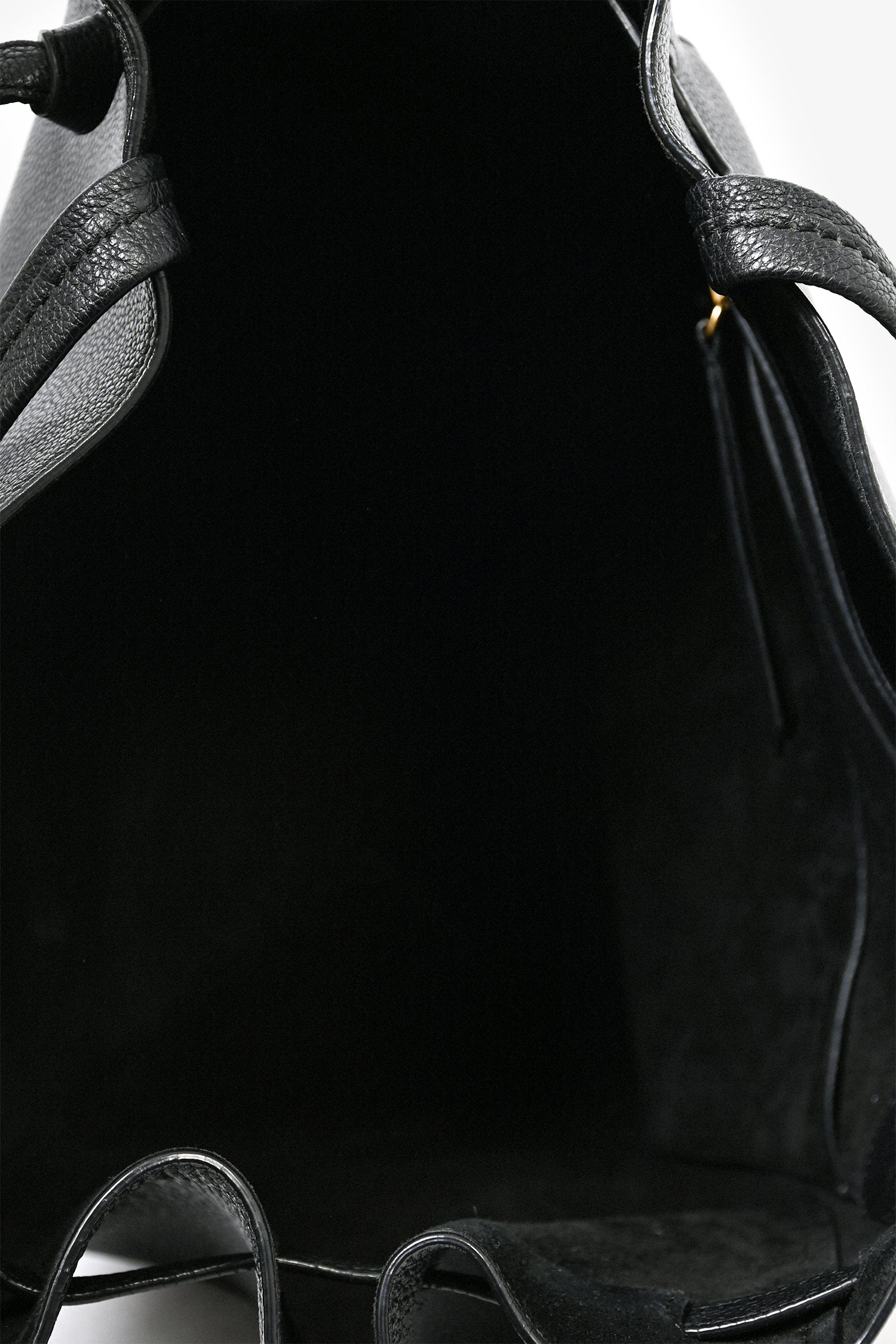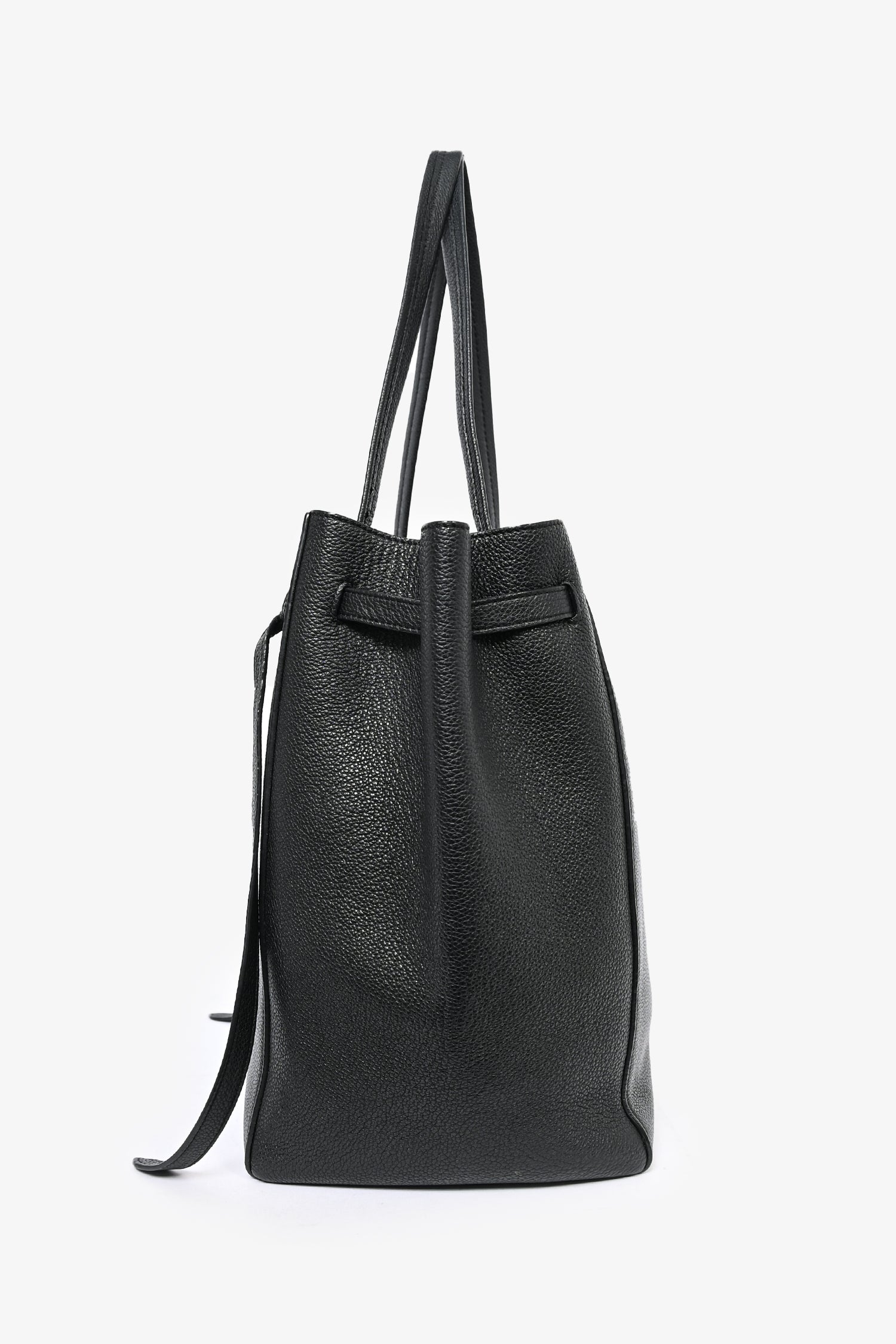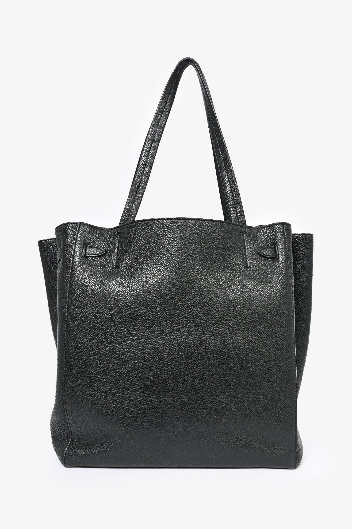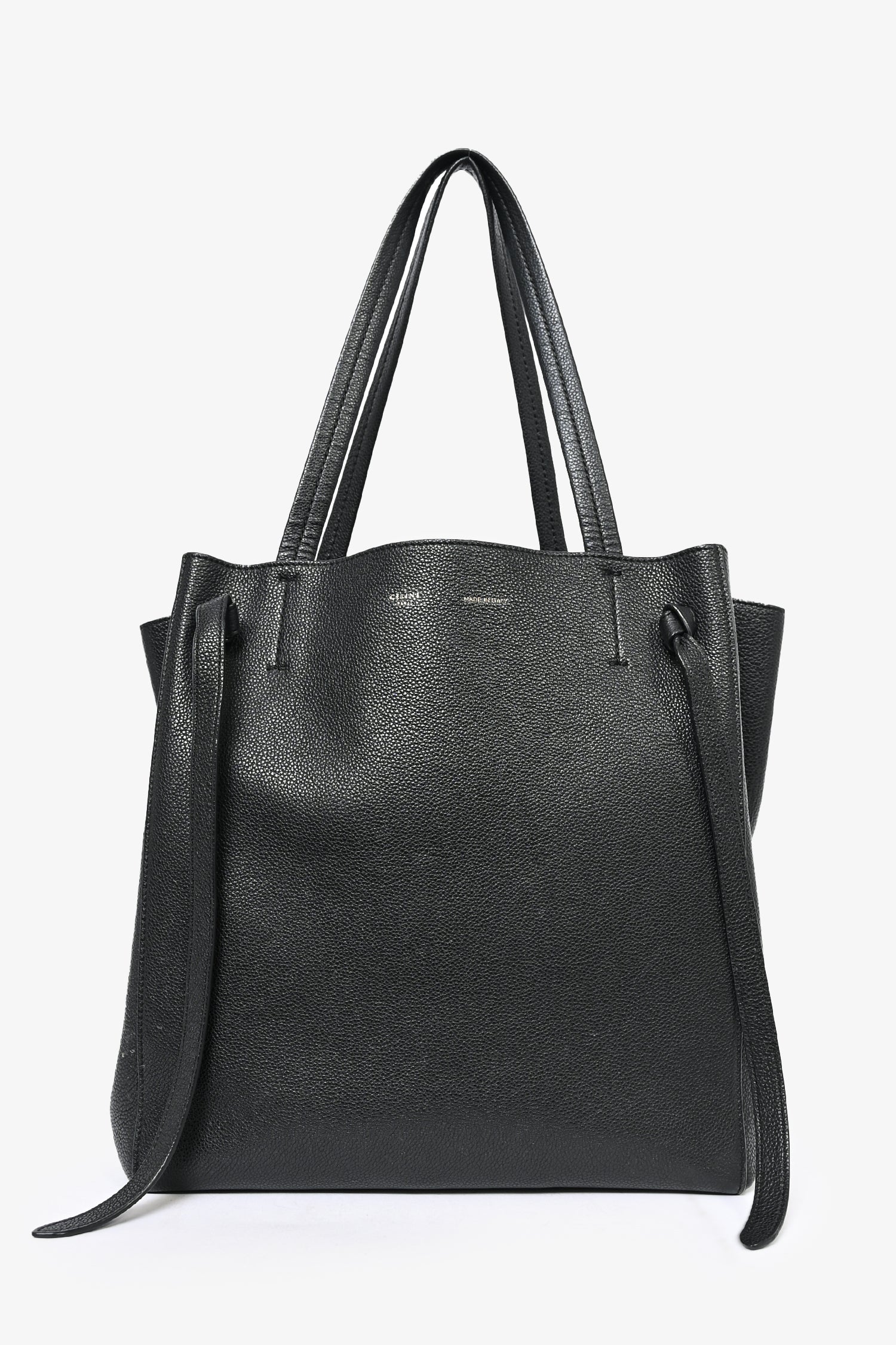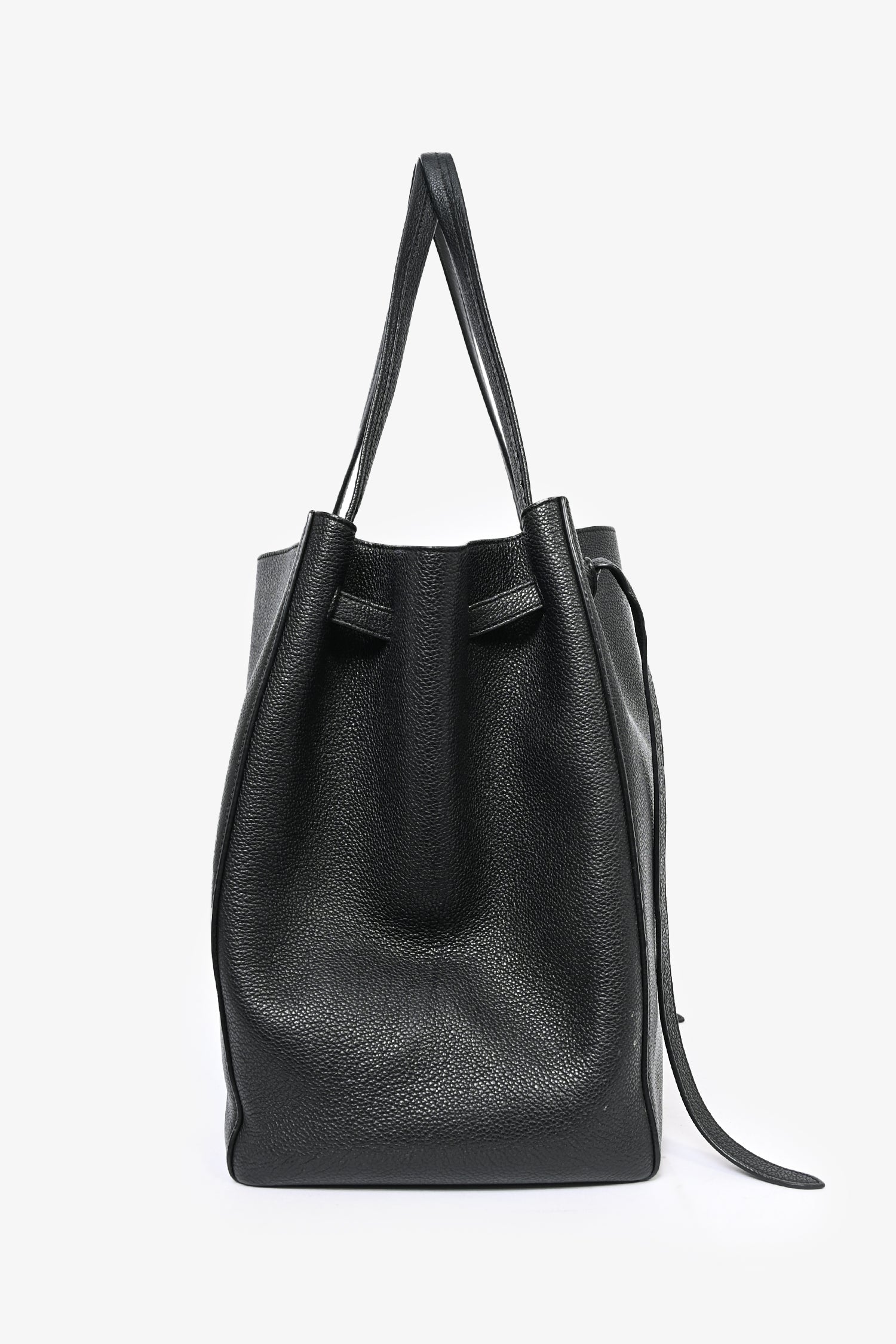 Refresh availabilityCeline 2016 Black Leather Cabas Tote Bag. 2 flat handles. Pull tabs. Tonal stitching. Leather trimming. Suede lined interior. Zipped interior pocket with pouch.