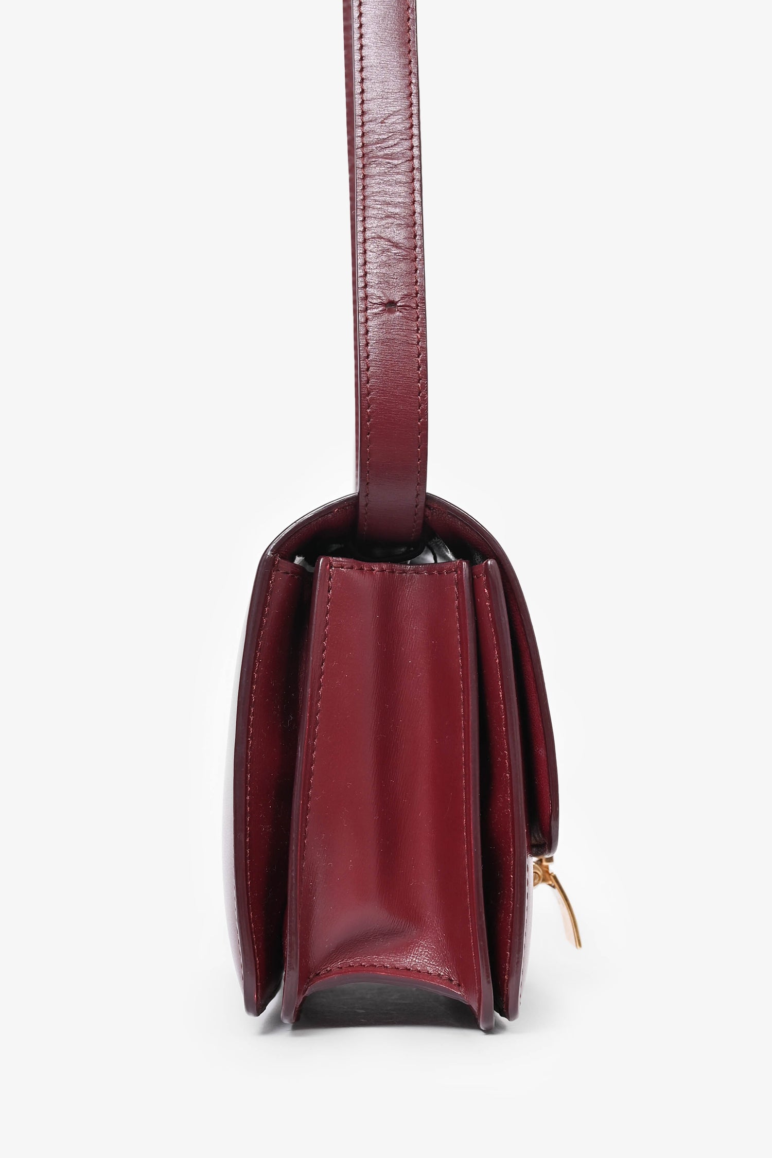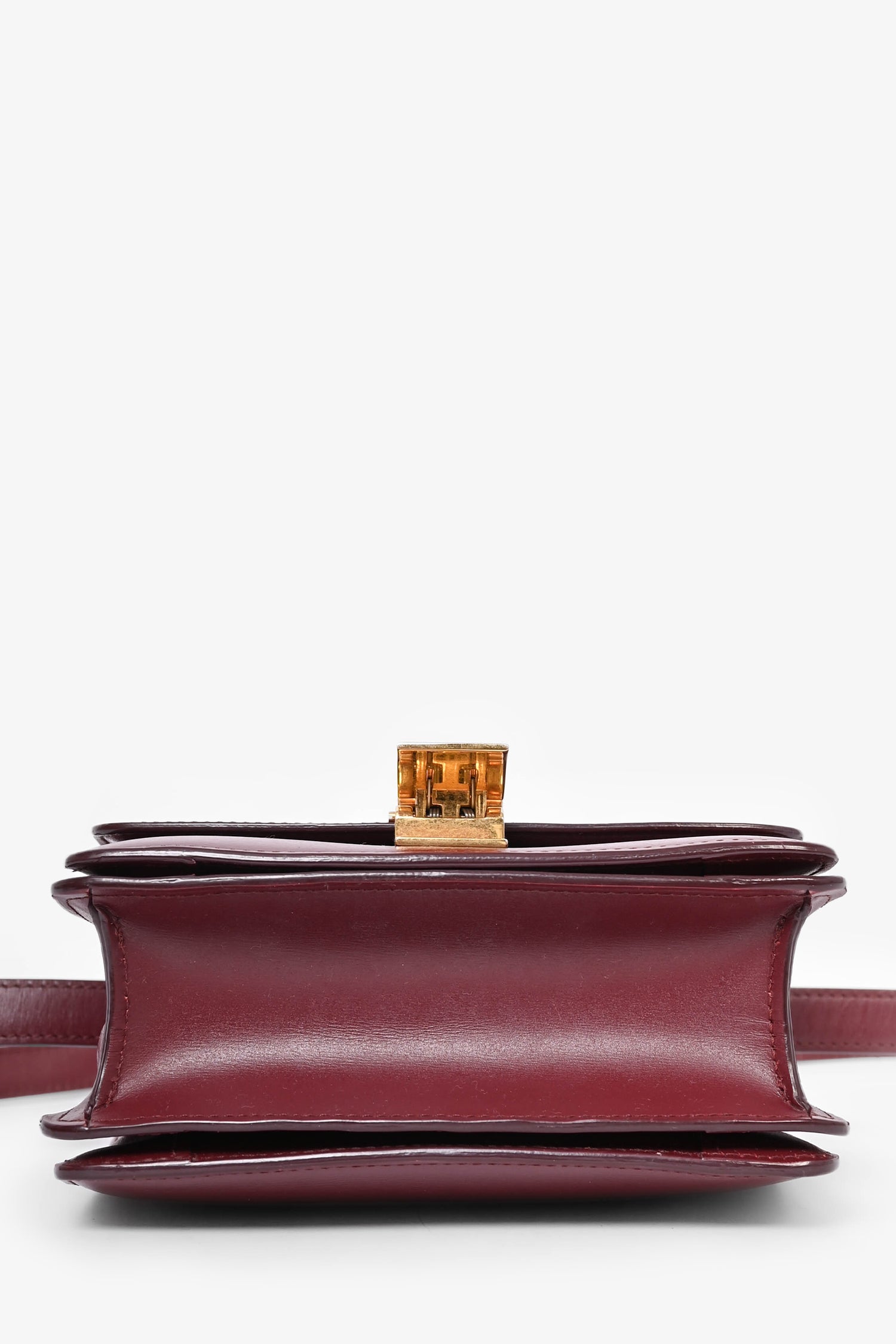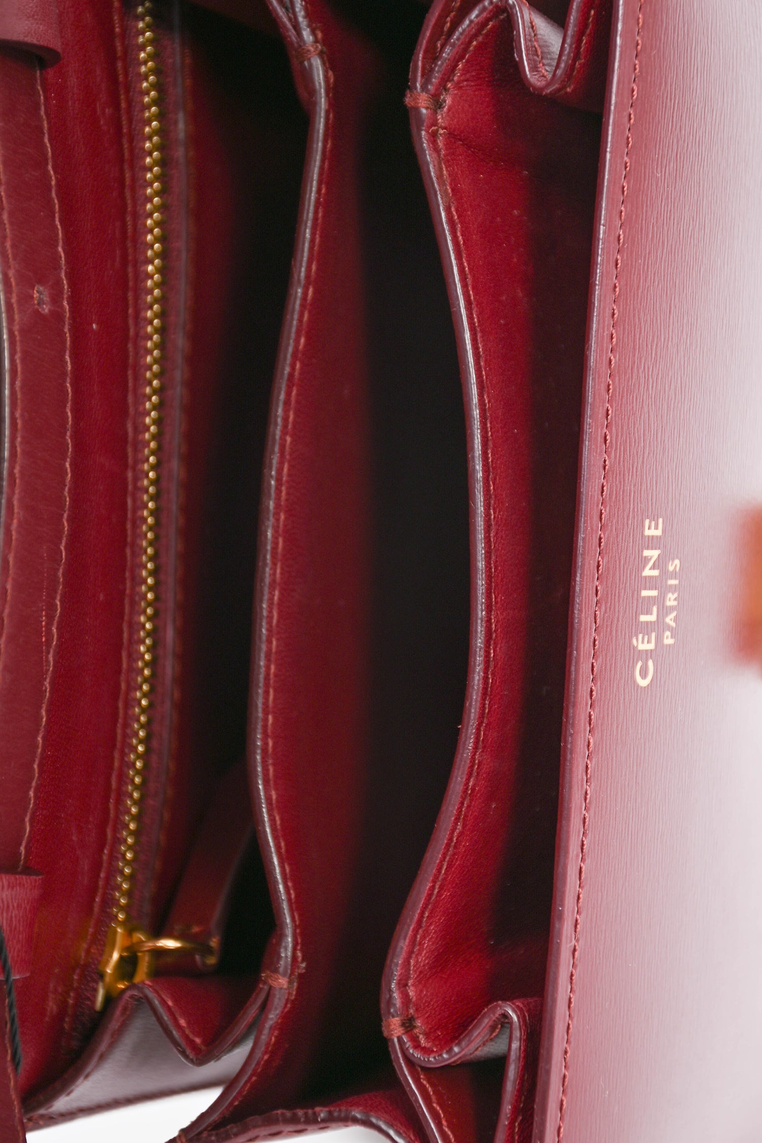 Refresh availabilityCeline 2016 Burgundy Leather Small Box Bag. Leather trimming. Fold-over flap. Gold-tone hardware. Tonal stitching. Zipped interior. Dual interior compartments.