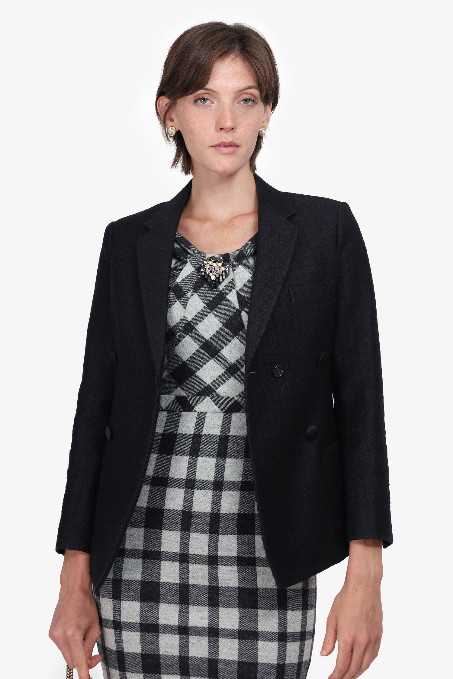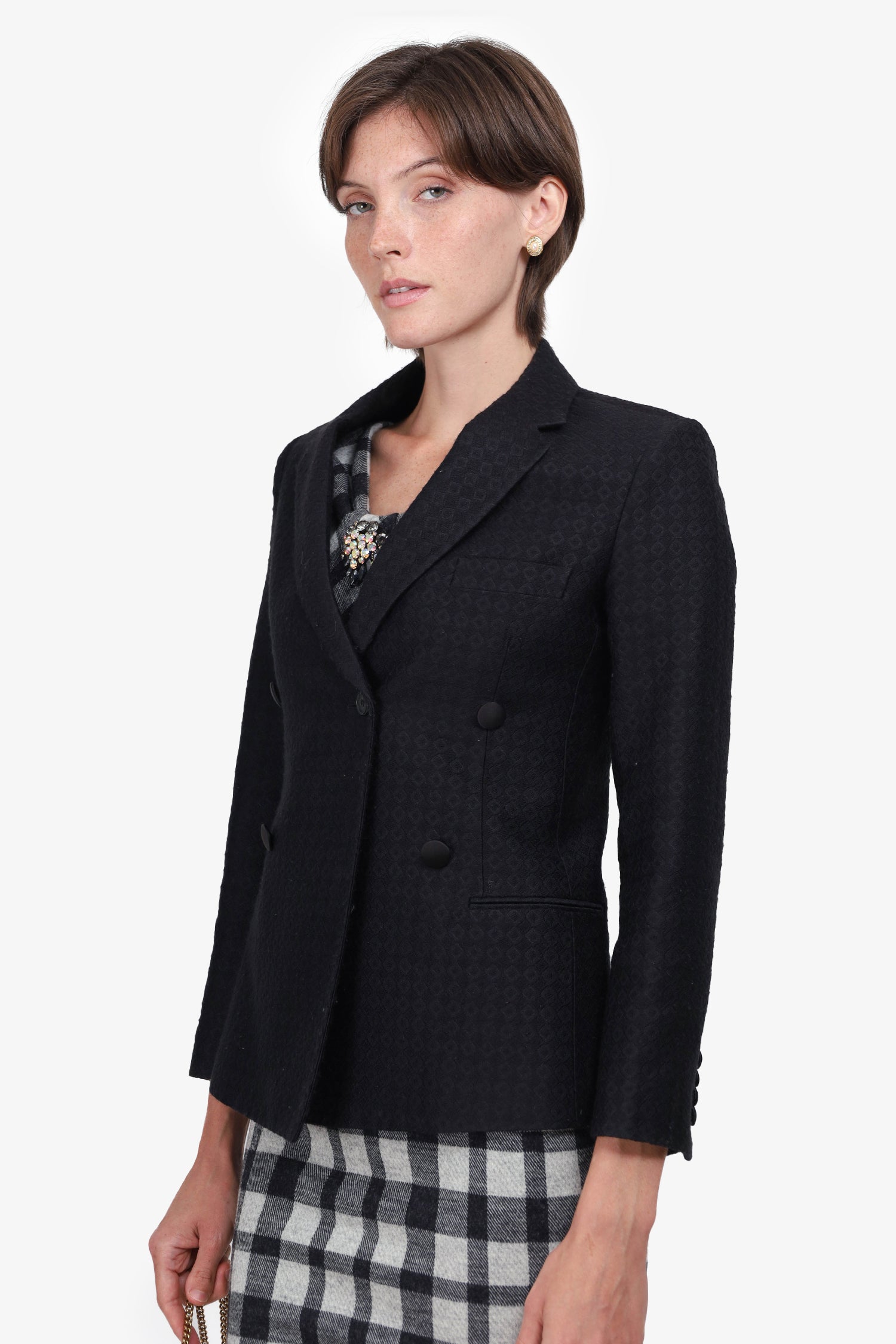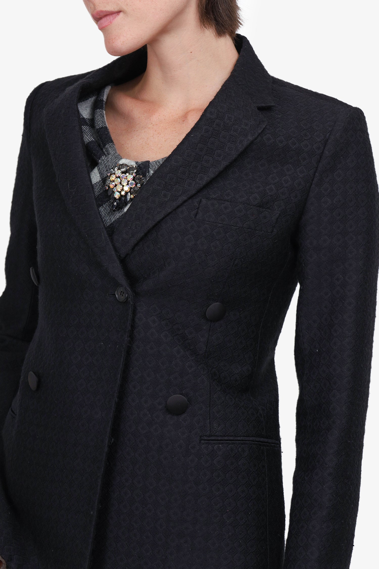 Refresh availabilityCeline Black Diamond Texture Blazer. Collared v-neckline. Single front button-up closure. 3 front slip pockets. 4 front button details. Lined. Tonal stitching.