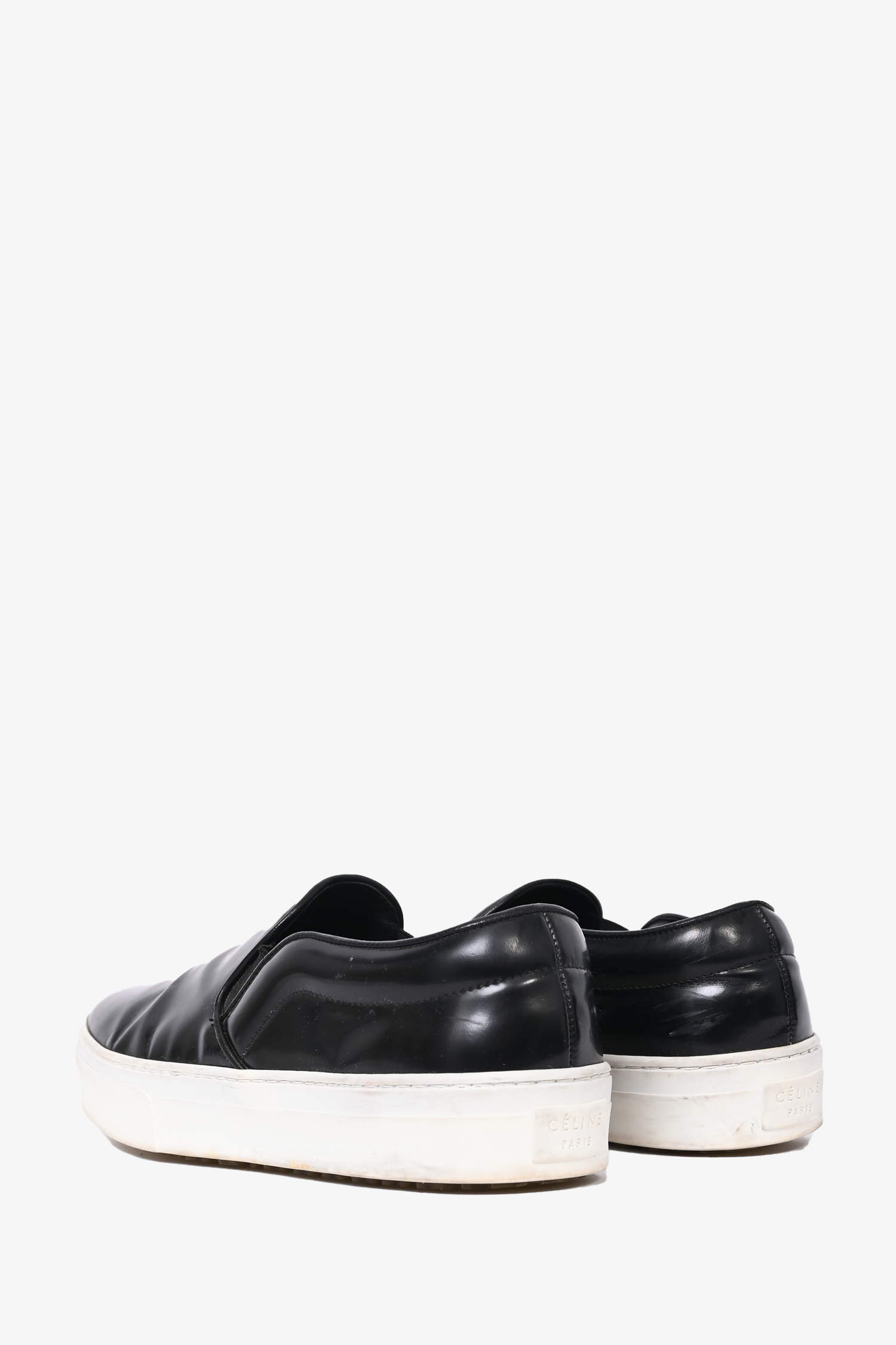 Refresh availabilityCeline Black Leather Slip-On Sneakers. Round toe. Tonal stitching.