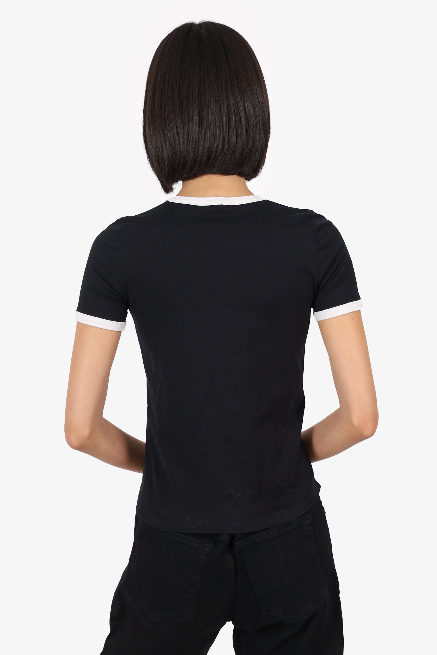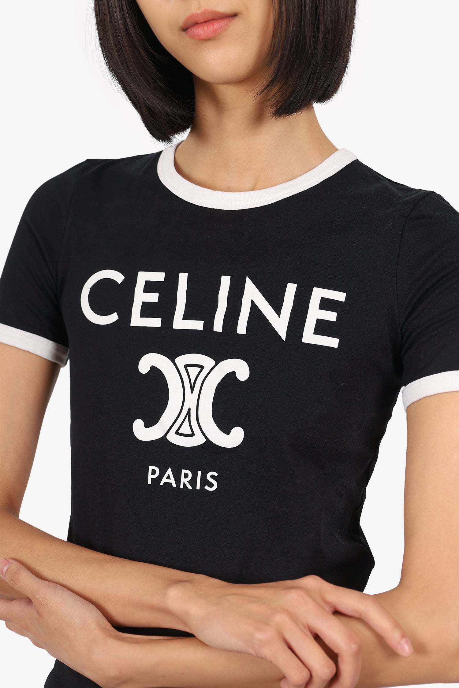 Refresh availabilityCeline Black/White Celine Paris T-Shirt. Pull-on. Round-neckline. Front printed logo graphic. Tonal stitching.