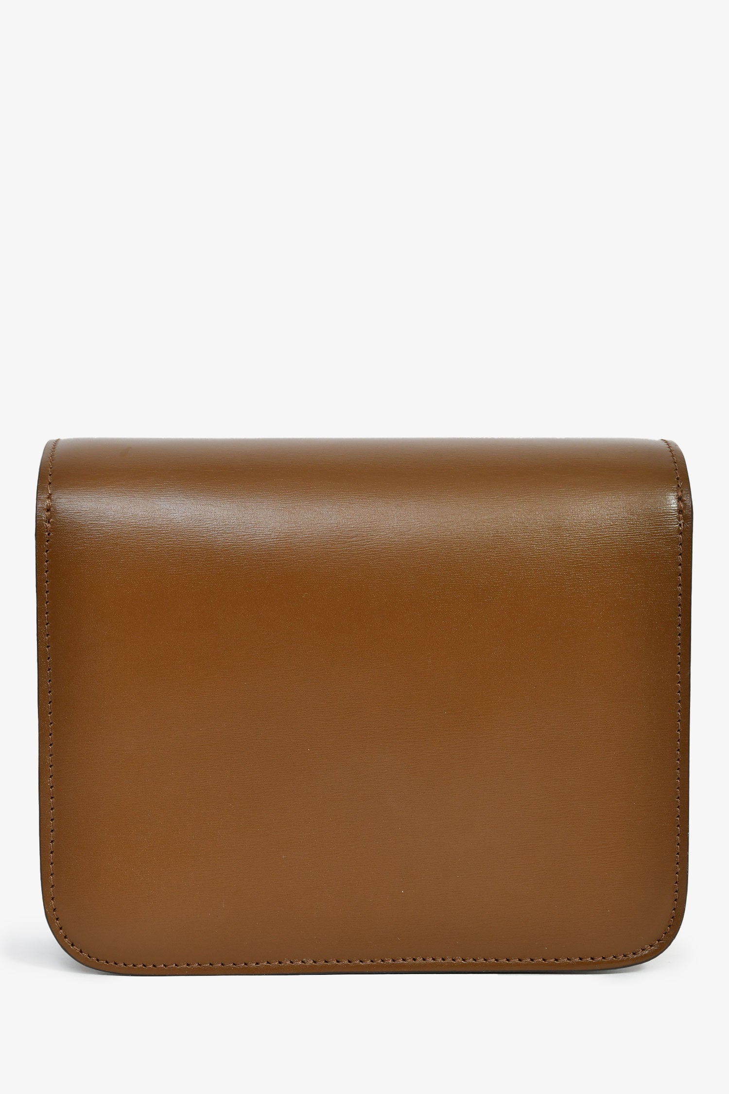 Refresh availabilityCeline Brown Leather Small Box Bag. Front fold-over flap with a flip-lock closure. Adjustable crossbody strap. 2 interior compartments. Gold-tone hardware. Tonal stitching.