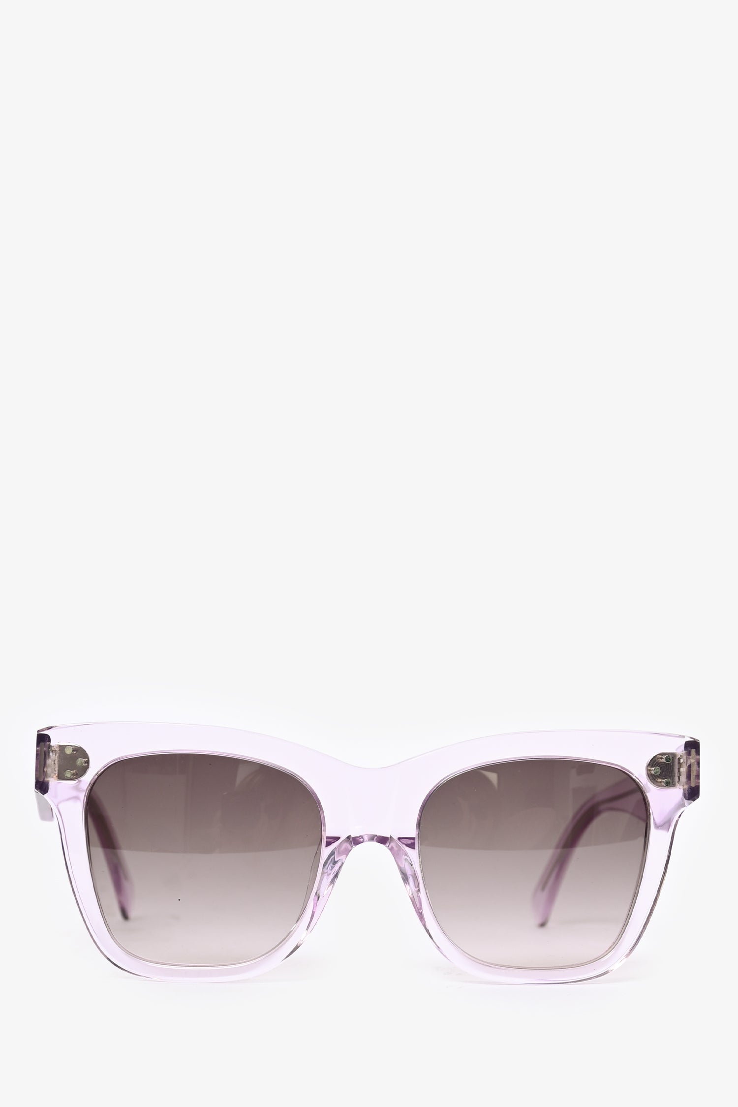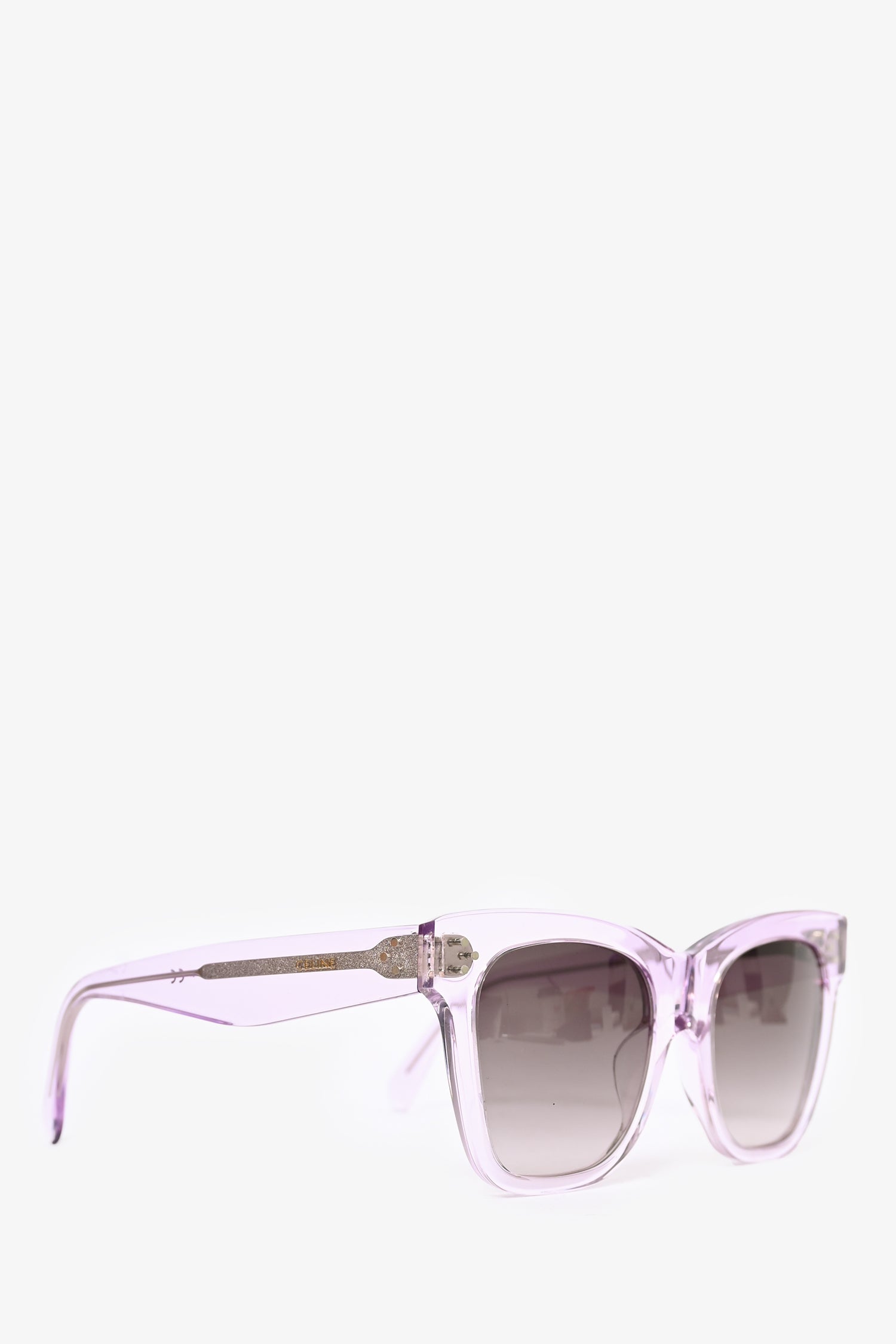 Refresh availabilityCeline Clear Purple Acetate Square Sunglasses. Built-in nose pads. Gradient lens.