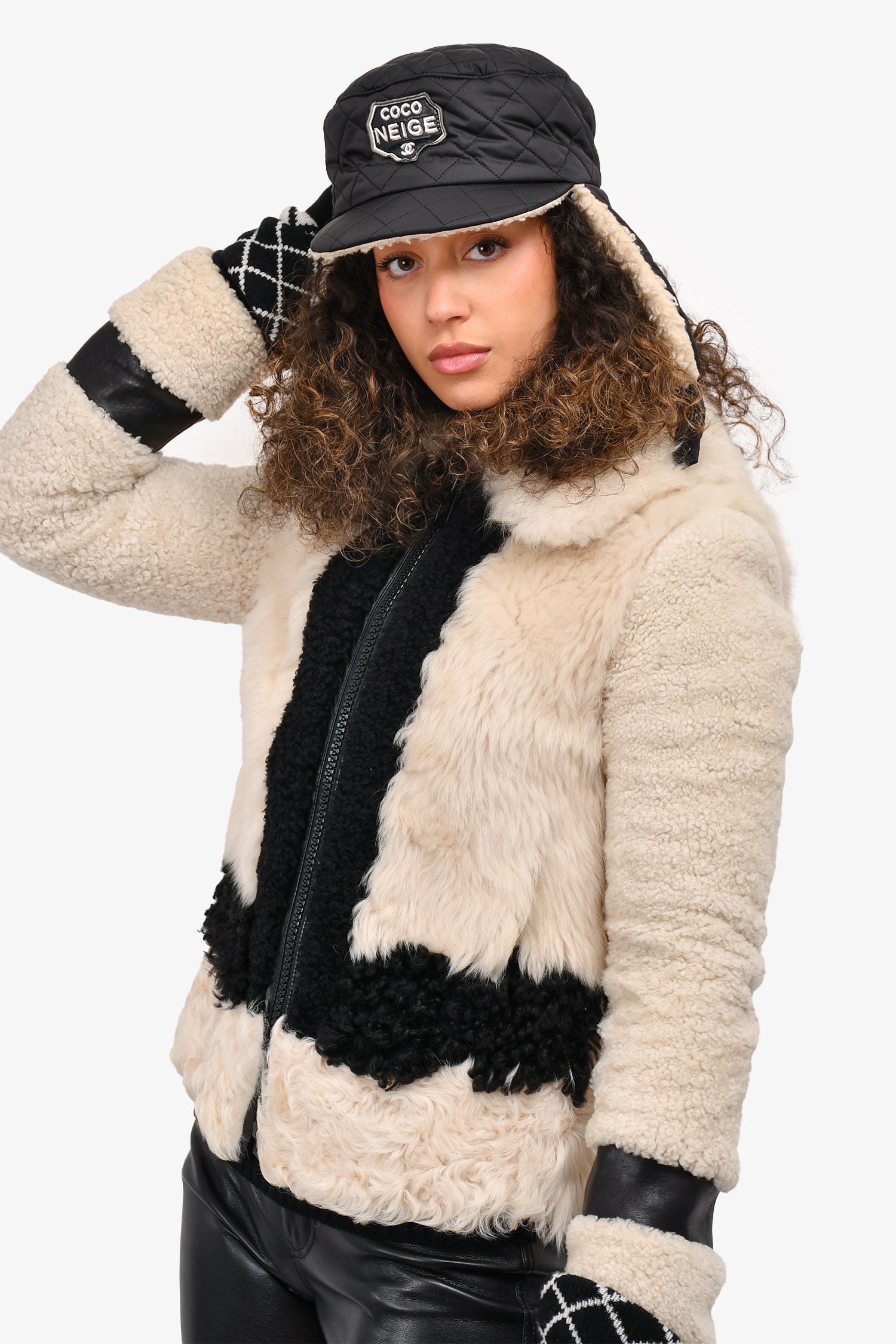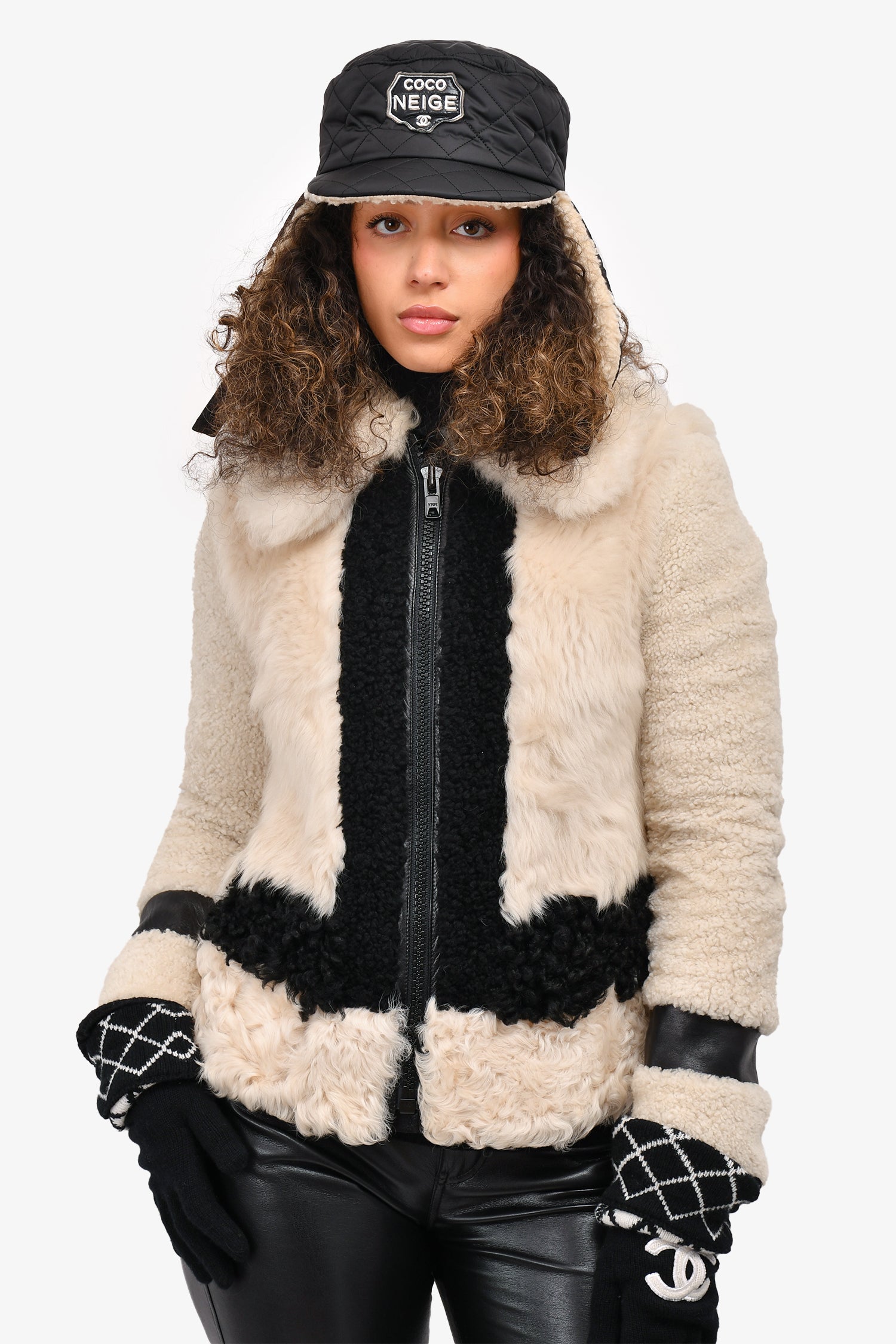 Refresh availabilityCeline Cream/Black Shearling Collared Zip-Up Jacket. Front zip up closure. Front slip pockets. Lined. Tonal stitching.