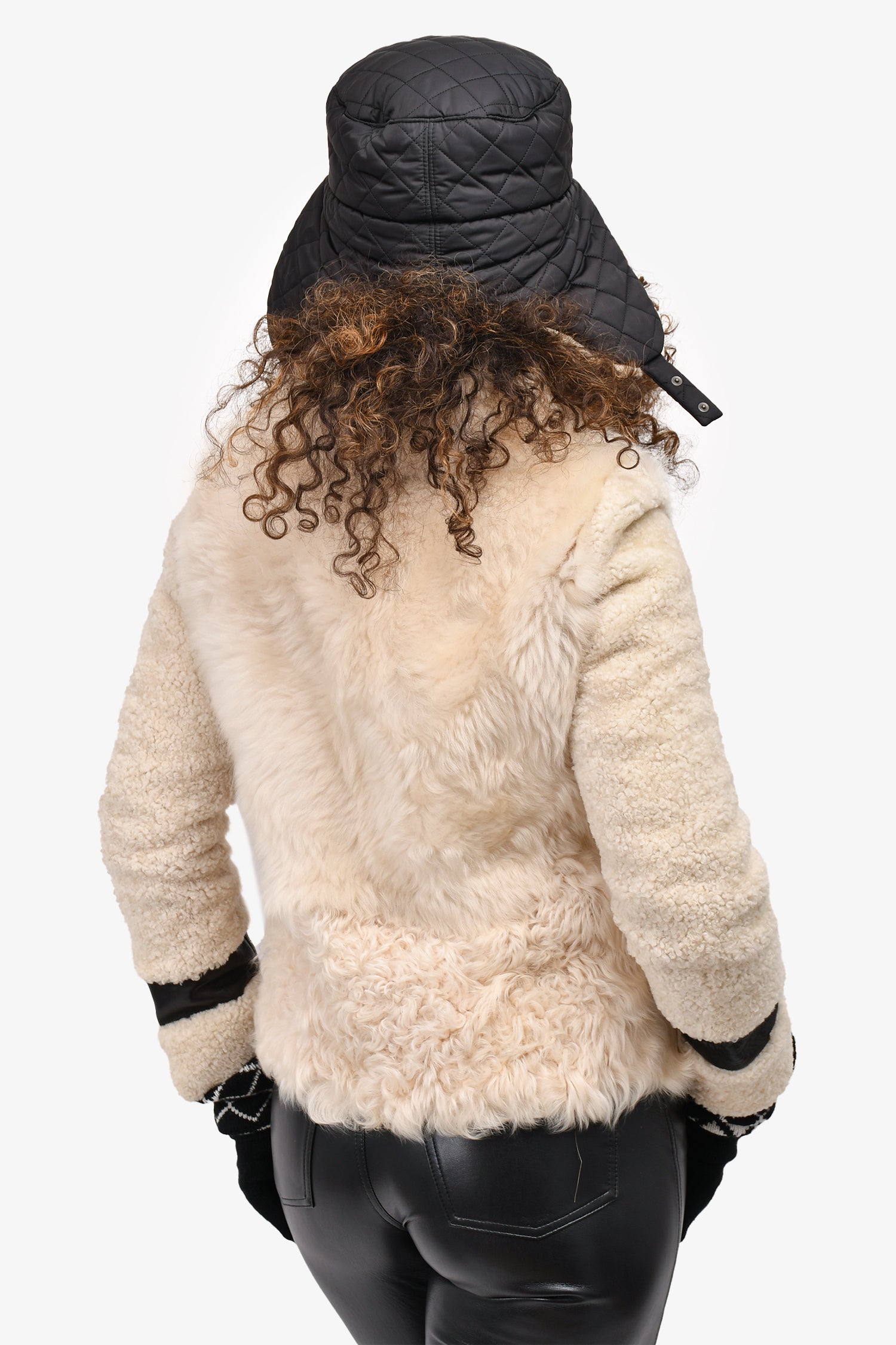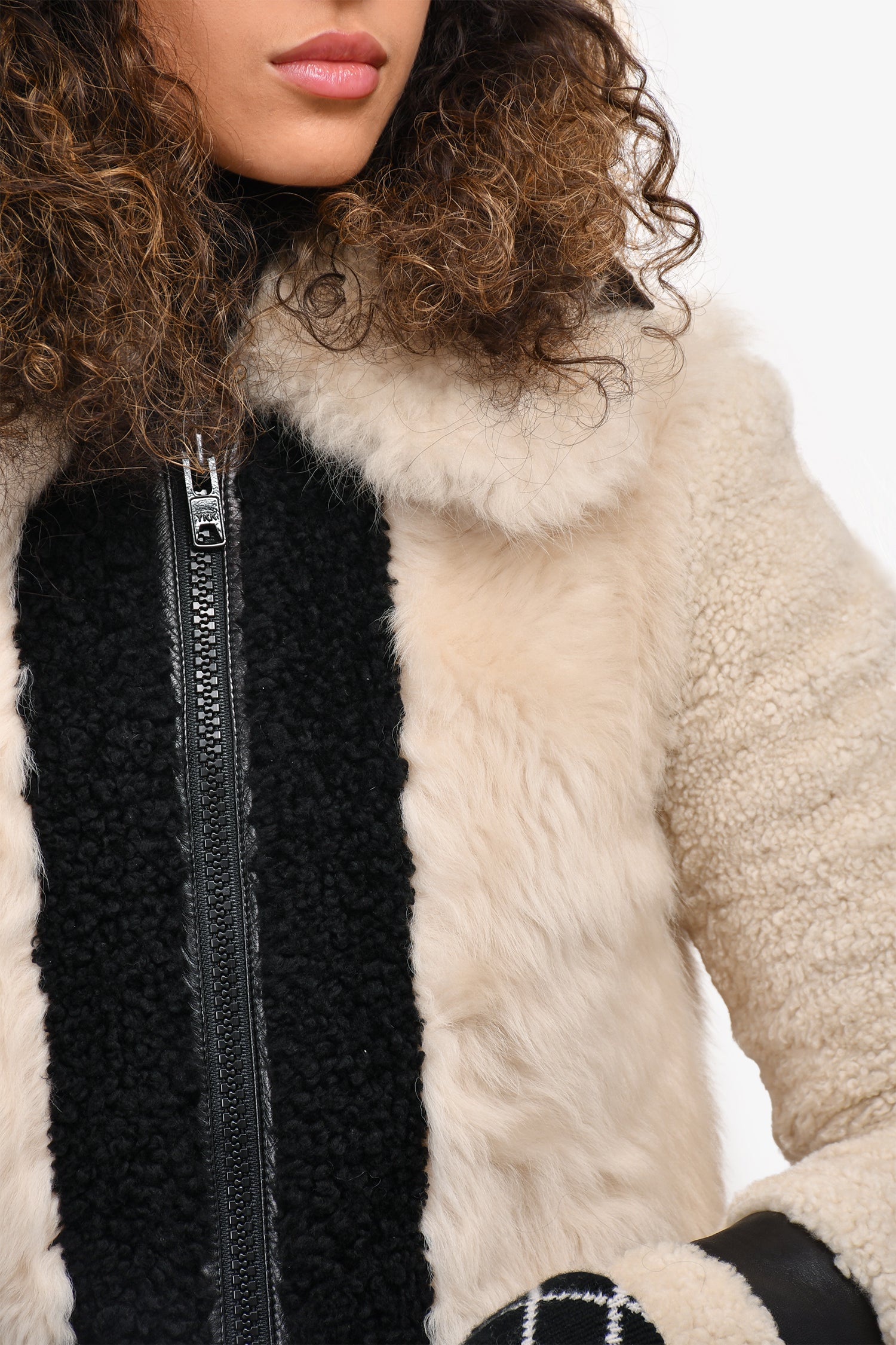 Celine Cream/Black Shearling Collared Zip-Up Jacket Size 38 (As Is)