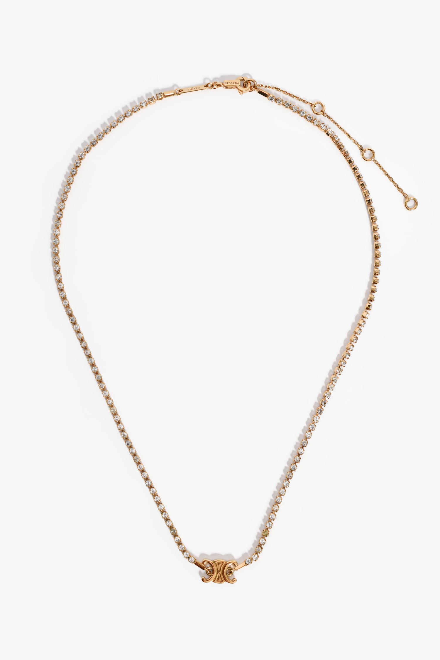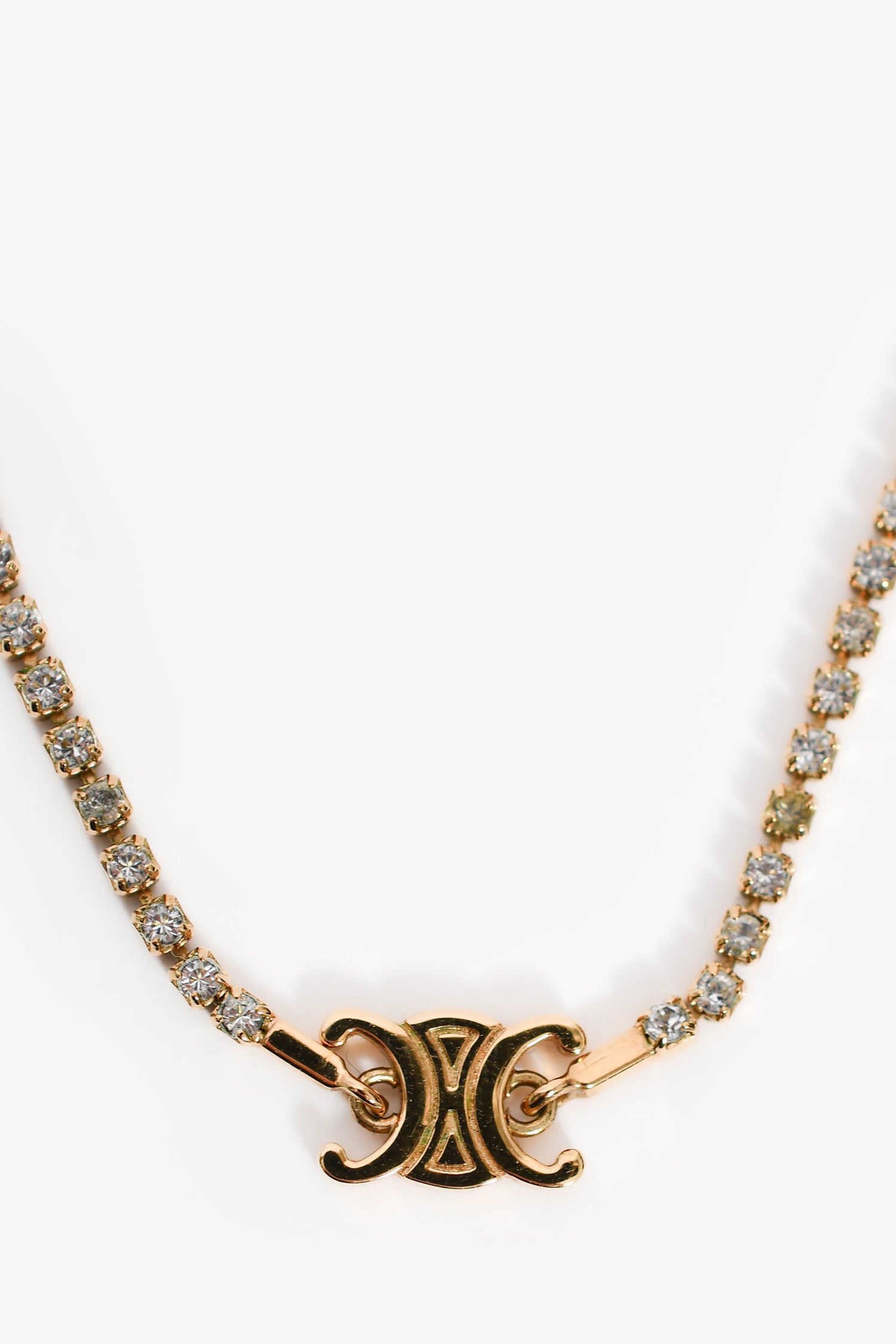Refresh availabilityCeline Gold Toned Triomphe Logo Tennis Necklace. Adjustable length with spring ring closure.