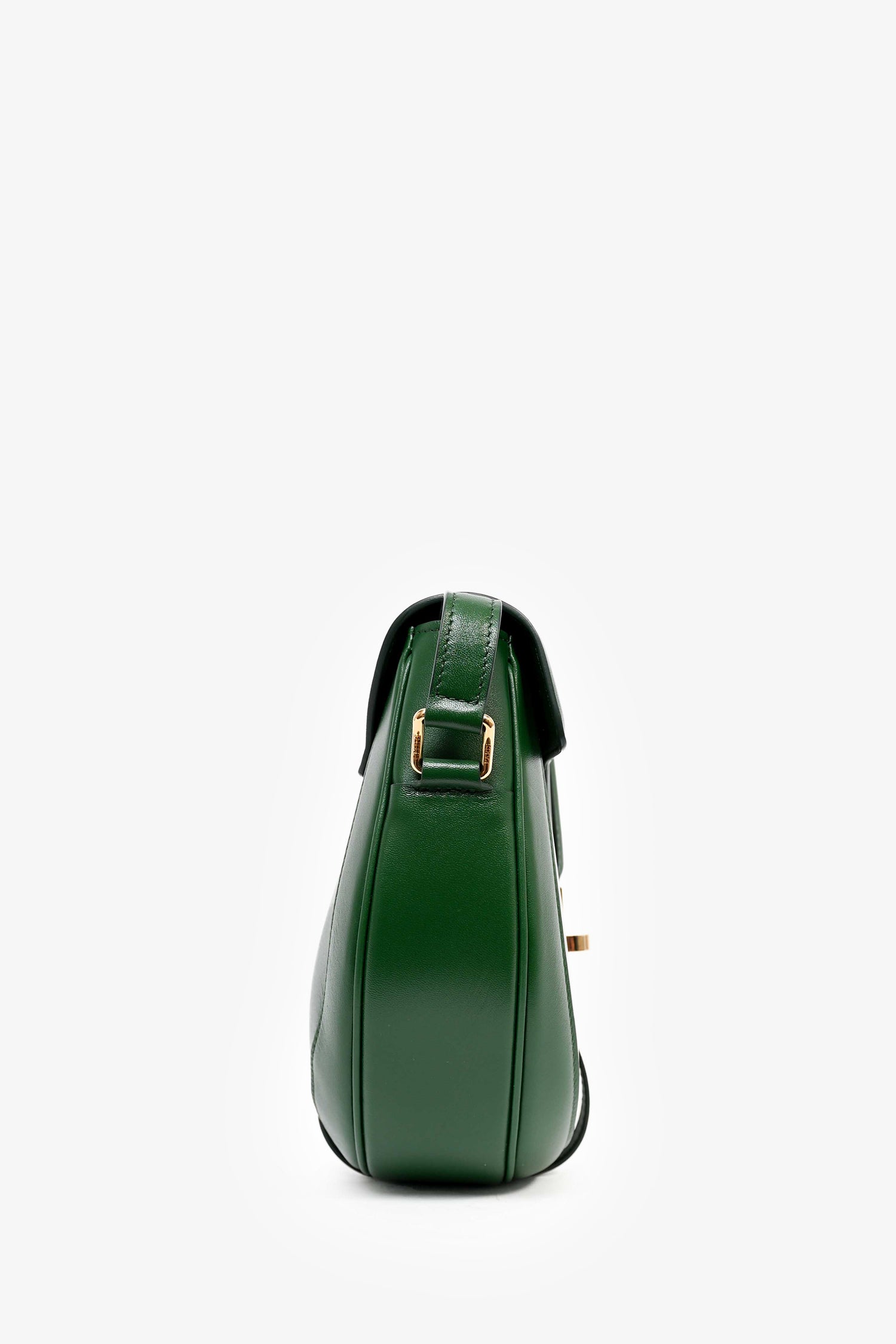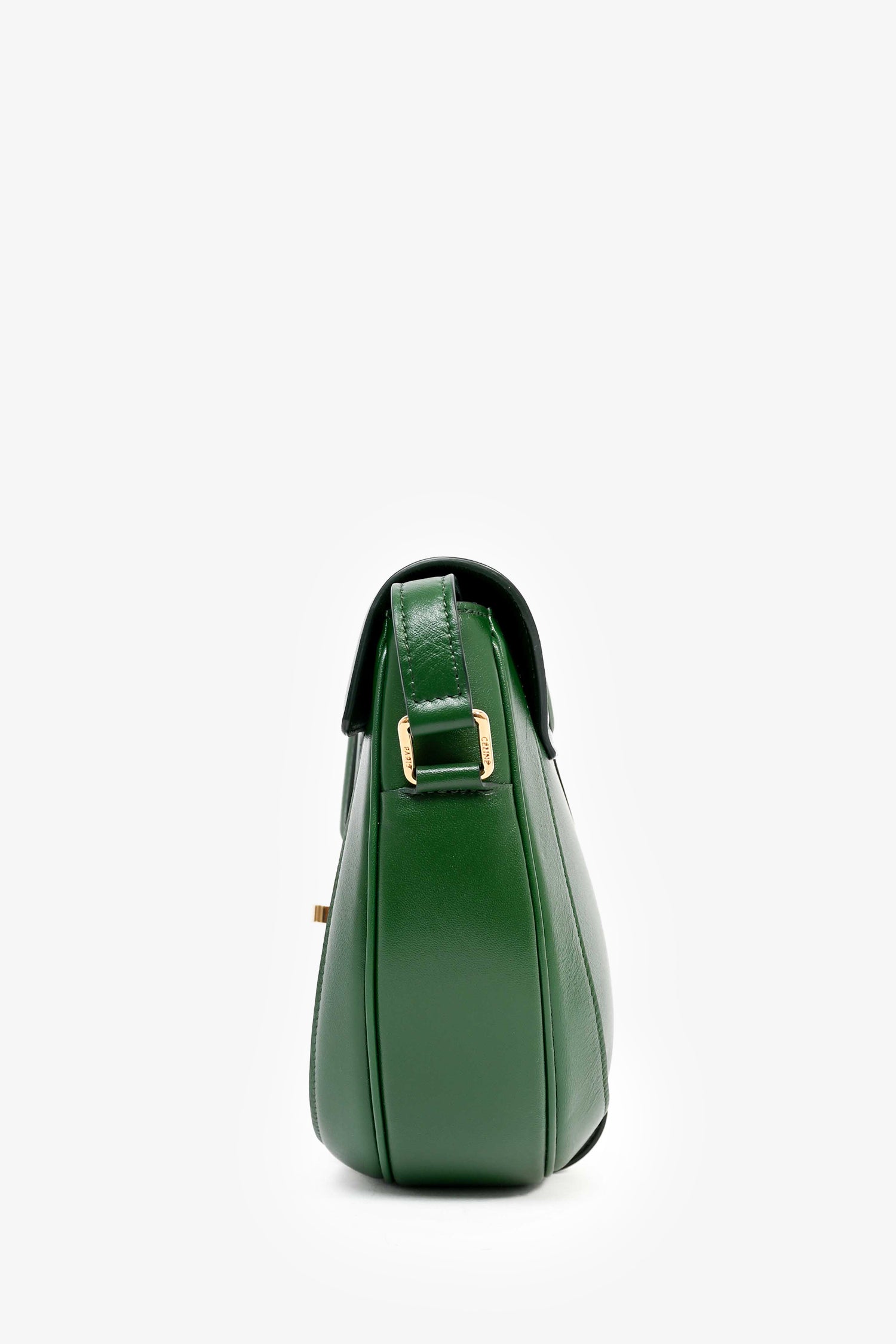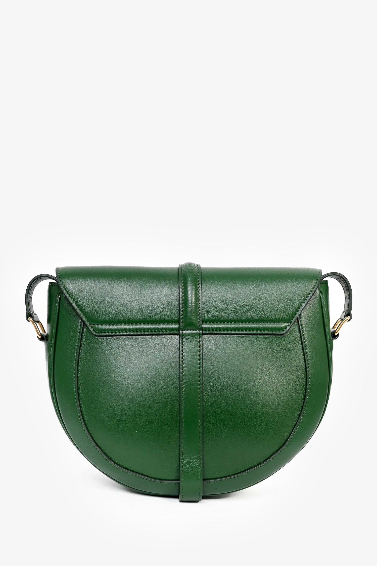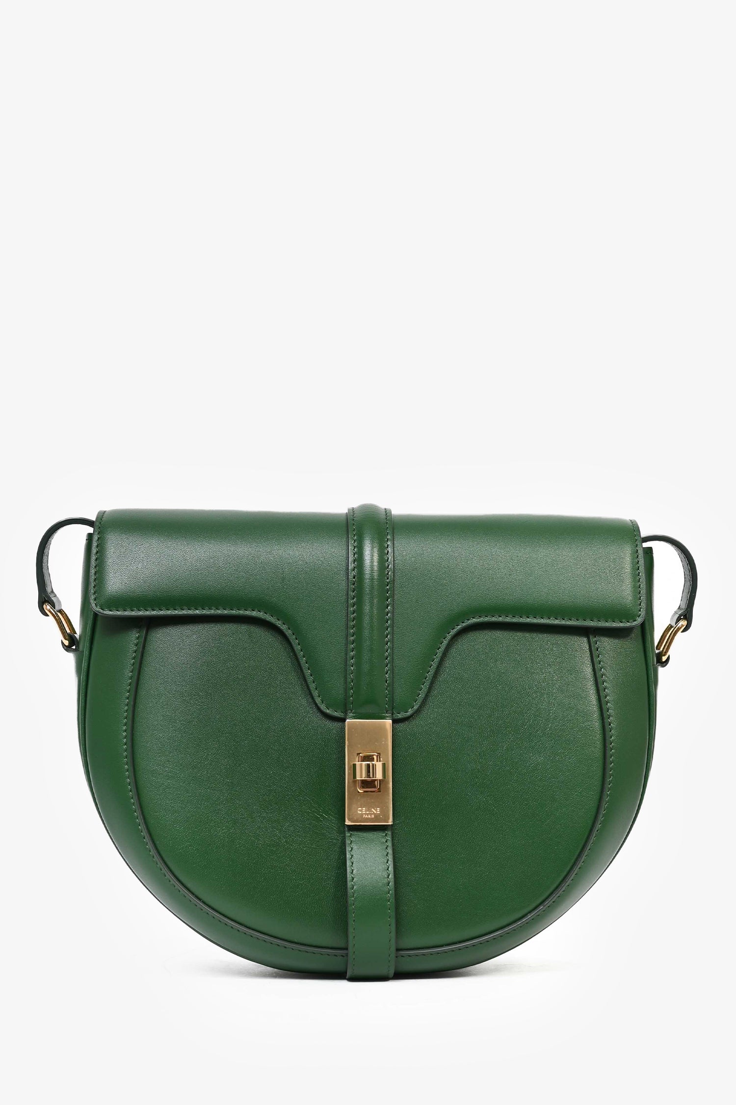 Refresh availabilityCeline Green Leather Besace 16 Crossbody Bag. Front fold-over flap with turn-lock closure. Front slip pocket. Interior zip pocket. Adjustable strap. Gold-tone hardware.