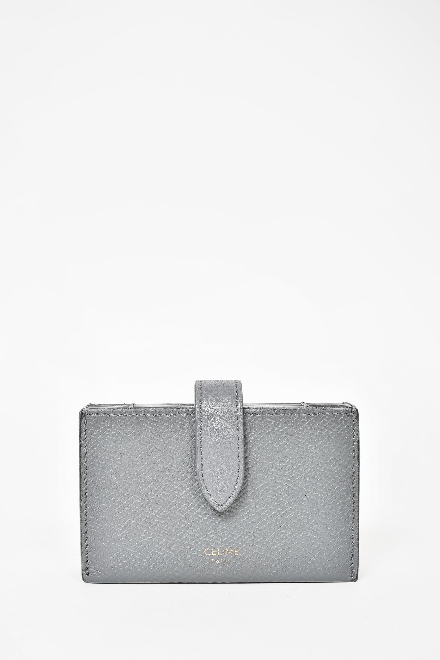 Refresh availabilityCeline Grey Leather Multi Card Holder. Front snap button closure. Gold-tone hardware. 5 card slots. Tonal stitching.