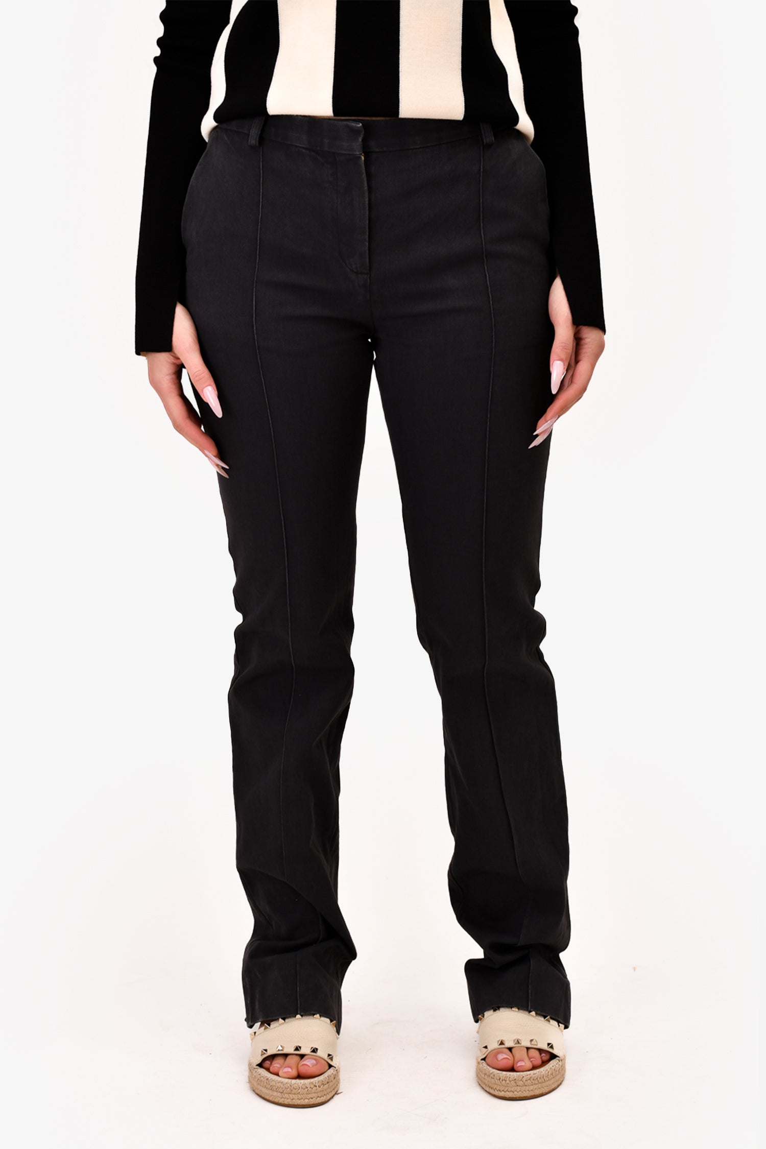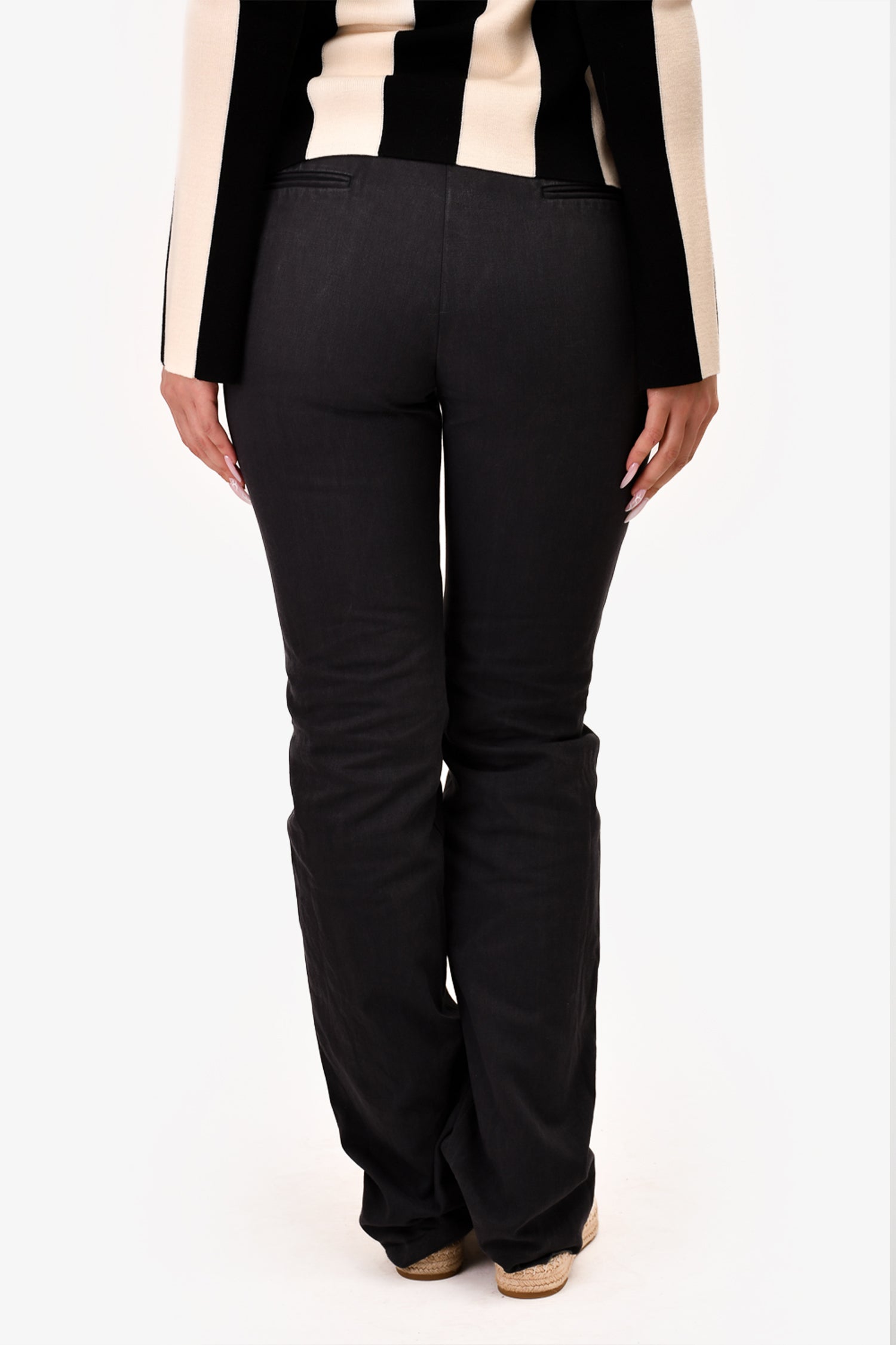 Celine Grey Mid Rise Trousers. Front zip and hook closure. Front and rear pockets. Waist belt loops. Tonal stitching.
