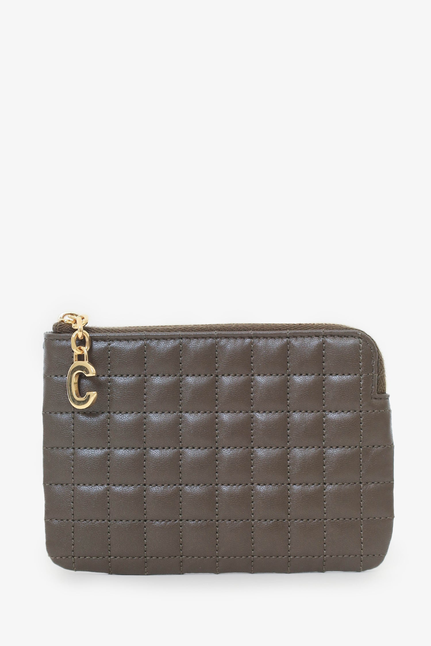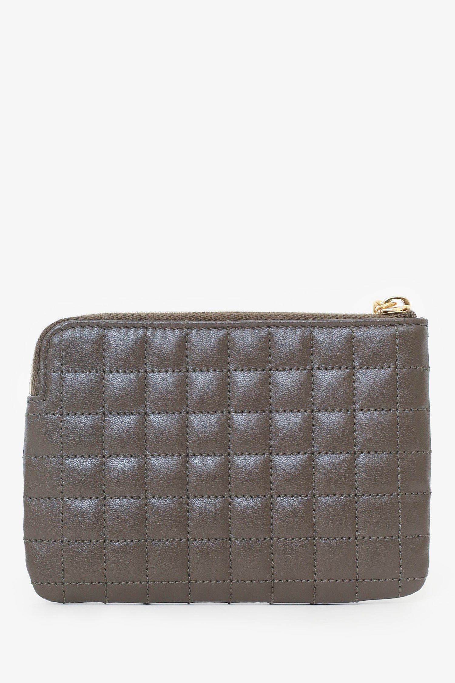 Refresh availabilityCeline Khaki Green Quilted C-Charm Compact Zip Wallet. Top zip closure. 2 interior wall card slip pockets. Gold-tone hardware. Tonal stitching.