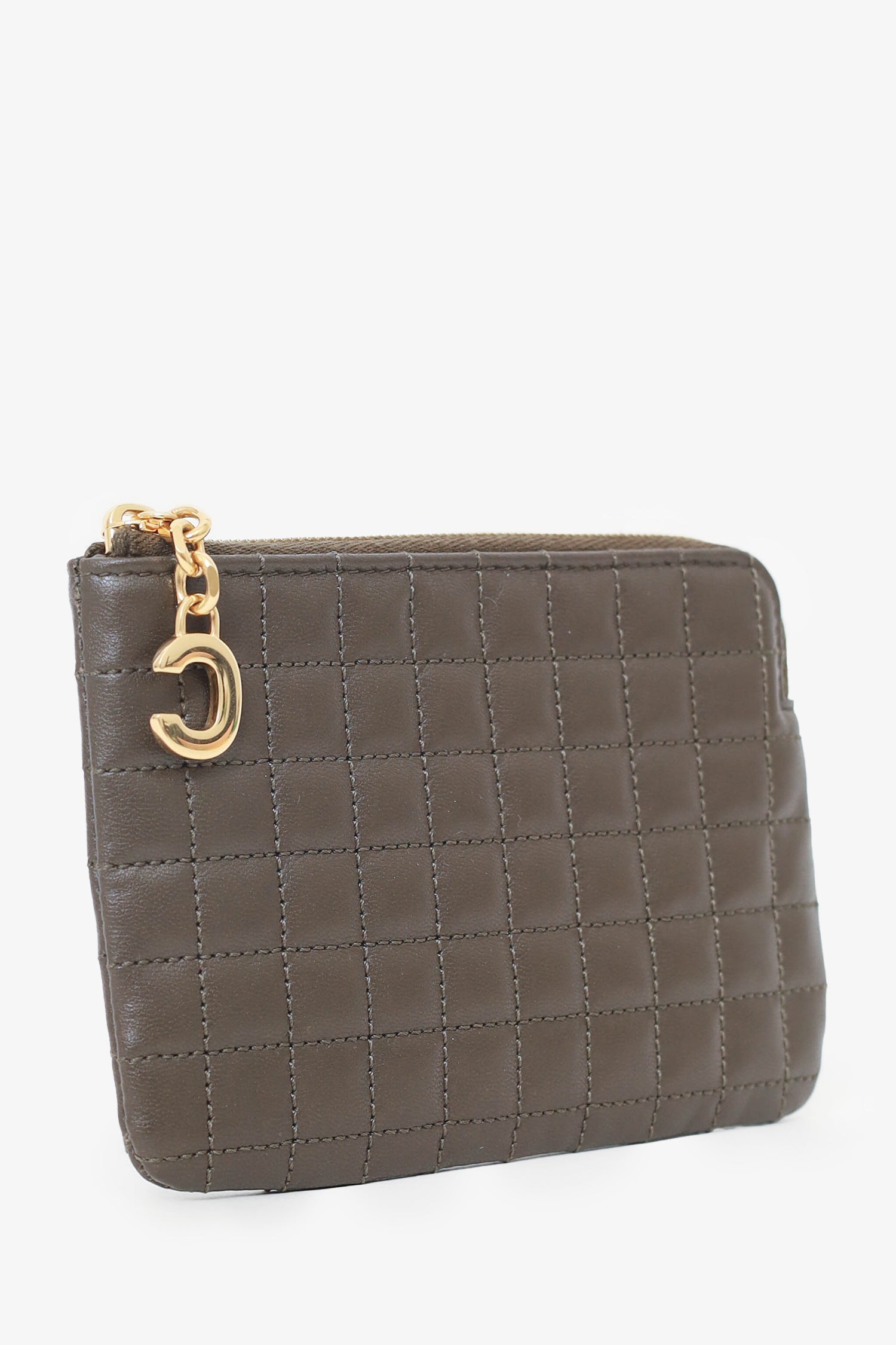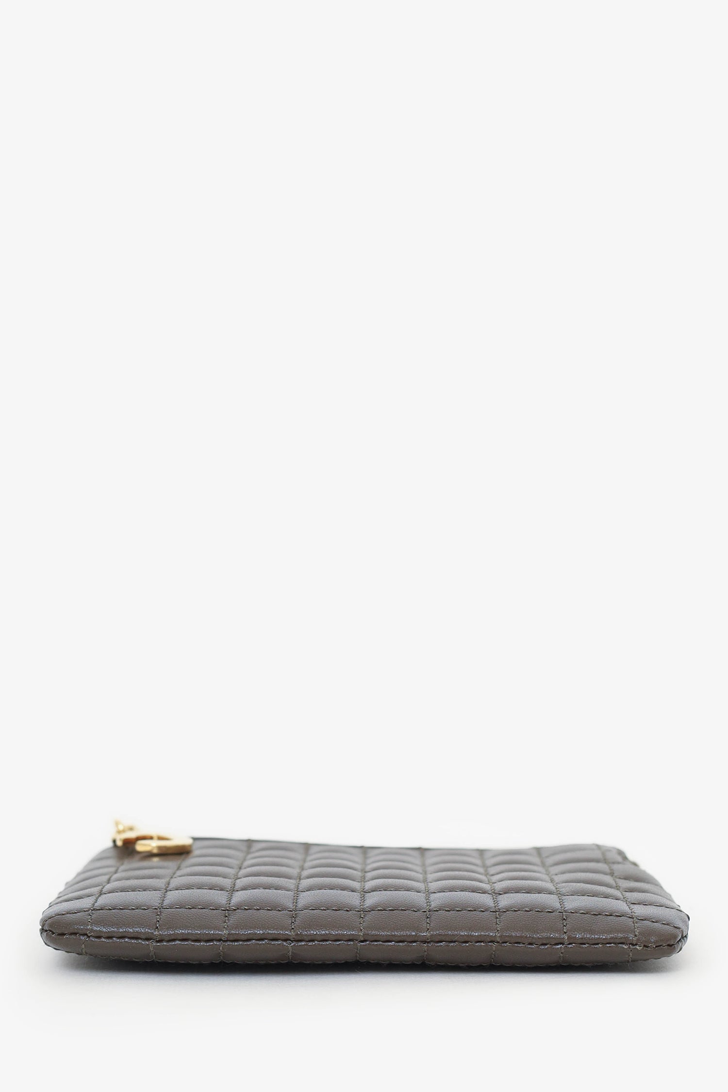 Celine Khaki Green Quilted C-Charm Compact Zip Wallet