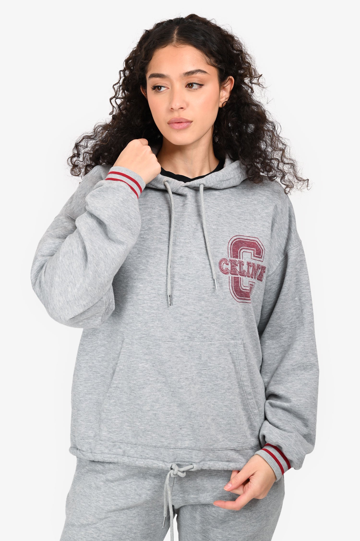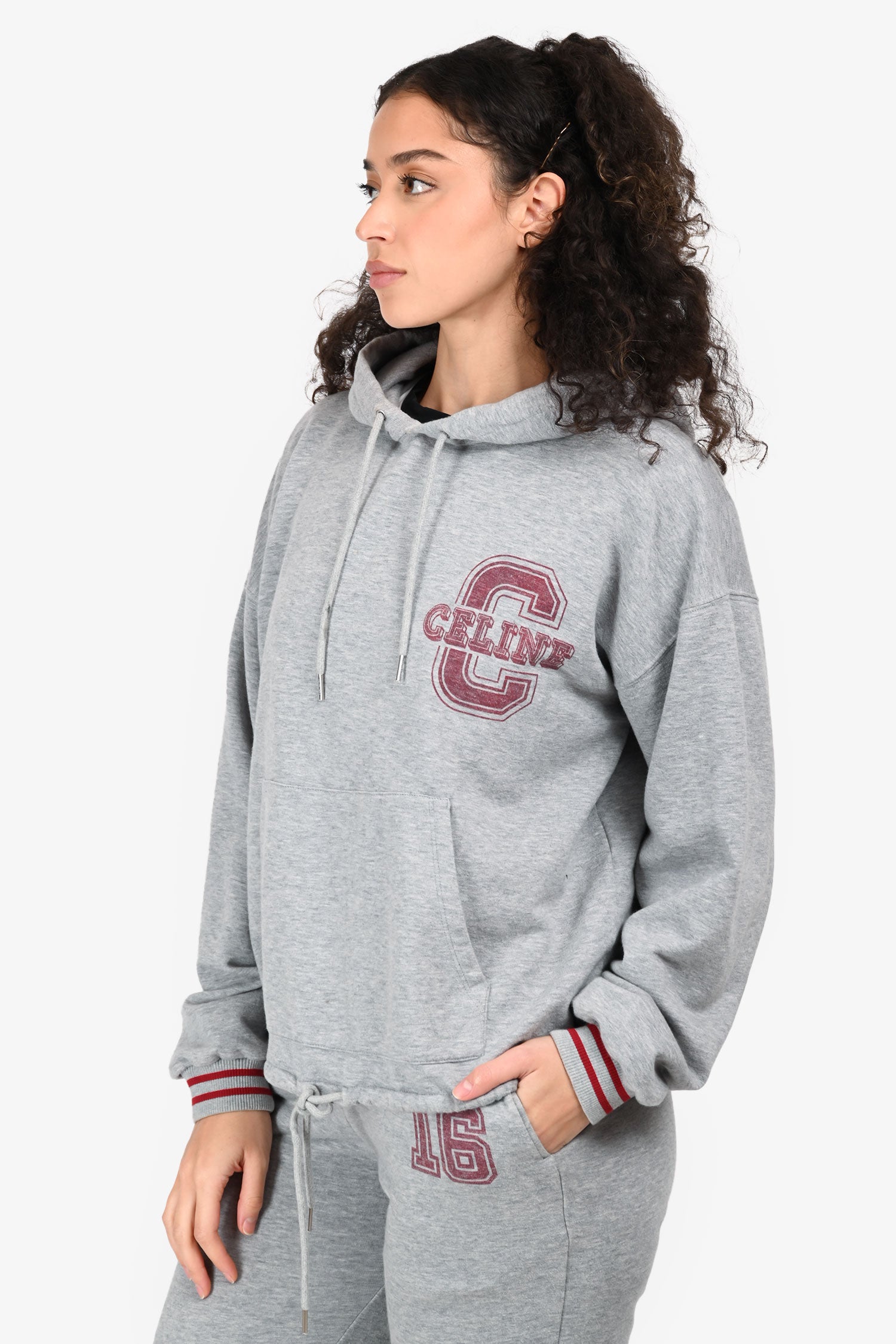 Celine Light Grey Cotton/Cashmere 'Logo' Hoodie Size S