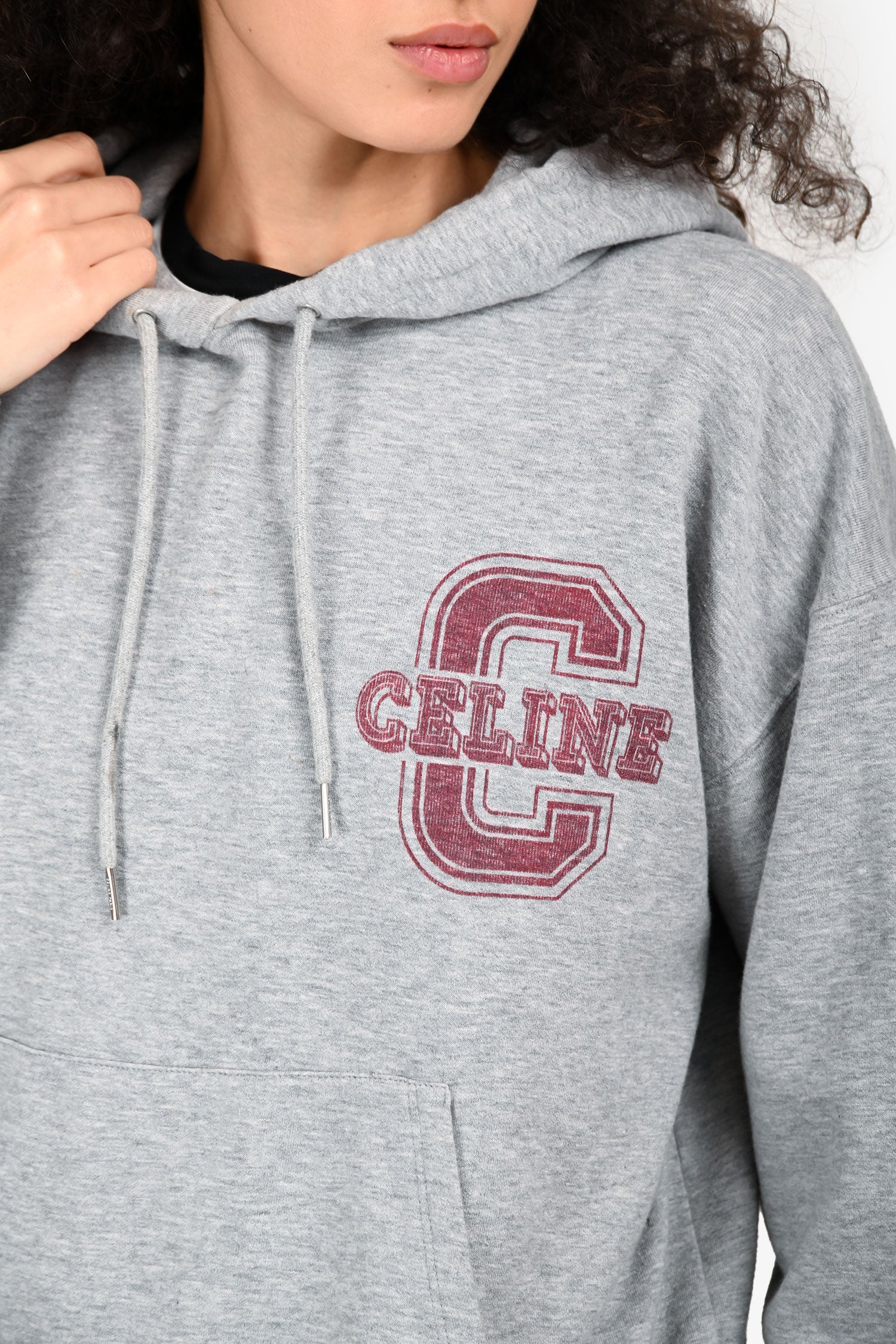 Refresh availabilityCeline Light Grey Cotton/Cashmere ‘Logo’ Hoodie. Pull-on. Hooded neckline with drawstrings. Long sleeves with ribbed cuffs. Front kangaroo pocket. Drawstring hem. Silver-tone hardware. Tonal stitching.