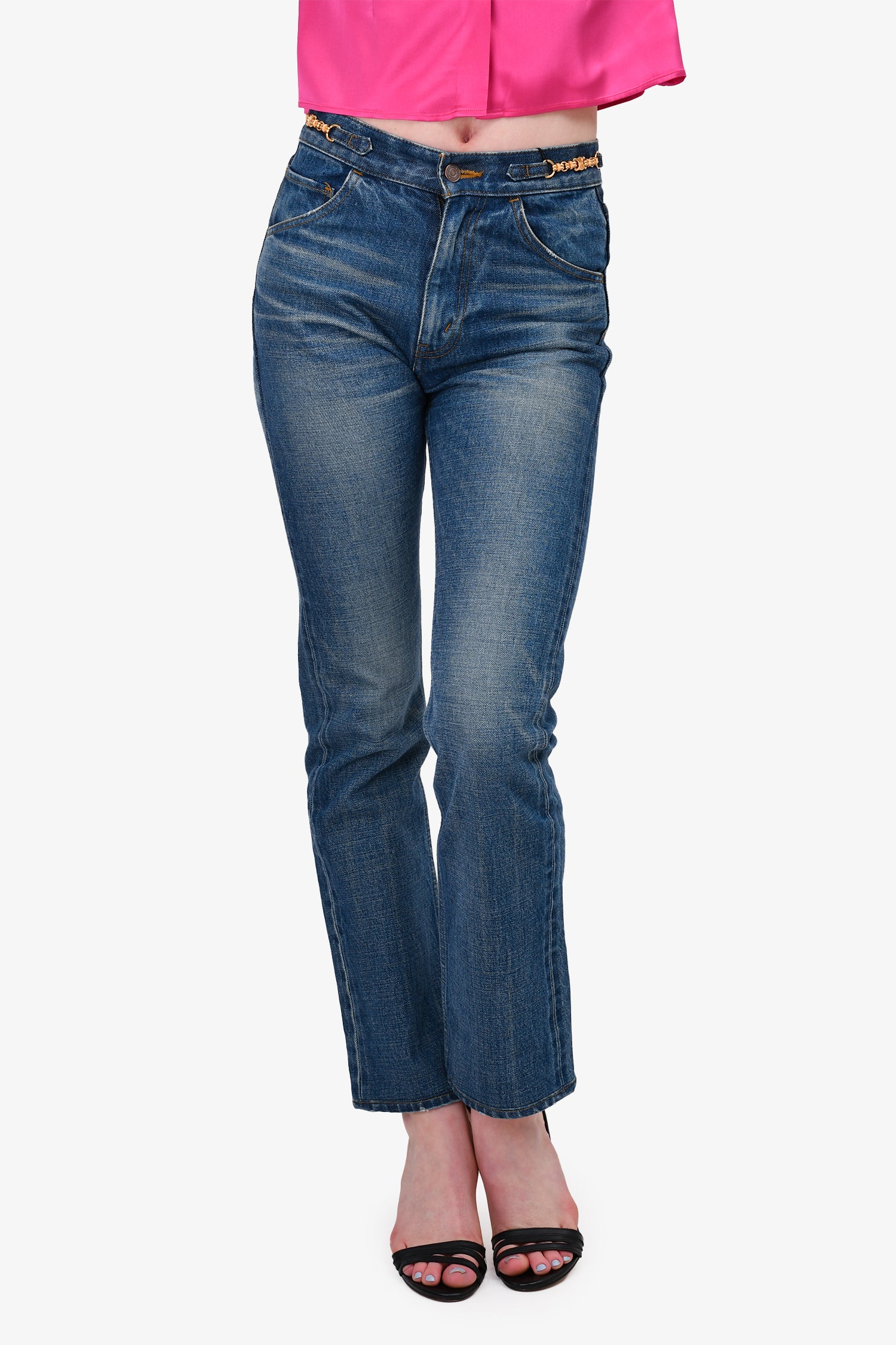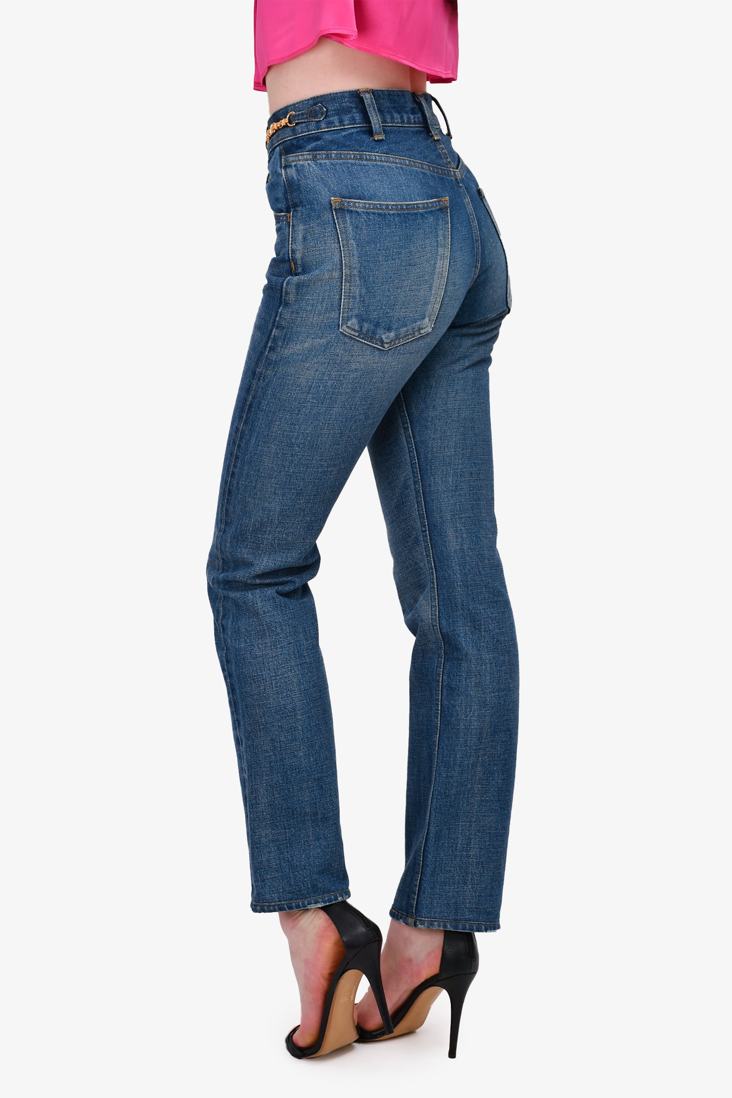 Celine Medium Wash Triomphe Belt Detail Jeans Size 27