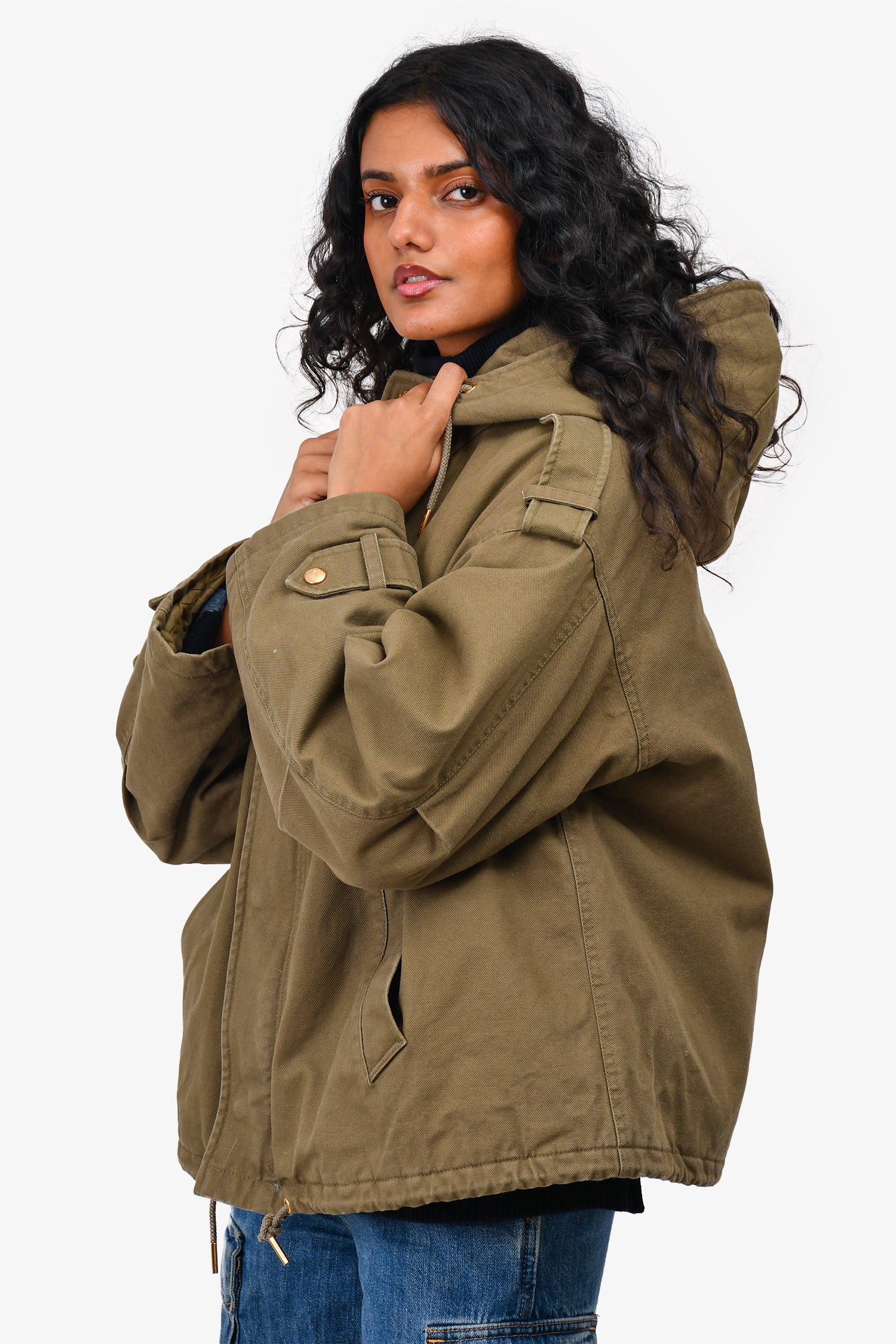 Refresh availabilityCeline Military Green Hooded Jacket. Zipped fastening with snap closures. Side pockets. Drawstrings by the hood and hemming. Quilted interior. Tonal stitching.