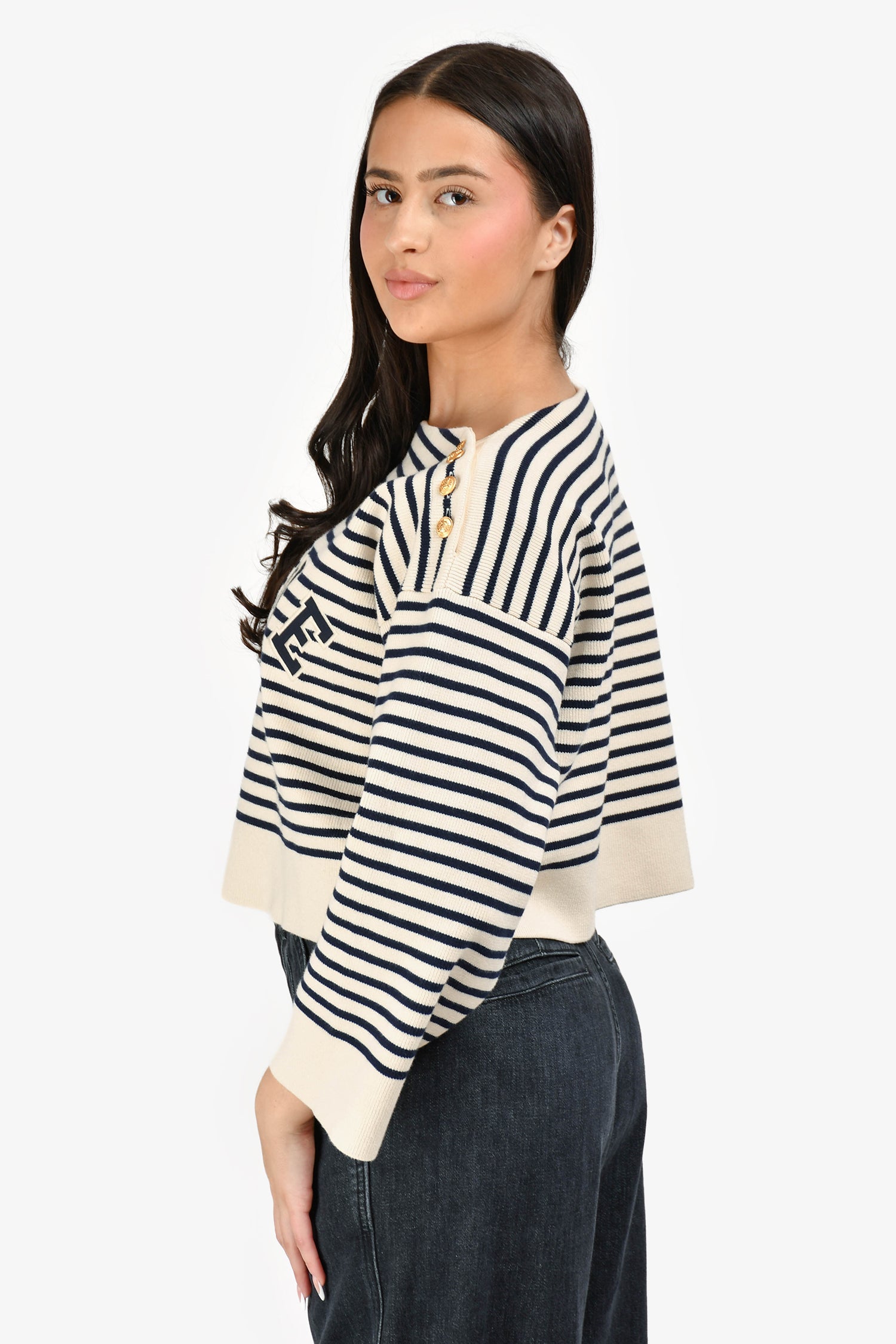 Celine Navy/Cream Striped Logo Boatneck Sweater Size XS