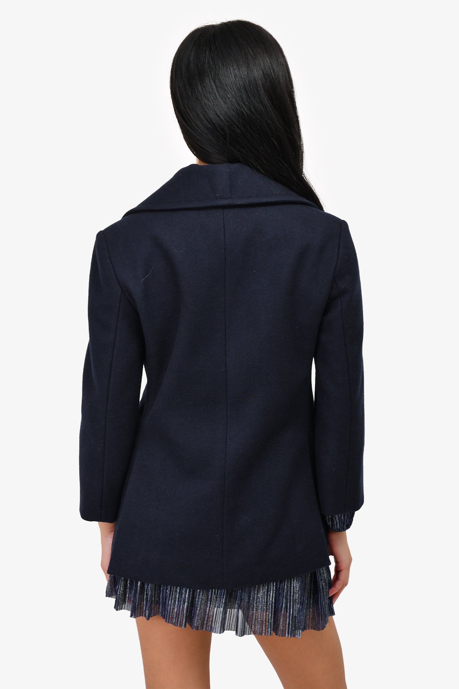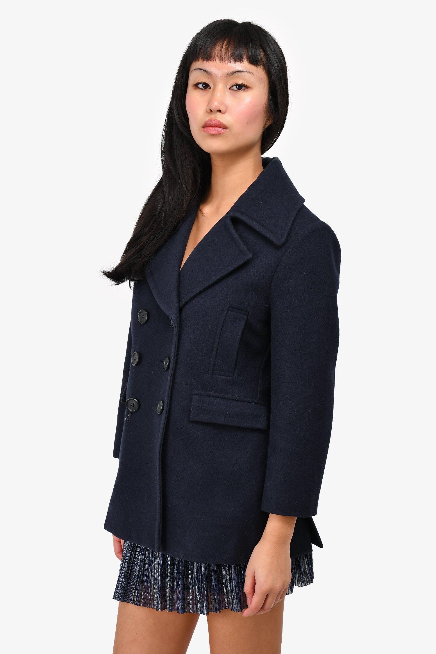 Refresh availabilityCeline Navy Wool Button Detail Double Breasted Coat. Front button-up closure. Black-tone hardware. Four front pockets. Tonal stitching.