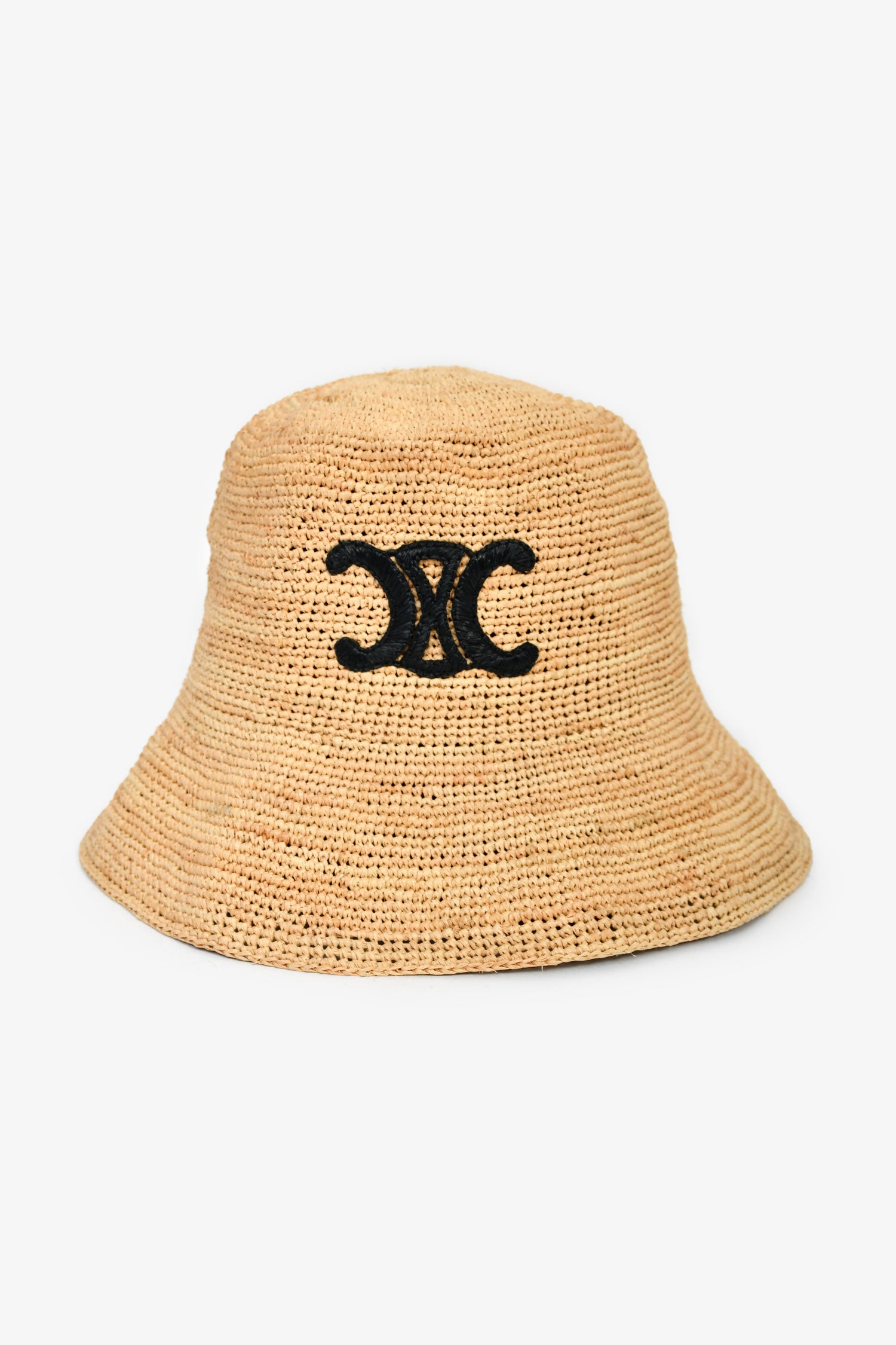 Refresh availabilityCeline Neutral Logo Crest Raffia Bucket Hat. Tonal stitching.