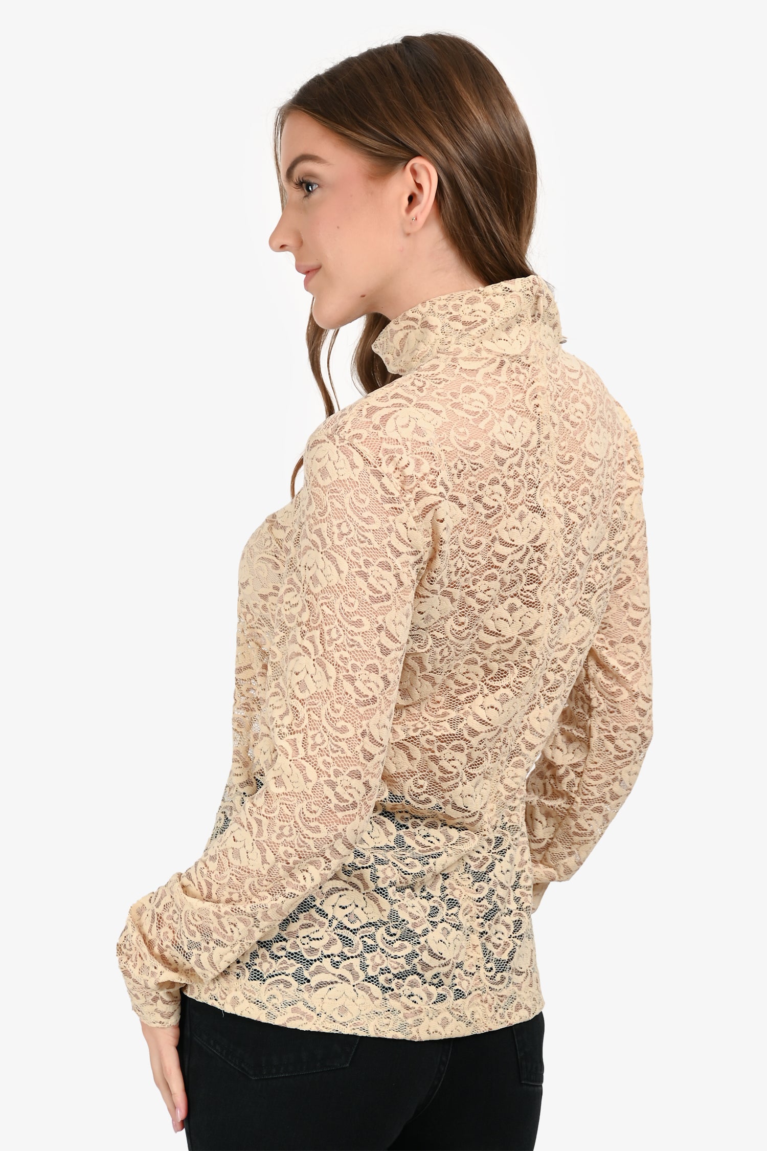 Refresh availabilityCeline by Phoebe Philo Beige Lace High Neck Long Sleeve Top. Pull-on. Hidden rear zipper. Tonal stitching.