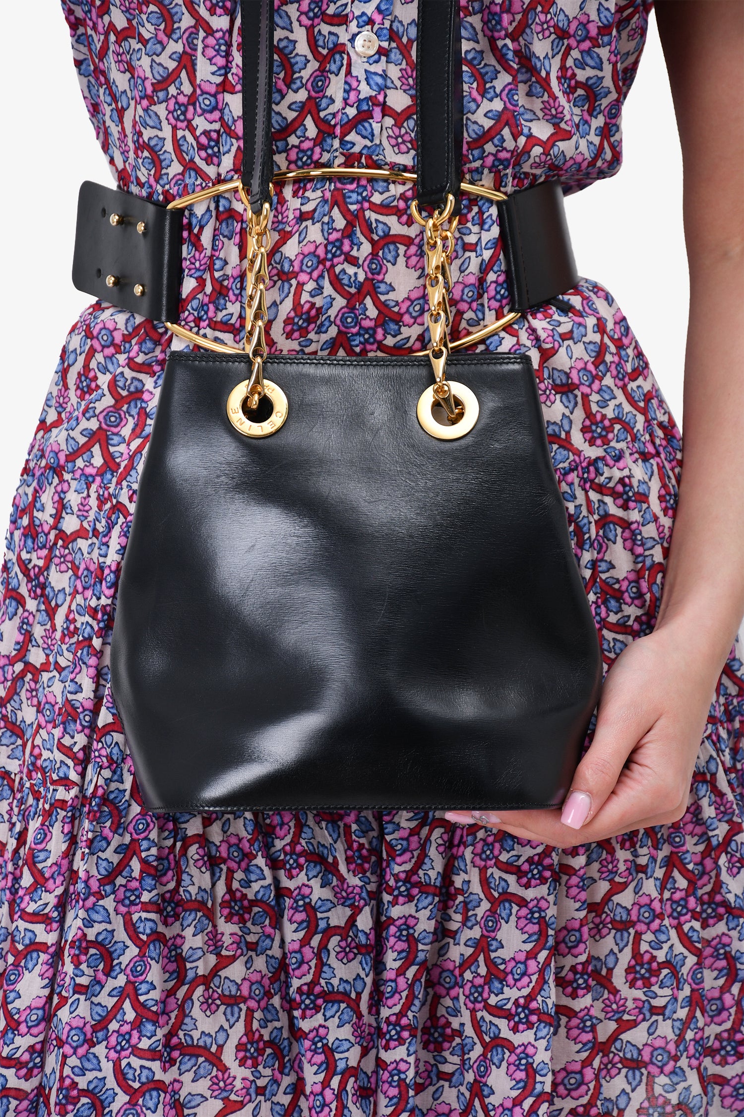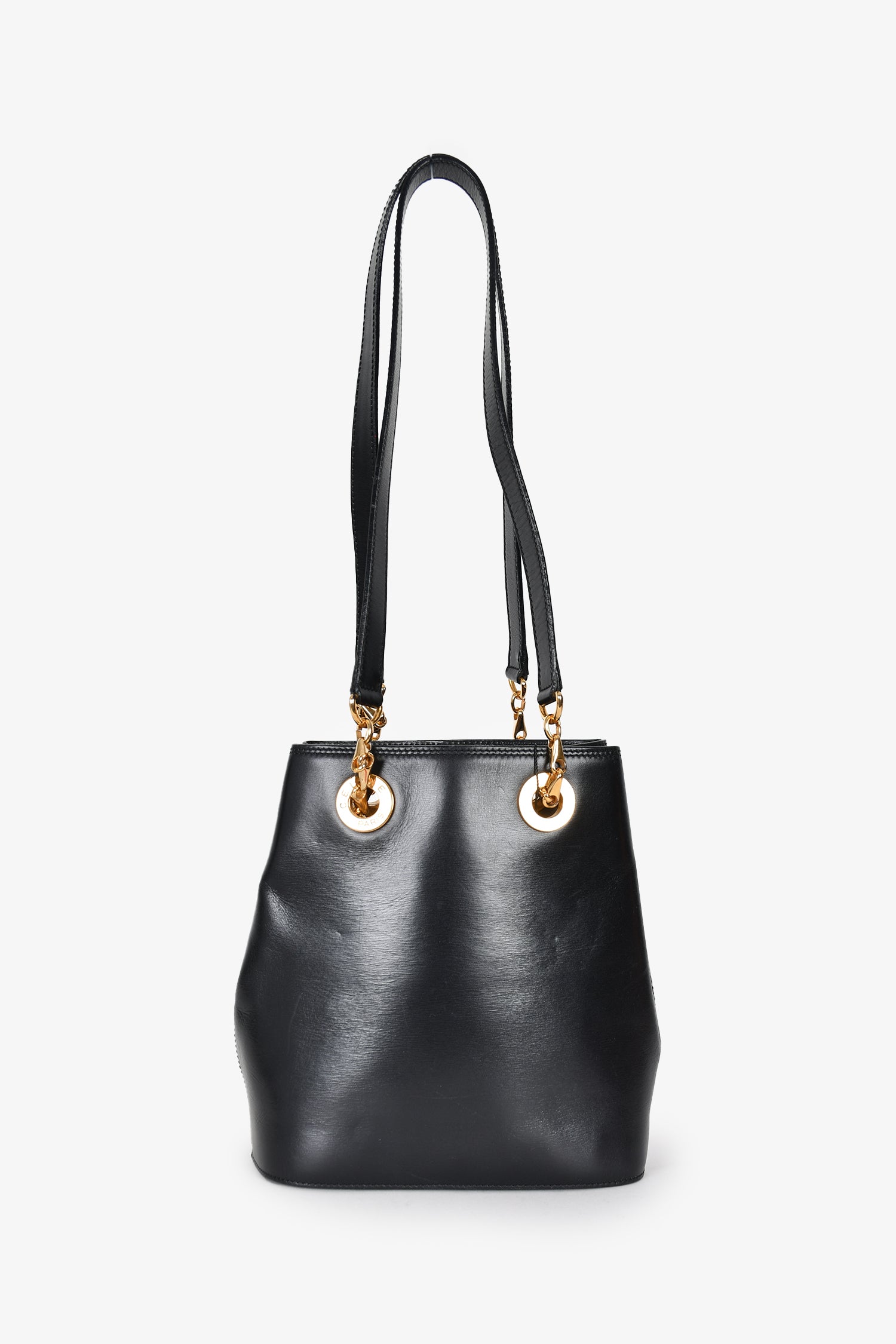 Refresh availabilityCeline Vintage Black Leather Shoulder Bag. Dual top handle straps. 1 interior slip pocket. Gold toned hardware.