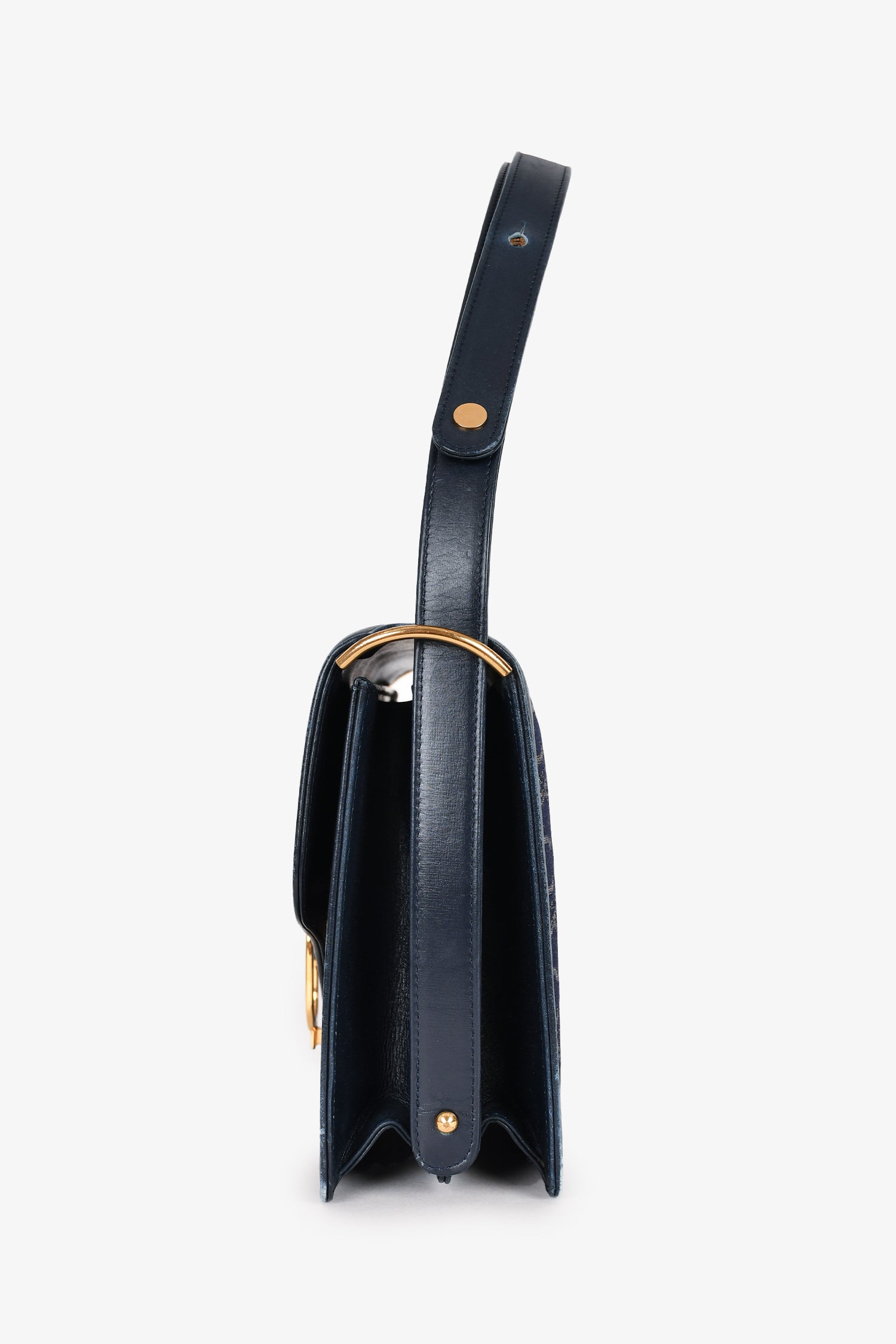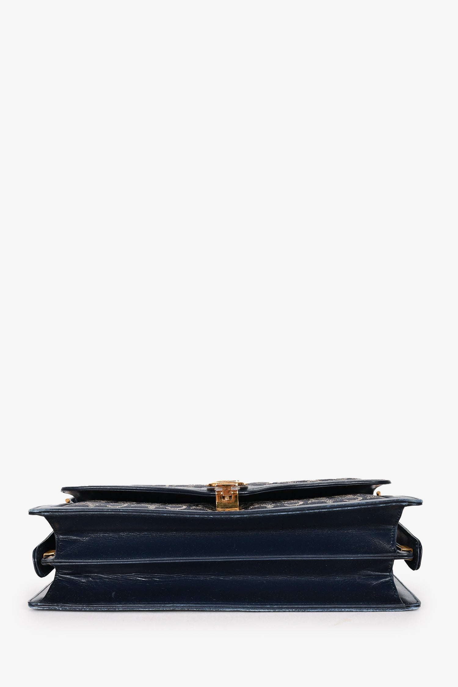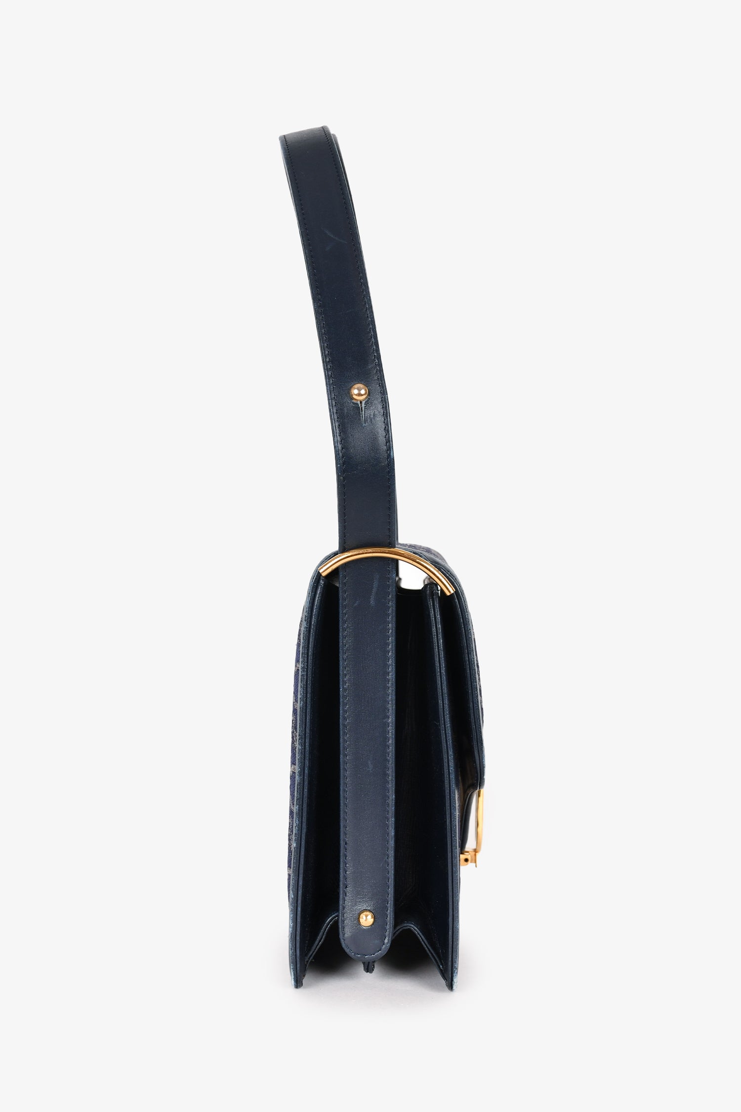 Celine Vintage Blue Monogram Denim Leather Trim 'Calèche' Shoulder Bag 'As-Is'