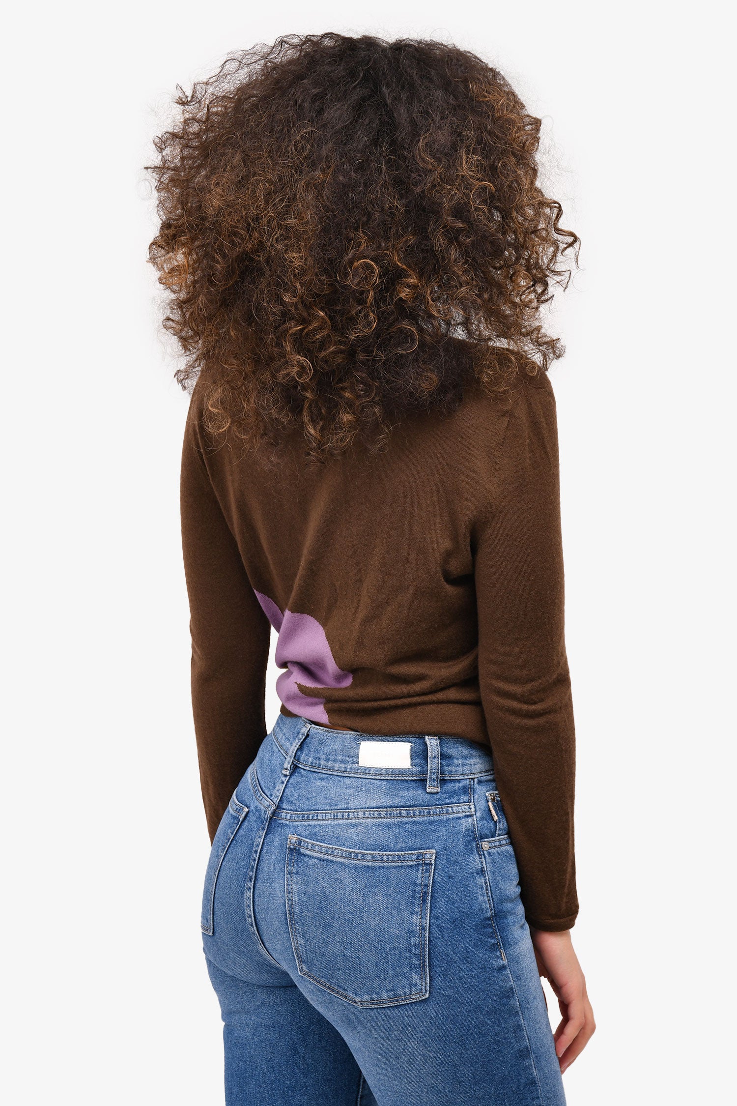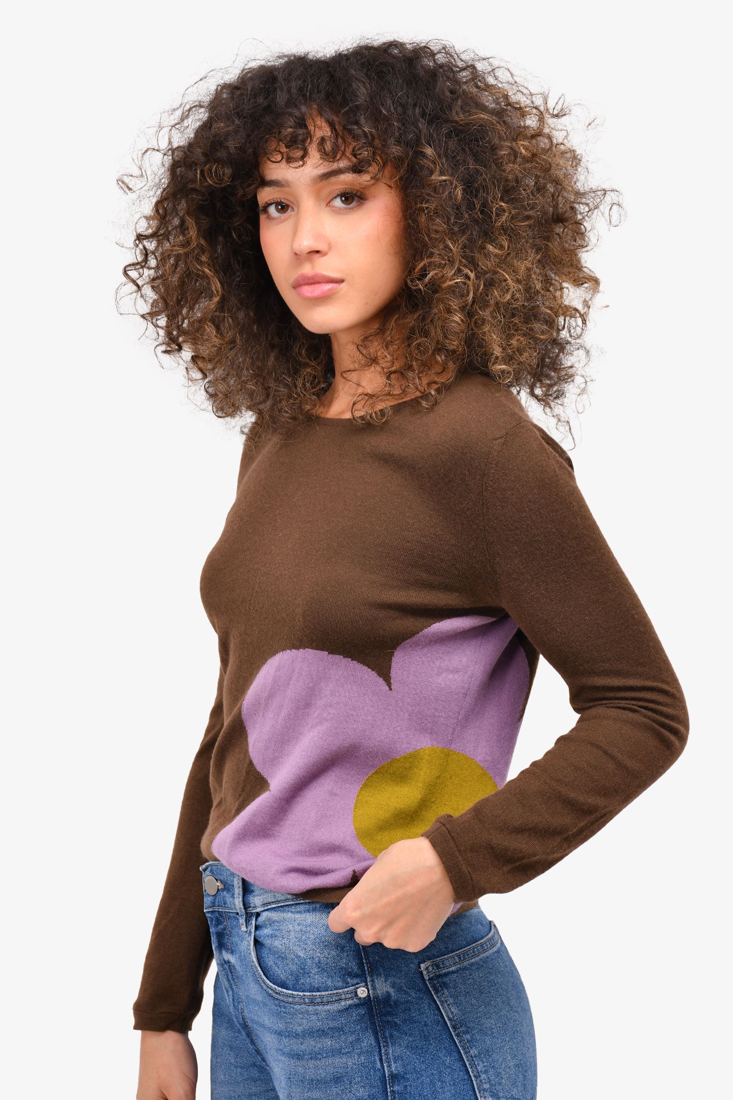 Celine Vintage Brown Cashmere Flower Sweater Size M