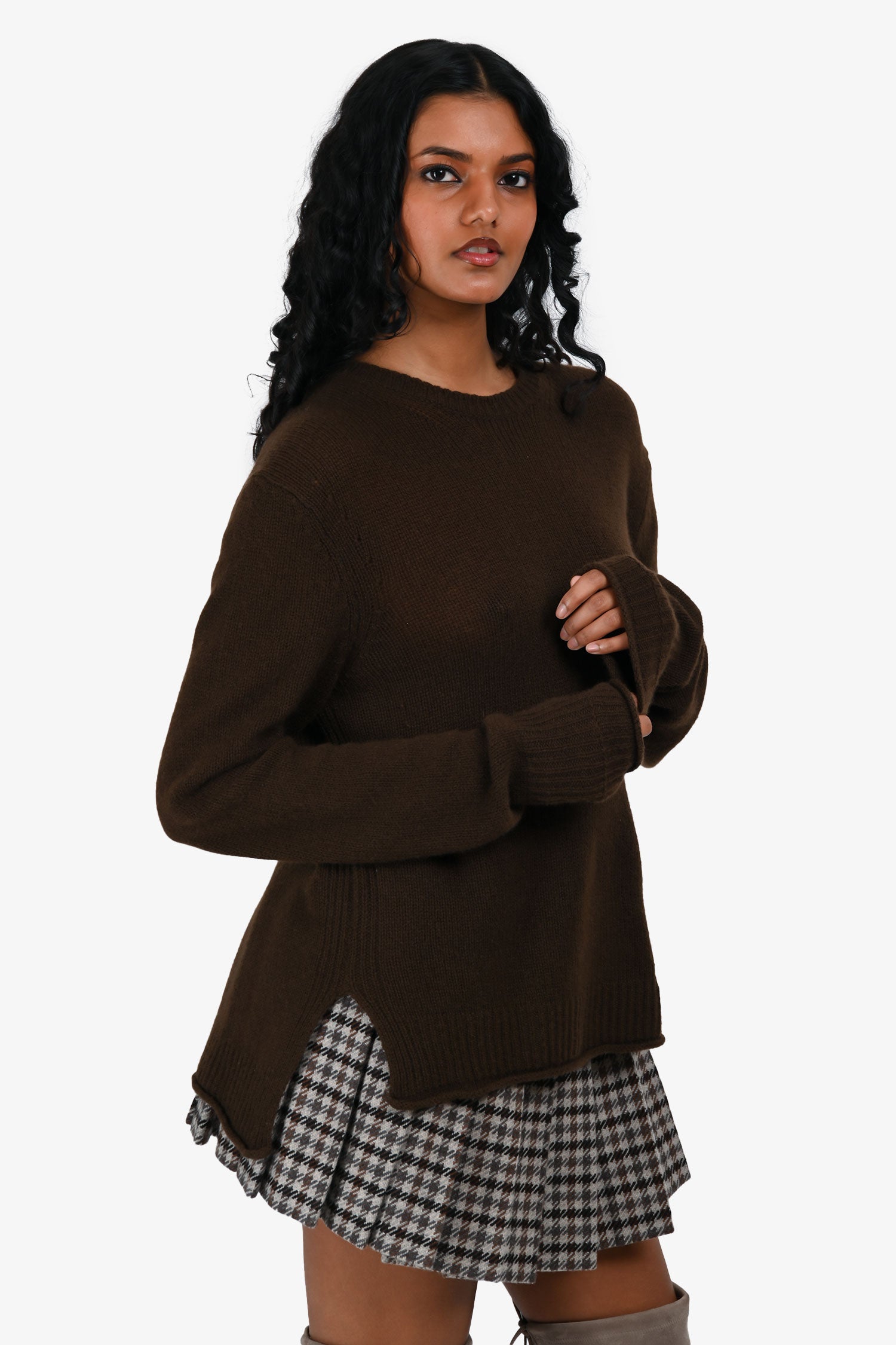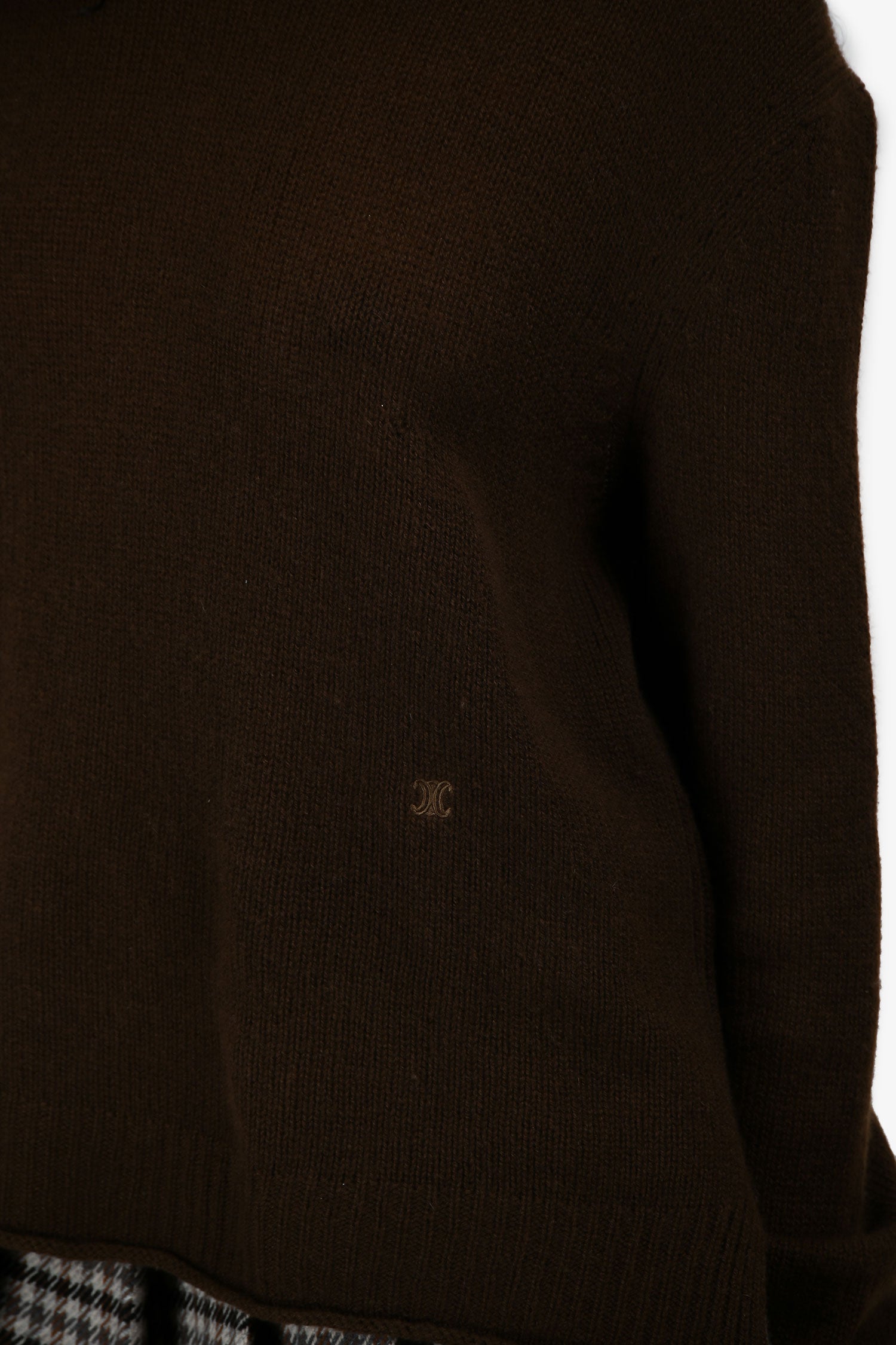 Refresh availabilityCeline Vintage Brown Cashmere Knit Crewneck Sweater. Pull-on. Ribbed neckline, cuffs, and hem. Side slit detail. Tonal stitching.